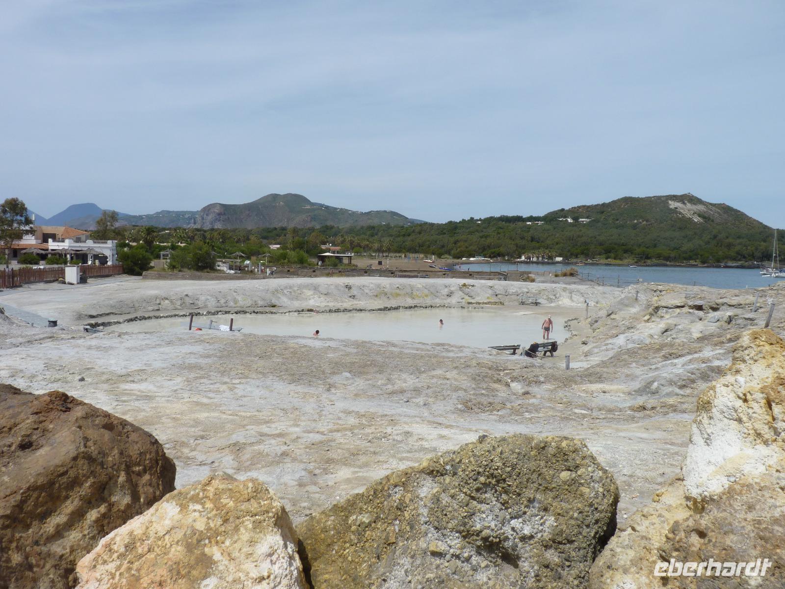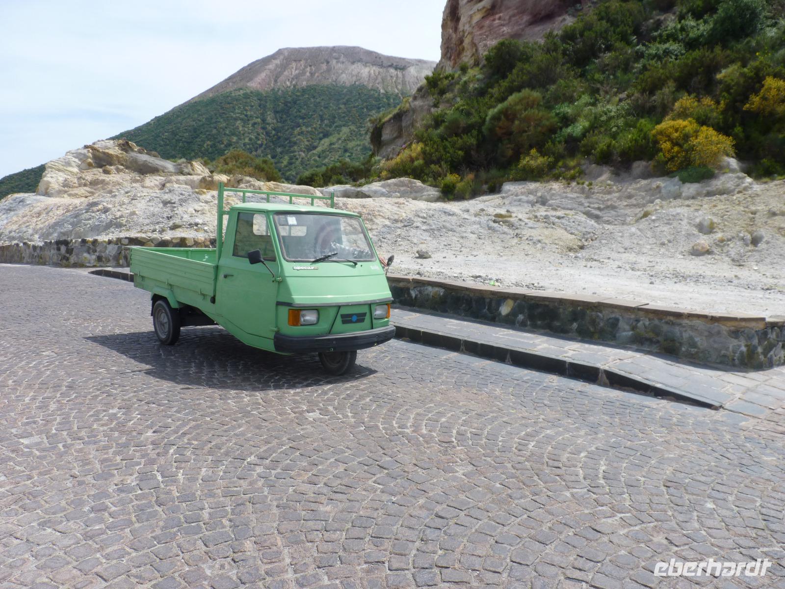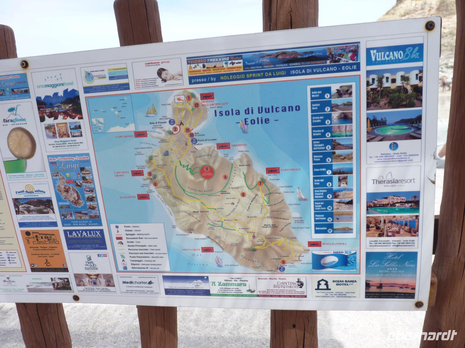 Übrigens führt zum Hauptkrater der Insel ein gekennzeichneter Wanderweg. Fahnen beißenden Schwefelrauchs zeigen an, dass er zwar ruht, aber im Inneren ein noch aktiver Vulkan ist, der wieder ausbrechen kann, wie es zuletzt 1888 geschah.