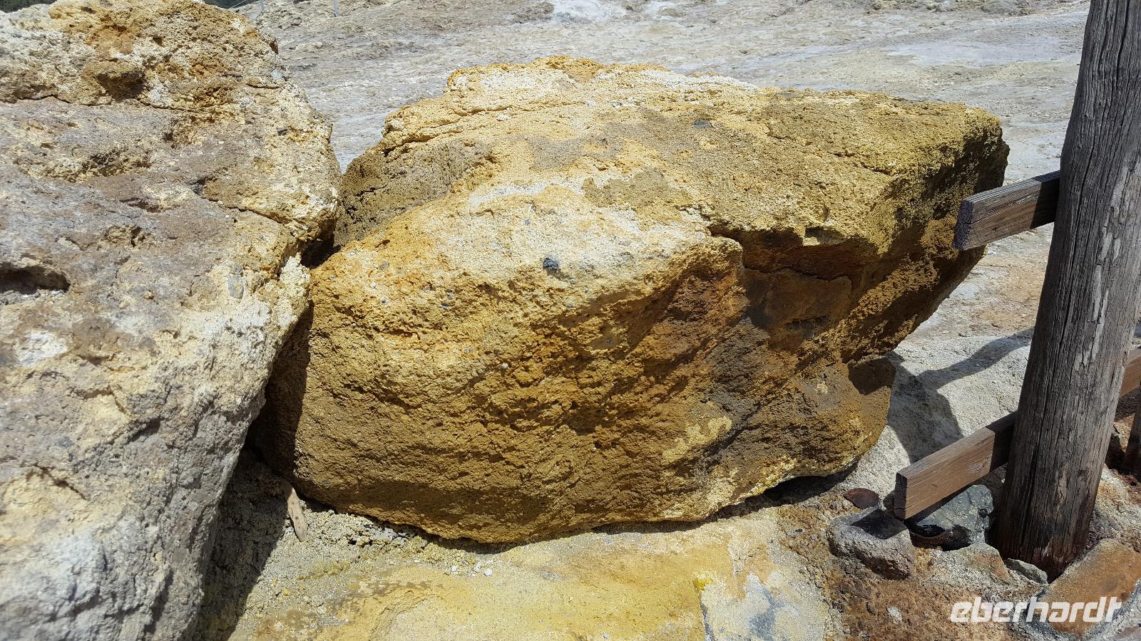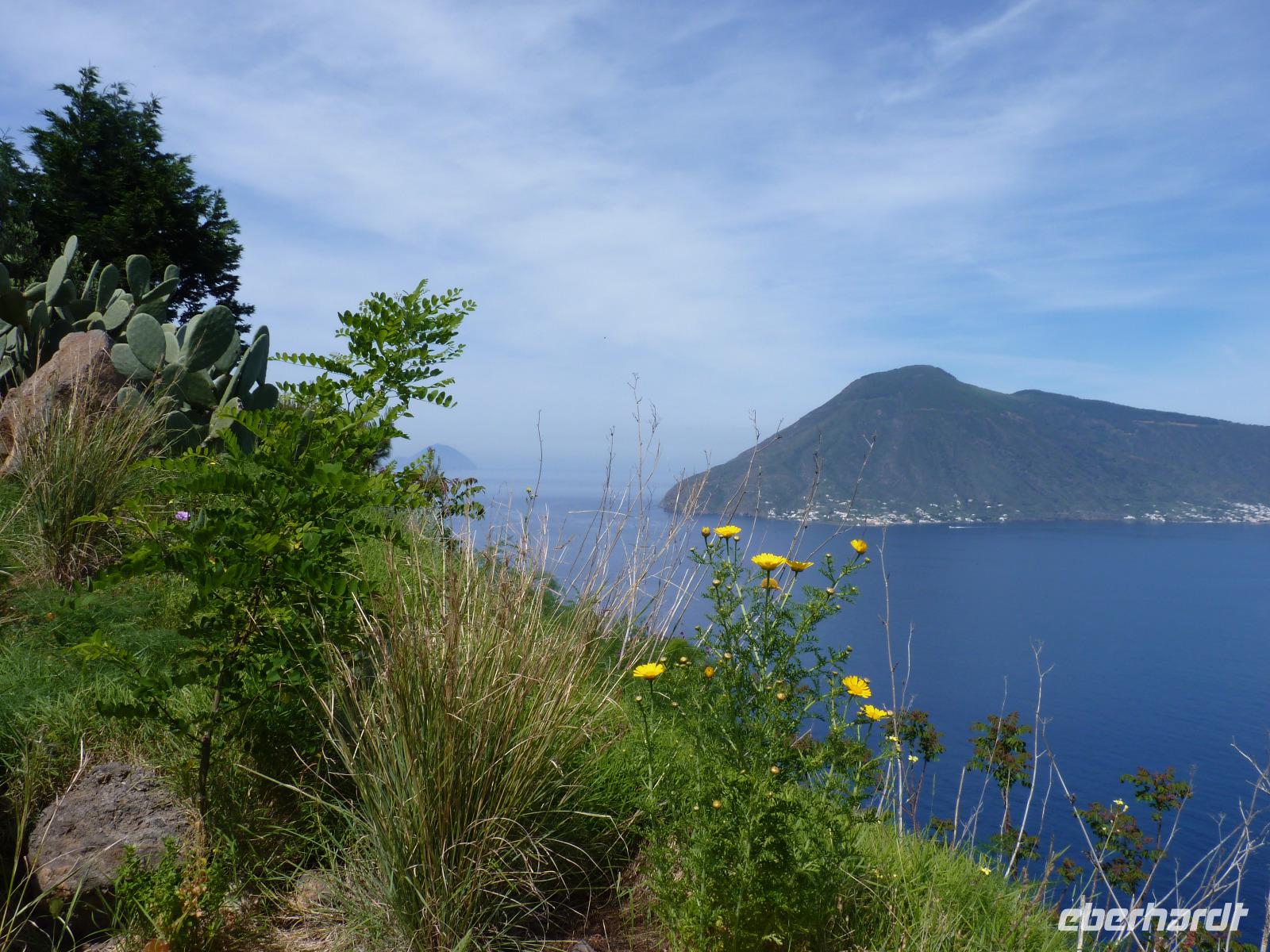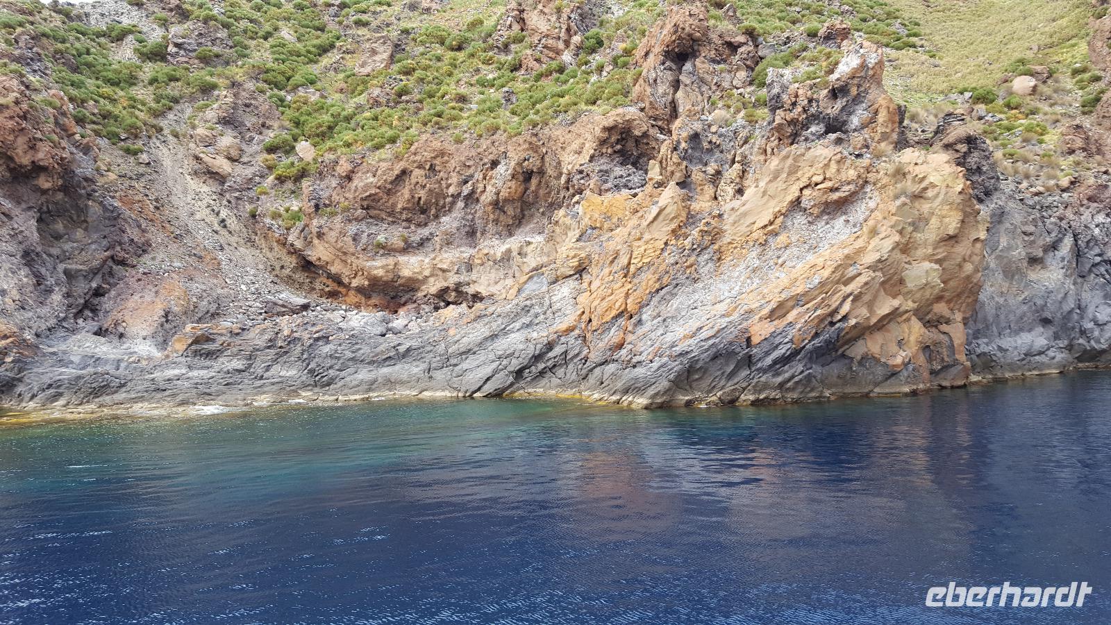 Übrigens führt zum Hauptkrater der Insel ein gekennzeichneter Wanderweg. Fahnen beißenden Schwefelrauchs zeigen an, dass er zwar ruht, aber im Inneren ein noch aktiver Vulkan ist, der wieder ausbrechen kann, wie es zuletzt 1888 geschah.