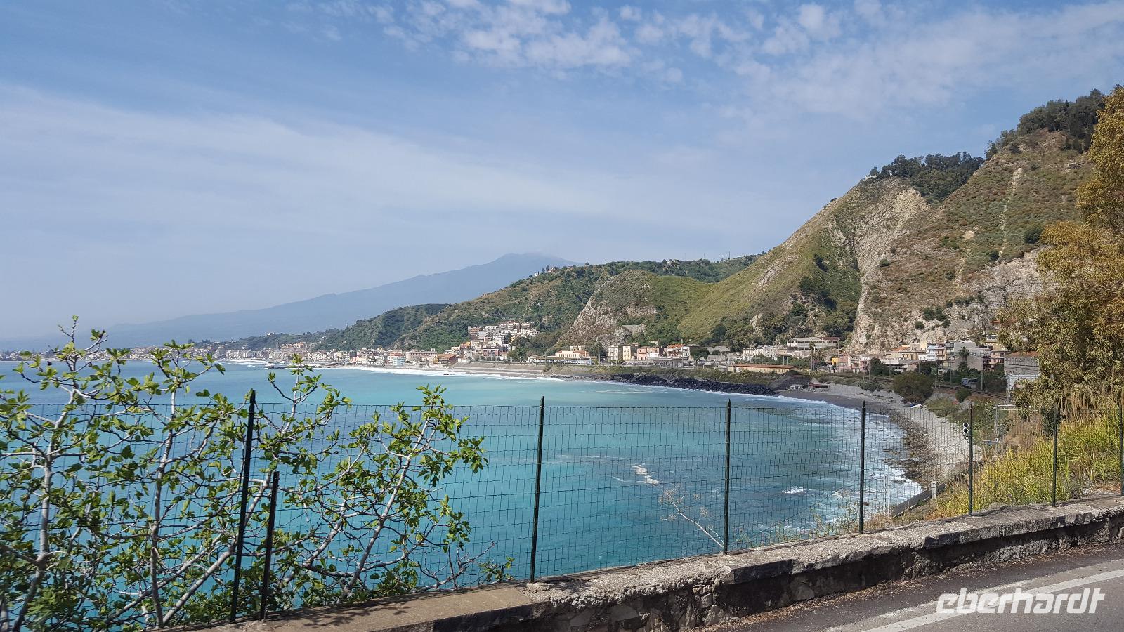 Der nördlichste Punkt der Ostküste ist nur 3,2 km vom italienischen Festland entfernt, die Meerenge "Strasse von Messina" trennt hier Sizilien vom Festland.