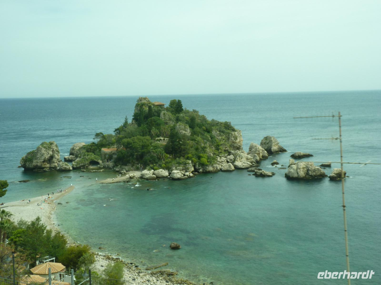 Unterhalb des Ortes liegt eine bezaubernde Insel Namens „La Belle". Das Inselchen selbst ist nur mit offiziellen Führungen zugängig. Der sehr ansprechende Kiesstrand davor ist dagegen von der Ortschaft Mazzaro (von Taormina per Seilbahn zu erreichen) über eine Treppe öffentlich zugänglich, aber in der Sonnen-Badesaison deshalb auch meist sehr gut besucht.