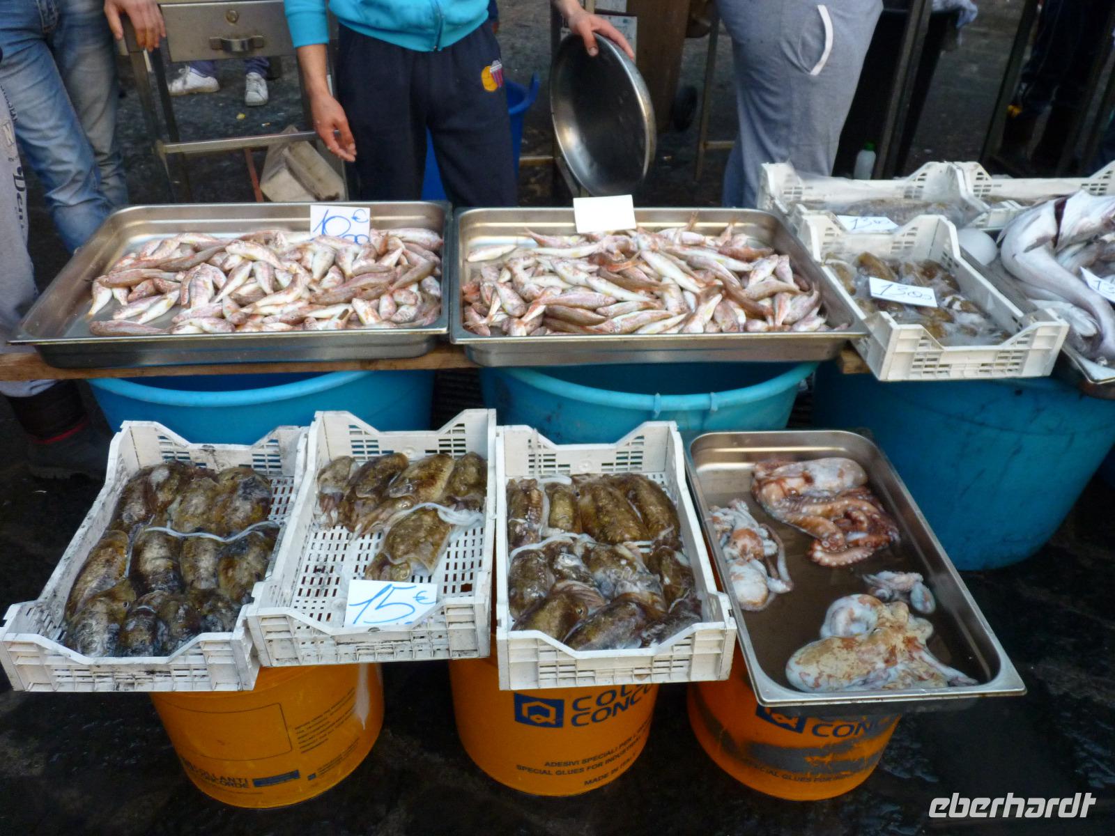 Was gab es alles zu sehen..... Thunfisch, Schwertfisch, Glasaal, Moräne. Man schätzt, dass es im Mittelmeer aktuell rund 60 Arten gibt, die von wirtschaftlichem Interesse sind, doch in den Fischgeschäften und den Fischtheken der Supermärkte werden davon nur rund 20 angeboten.