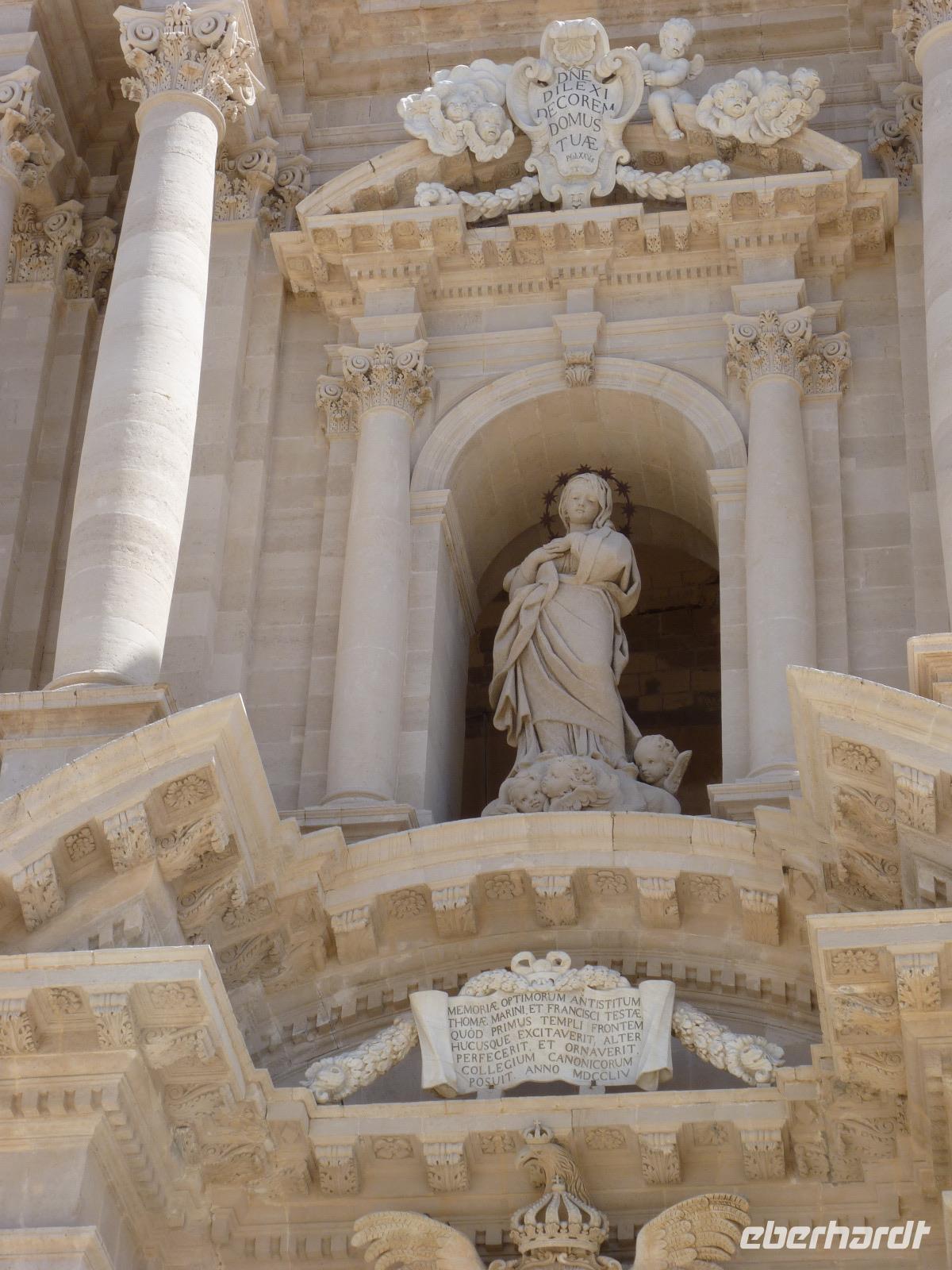 Neben erkennbar gebliebenen Teilen des antiken Tempels sind Elemente der byzantinischen Baukunst, der normannischen Romanik und des sizilianischen Barocks in ihr vereint.