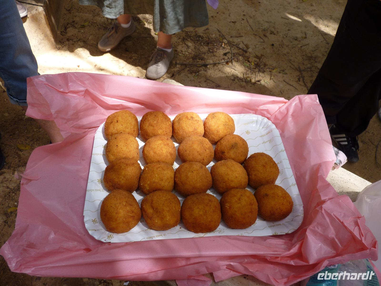 Am botanischen Garten erwartete uns ein leckeres Picknick. Arancinis (Reisbällchen), Pizzabrötchen, Cannolis mit süßen Frischkäse und leckeren Wein.
