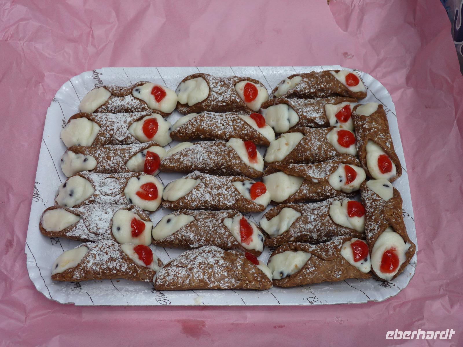 Zweiter Stopp Castelbuono. In einer Konditorei naschen wir verschiedene Köstlichkeiten der Region, so z. B. Pralinen mit Manna, Torroncini alla Manna und Mannettino, ein Kuchen, entfernt dem Panettone vergleichbar.