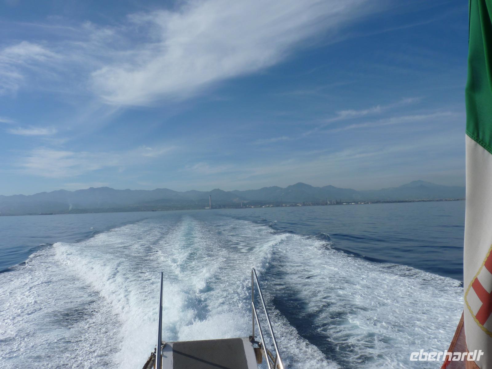 So gestärkt ging es am Nachmittag mit dem Schiff über die Grotte nach Milazzo zurück - auch diesmal ist die Fahrt sehr angenehm und ruhig.