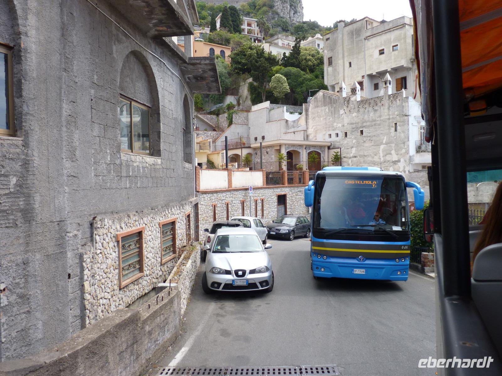 Unterwegs begebnen wir einer weiteren Attraktion. Seit Februar 2007 werden zur Müllentsorgung statt der bisher üblichen vier Lastwagen sechs Esel eingesetzt, da sie laut Bürgermeister Mario Cicero kostengünstiger und umweltfreundlicher sind.