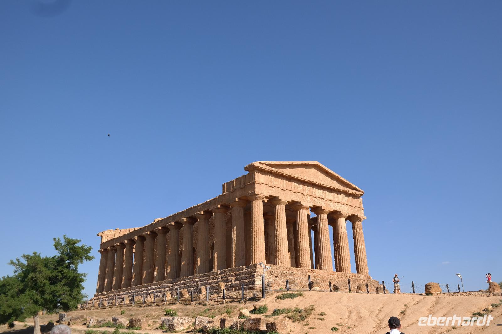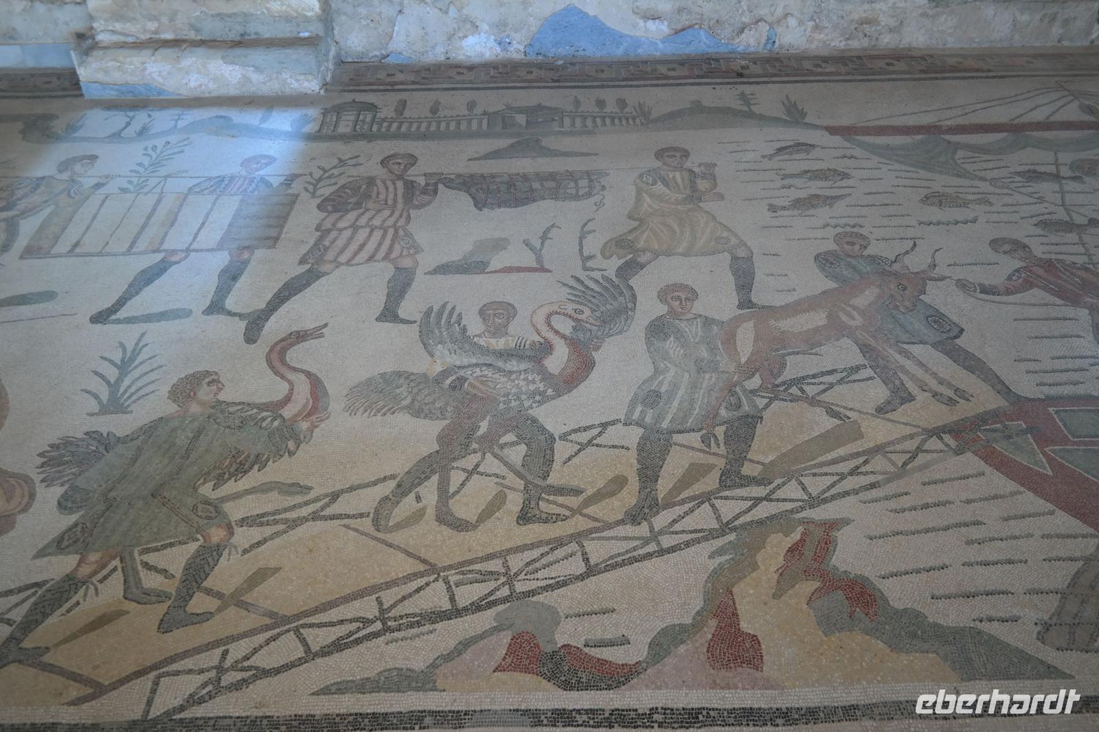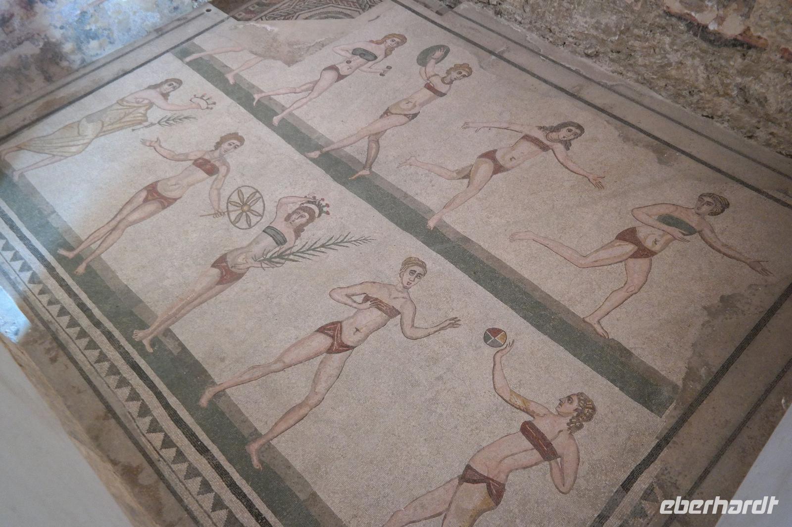 Heute war für uns Koffer packen angesagt, denn unsere Reise führte uns heute in die Mitte Siziliens. Gegen 11.00 Uhr erreichten wir die Villa Romana bei Piazza Armerina. Christiane erläuterte uns die einzelnen Mosaiken bis ins kleinste Detail. Wir empfanden alle Bewunderung für diese detailgetreue Darstellung der verschiedenen Szenen. Nachdem der Wissensdurst gestillt war und wir uns bei der Mittagpause gestärkt hatten, fuhren wir weiter zum Tal der Tempel. Im strahlenden Sonnenschein spazierten wir von Tempel zu Tempel. Während des Spaziergangs erklärte uns Christiane die Bedeutung der verschiedenen Tempel. Anschließend fuhren wir in unser nächstes Hotel. Dort angekommen bezogen wir unsere Zimmer und trafen uns abends zum Abendessen.