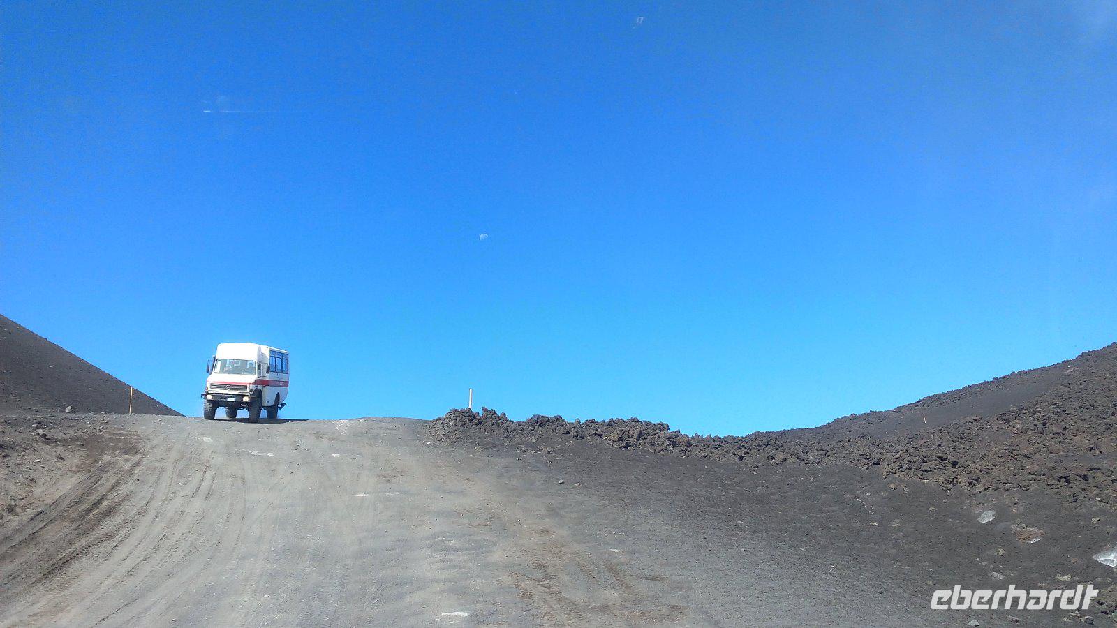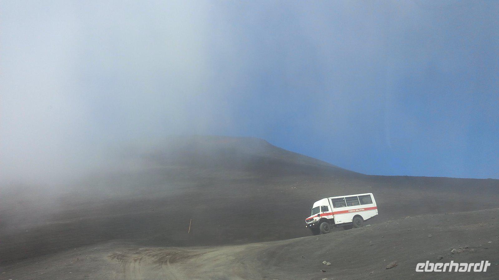 Der Blick verspricht Gutes. Zeitig geht es heute über Zafferana Etnea mit Blick auf die gewaltigen Lava-und Tuffsteinmassen, zum Ätna, der größte und höchste Vulkan Europas mit ca. 3345 m zeigt sich in seiner vollen Schönheit. Gegen 10.00 Uhr fährt ein großer Teil der Gruppe mit der Gondel eine Station und weiter mit dem Jeep bis zu den ersten Kratern. Simon, der seine Diva bestens kennt, wird nicht Müde uns den Vulkan in allen Facetten zu erklären. Bei einer kleinen Wanderung ist es schon wichtig, eine Kopfbedeckung und die Sonnenbrille dabei zu haben. Das Erlebnis bei dieser Sicht ist einmalig.