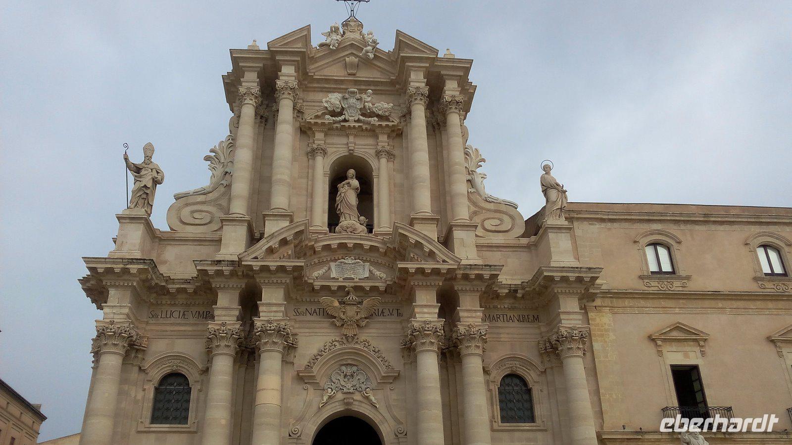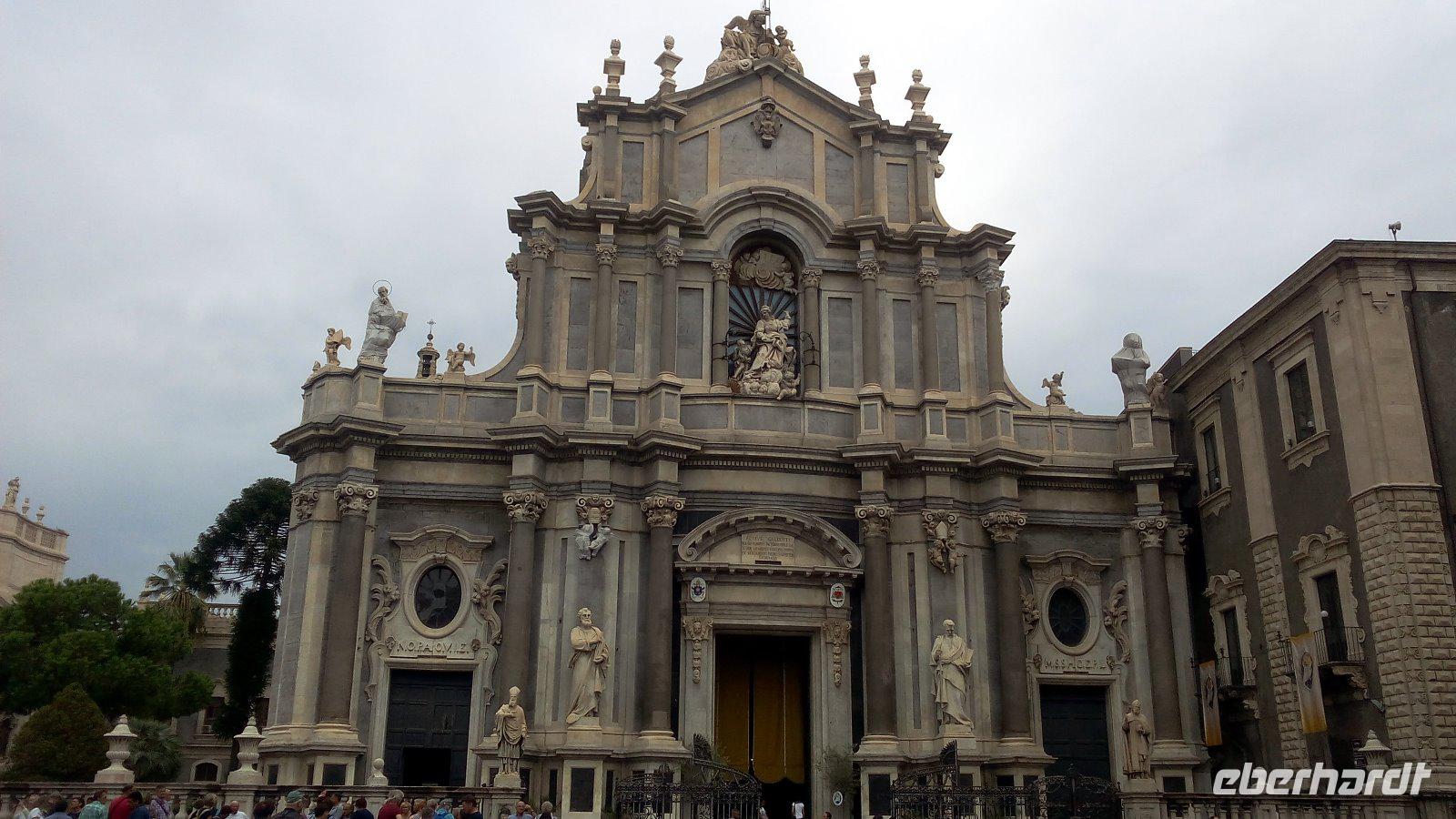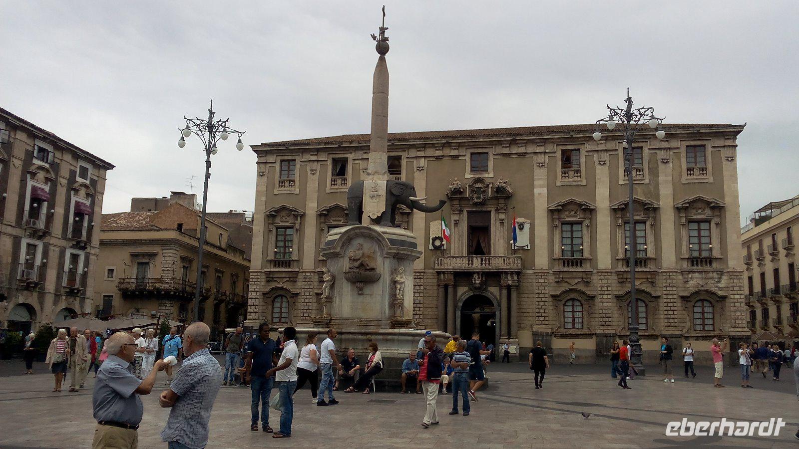 Auf dem Programm für heute stehen zwei Städte an der Ostküste. Catania ist die erste Stadt, die wir kennenlernen. Sie liegt in einer fruchtbaren Ebene zwischen Ätna und Meer, der Piana di Catania. Wir erleben eine vitale Stadt mit der ältesten Universität von Sizilien und entlang der Via Etnea erkennen wir ihre barocken Sakral-und Profanbauten. Auf dem Piazza del Duoma sehen wir den Elefantenbrunnen, das Symbol der Stadt. Der Elefant aus schwarzer Lava trägt einen kleinen ägyptischen Obelisken.(Vorbild war Berninis Elefantenobelisk in Rom). Dem Brunnen gegenüber steht der Dom Sant Agata. An dem Ort soll die heilige Agathe 251 den Märtyrertod erlitten haben.