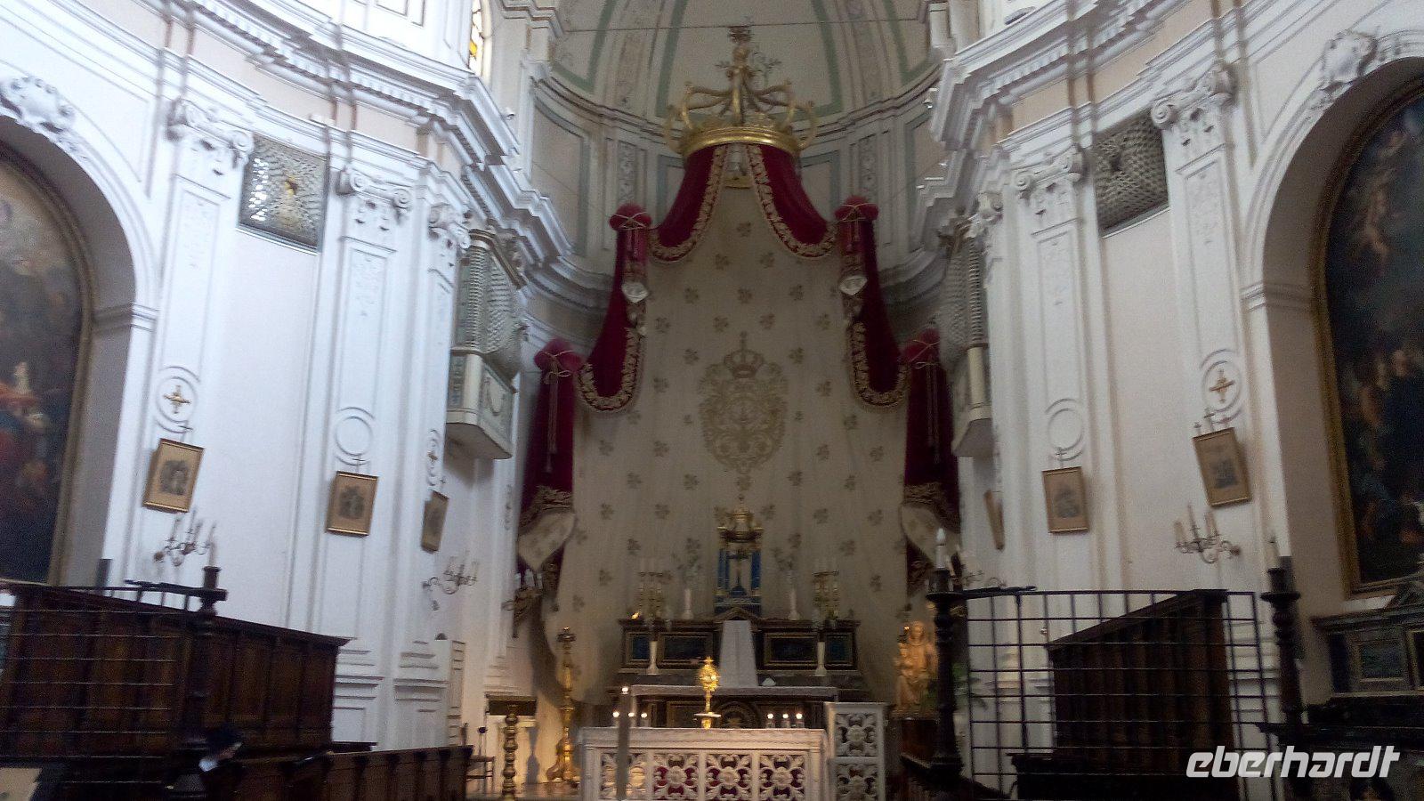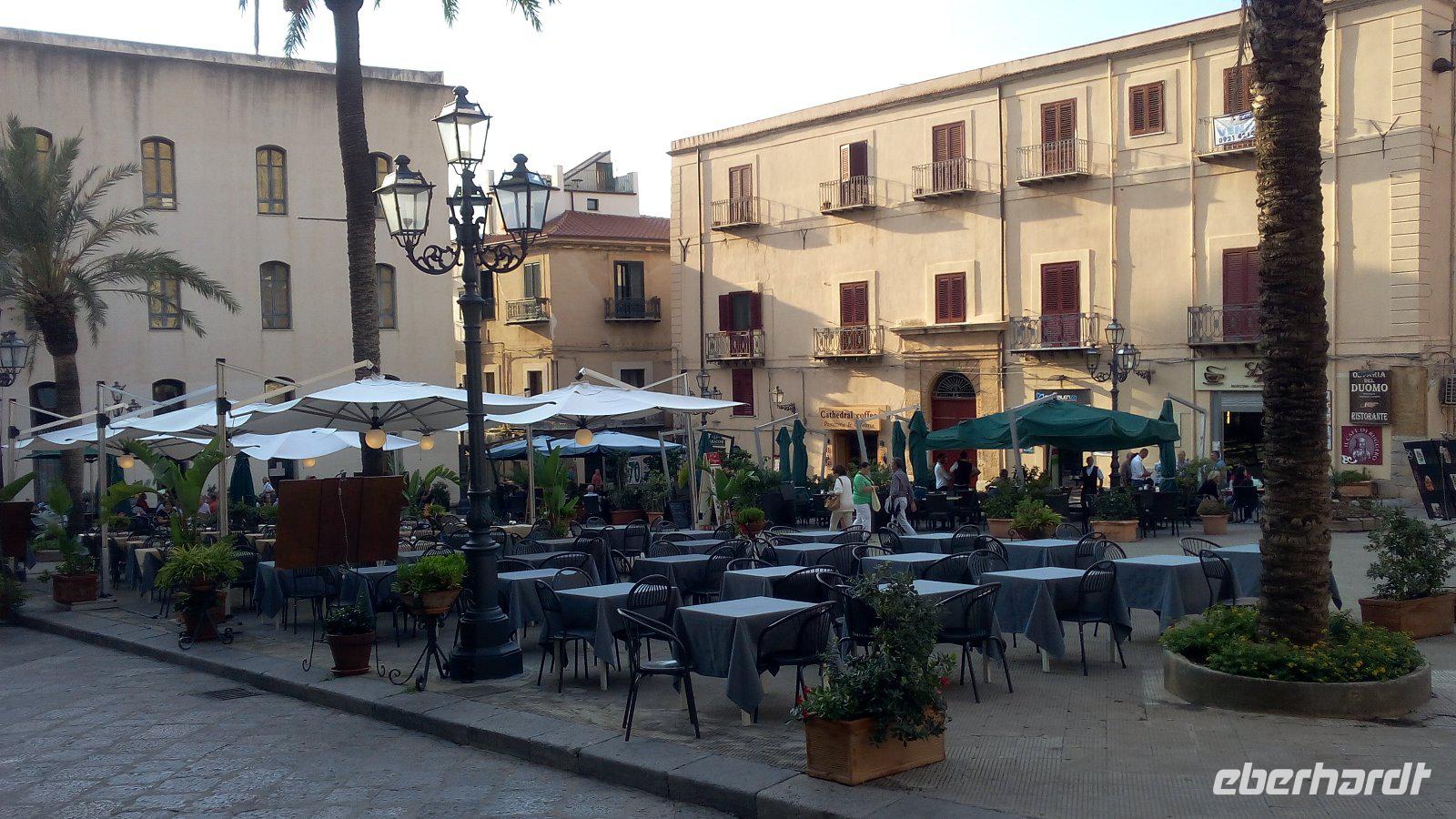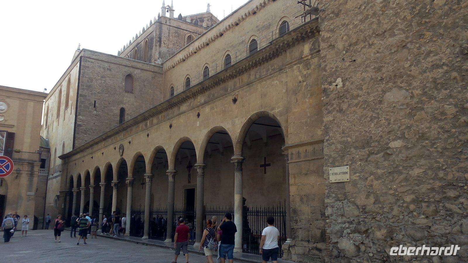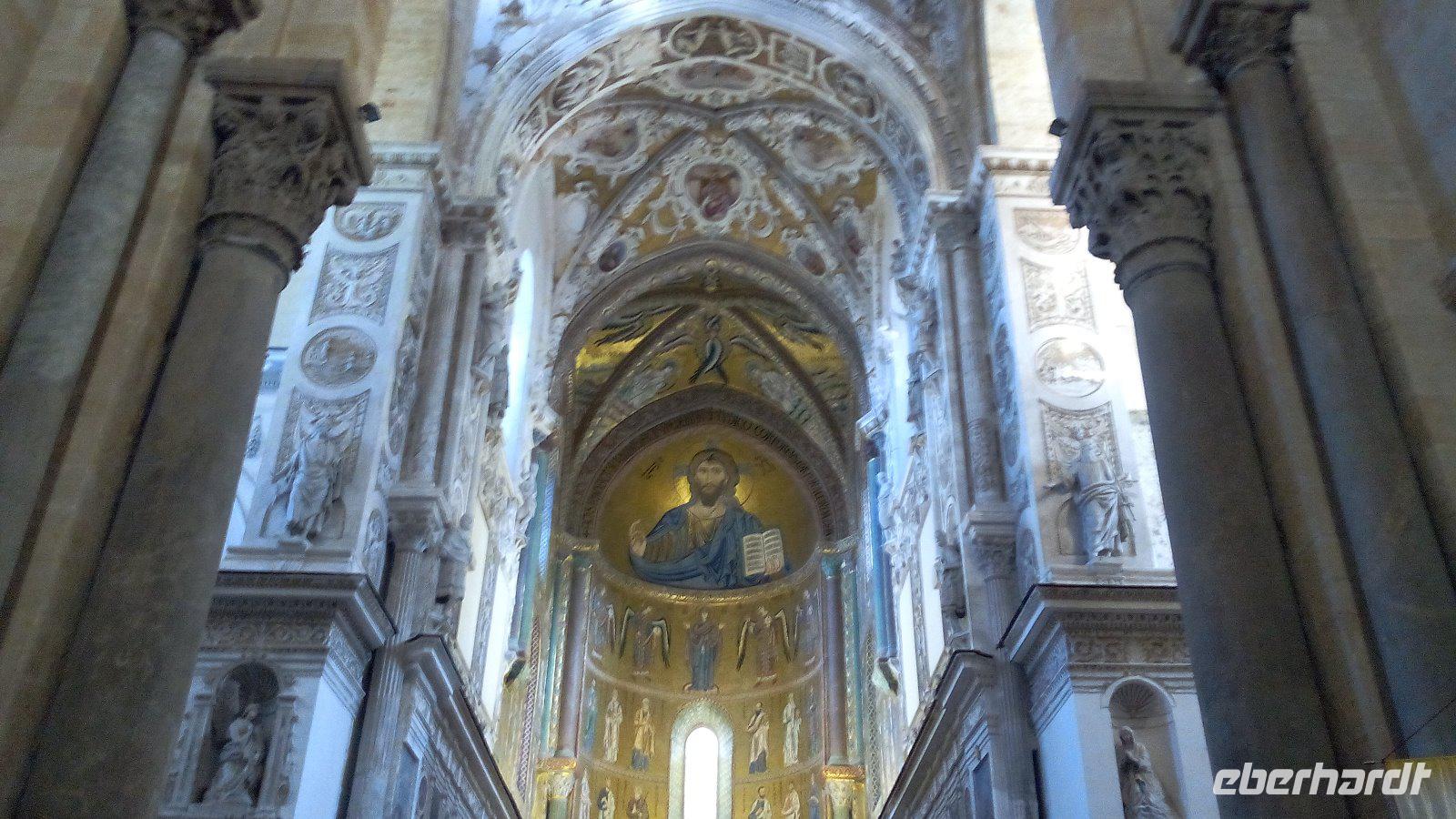 Das Hoch, das uns in den letzten Tagen das schöne Wetter bescherte, hält an und trotzdem möchte keiner den Tag am Meer verbringen, sondern die Hauptstadt der Insel erleben. Wir beginnen die Führung in Monreale und besuchen das bedeutendste Denkmal der Normannenkunst auf Sizilien. Nach den 90 Stufen, die wir gehen oder aber mit einem Taxi fahren, stehen wir vor dem prächtigen Dom. Im Inneren sind wir von den kostbaren Mosaiken überwältigt. Was Künstler hier im 12. Jd. geschaffen haben, ist einmalig. Im Anschluss gehen wir durch den berühmten Kreuzgang der einstigen Benediktinerabtei mit den Doppelsäulen mit Doppelkapitellen.