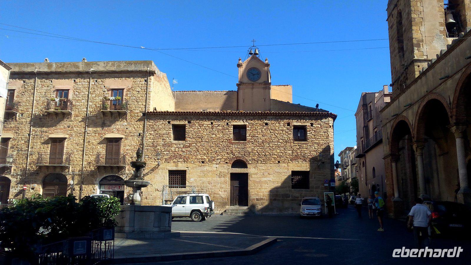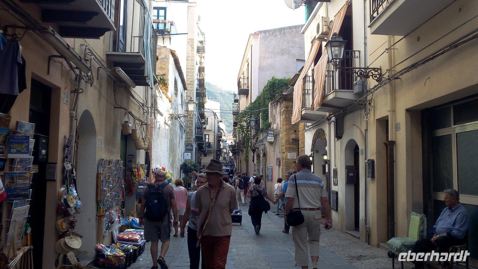 Nach dem Frühstück beginnen wir die Fahrt ins Gebirge. Die Berge in der Madonie sind beeindruckend und erreichen mit dem Pizzo Carbonare eine Höhe von 1979 m. Er ist nach dem Ätna der zweithöchste Gipfel auf der Insel. Unser Fahrer fährt sehr ruhig die Serpentinen nach Castelbuono hinauf. Große Korkeneichen säumen den Weg und überall haben wir eine beeindruckende Vegetation. In dem Ort lernen wir die Tränen der Esche kennen. Wir kosten in der bekannten Konditorei Fiasconaro Pistaziencreme und Mannacrem. Manna kennen wir als "Tränen der Esche". Es bleibt noch etwas Zeit entlang der Gassen des beschaulichen Ortes zu spazieren. Danach geht unsere Fahrt weiter durchs Gebirge, in Geraci haben wir eine Pause und in Castelano Sigula werden wir bereits zum Mittagessen erwartet. Mit leckerer sizilianischer Bratwurst, Pasta, Buscetta, grünen Salat u.a. lassen wir uns verwöhnen. Zum Abschluss probierten wir noch den Orangenkuchen. Mit dem Rezept für den Kuchen ausgerüstet müssen wir jetzt aber wieder die Rückfahrt beginnen. Wieder an der Nordküste angekommen besuchen wir Cefalu. Simon führt uns durch die Stadt, in der der Dom Santissimo Salvatore eines der ersten arabisch-normannischen Juwelen der Insel ist. Nach dem wir Simon verabschiedet haben bummeln wir noch durch die Stadt und kaufen noch einige Souvenirs bevor wir zum Hotel zurückfahren.