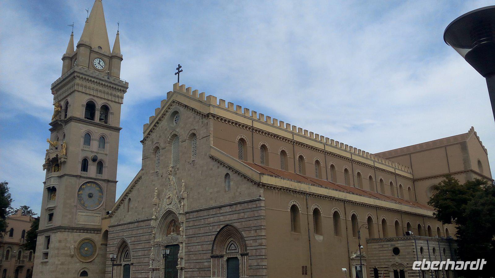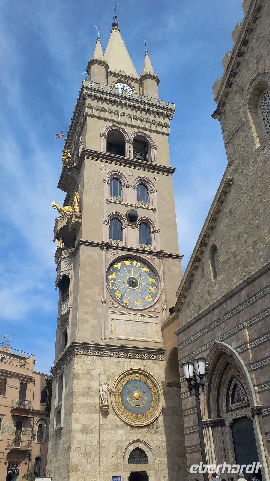 Wir halten am Domplatz. Vor uns steht der Dom von Messina der im 12. Jahrhundert errichtet und nach dem schweren Erdbeben von 1908 und den Schäden nach 1943 wiederaufgebaut wurde. Uns beeindruckt im Besonderen der frei stehende Glockenturm, mit der größten mechanischen Uhr der Welt, die sich 12.00 Uhr in Gang setzt. Ein besonderes Erlebnis für uns. Nach einiger Zeit zum Mittagessen setzen wir unsere Fahrt fort und sind schon am frühen Nachmittag im Hotel Olymp in Letojanni. Heute haben wir Zeit zu baden im Meer oder auch im Hotel.