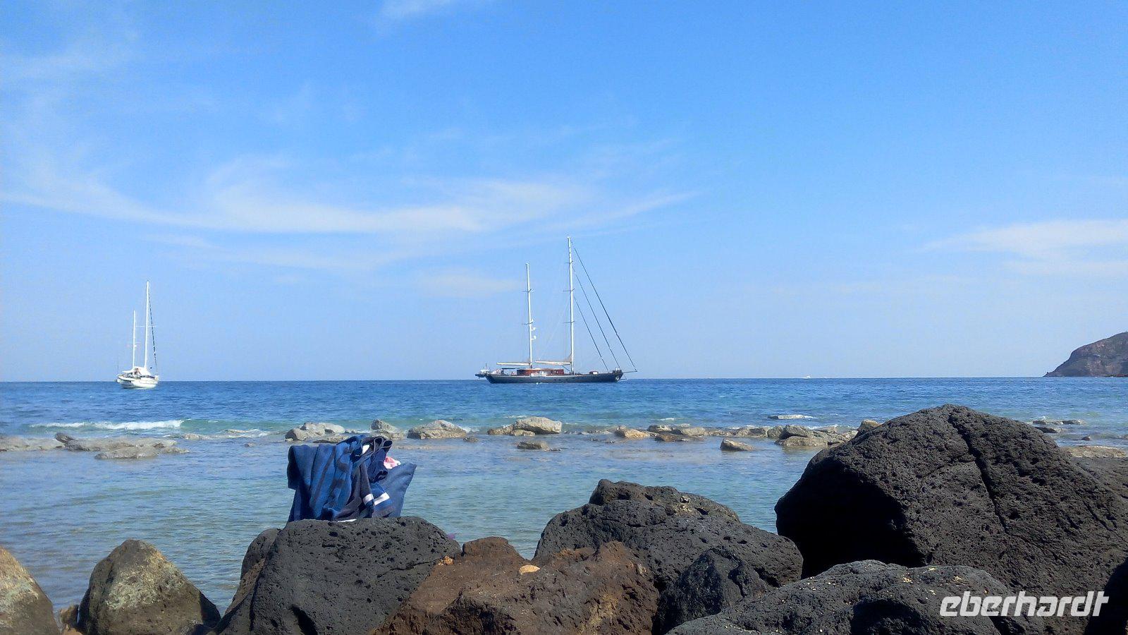 15 Gäste entscheiden sich für diesen Ausflug. Für einige Gäste von uns war es der eigentliche Grund diese Reise anzutreten. Heute führt uns noch einmal Simon. In einem kleinen Bus fahren wir entlang der Ostküste nach Milazzo. Simon wie immer und durch seine Ausbildung prädestiniert, präsentiert er uns die Vulkane. Insgesamt sind es ja 7 Inseln. Wir schauen uns Vulkano und Liparien genauer an. Dabei stellt sich noch einmal die Frage Liparische oder Äolische Inseln.