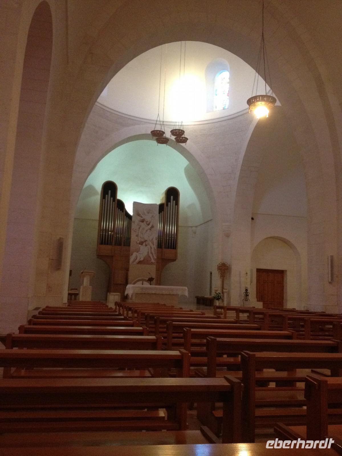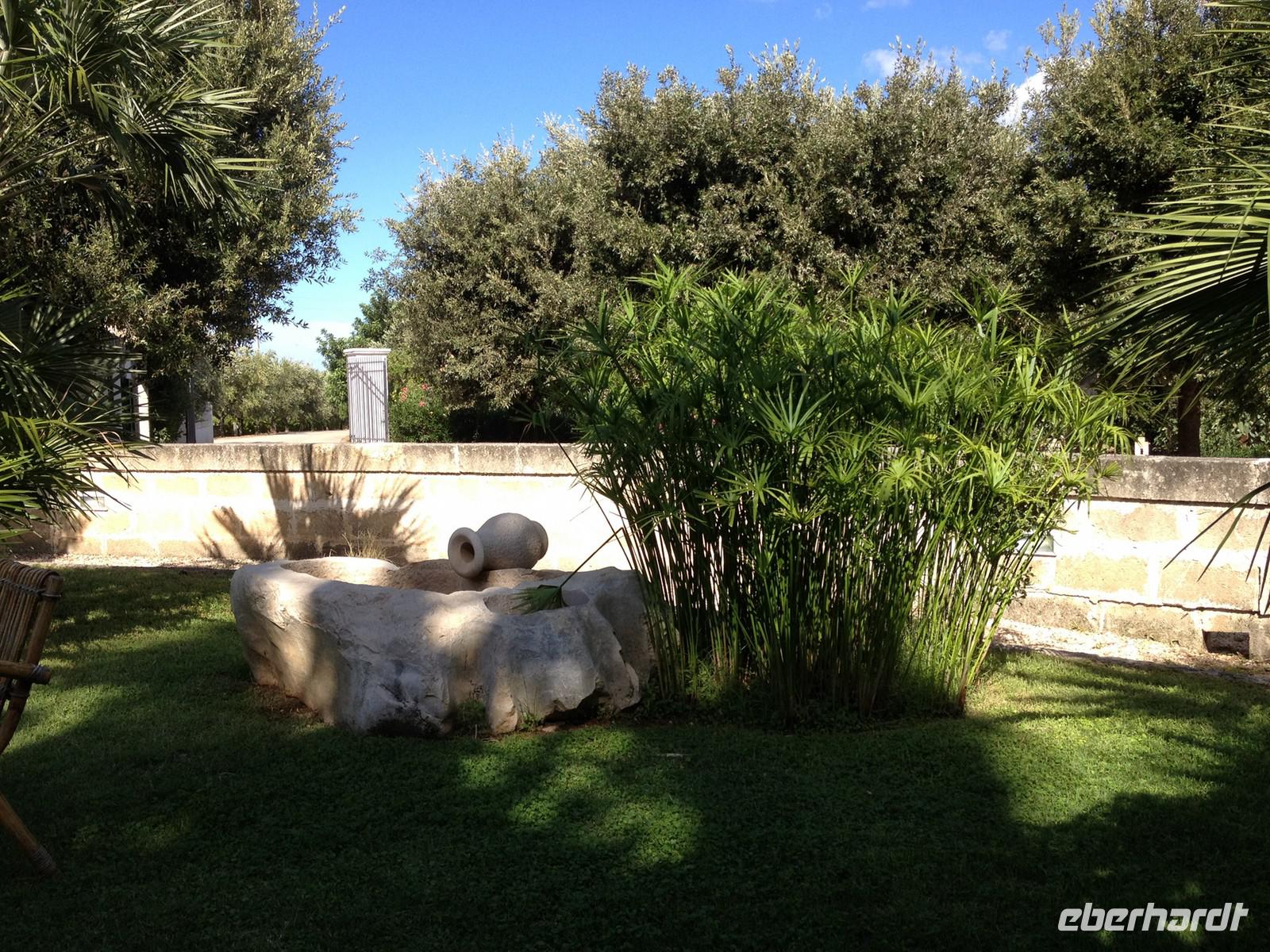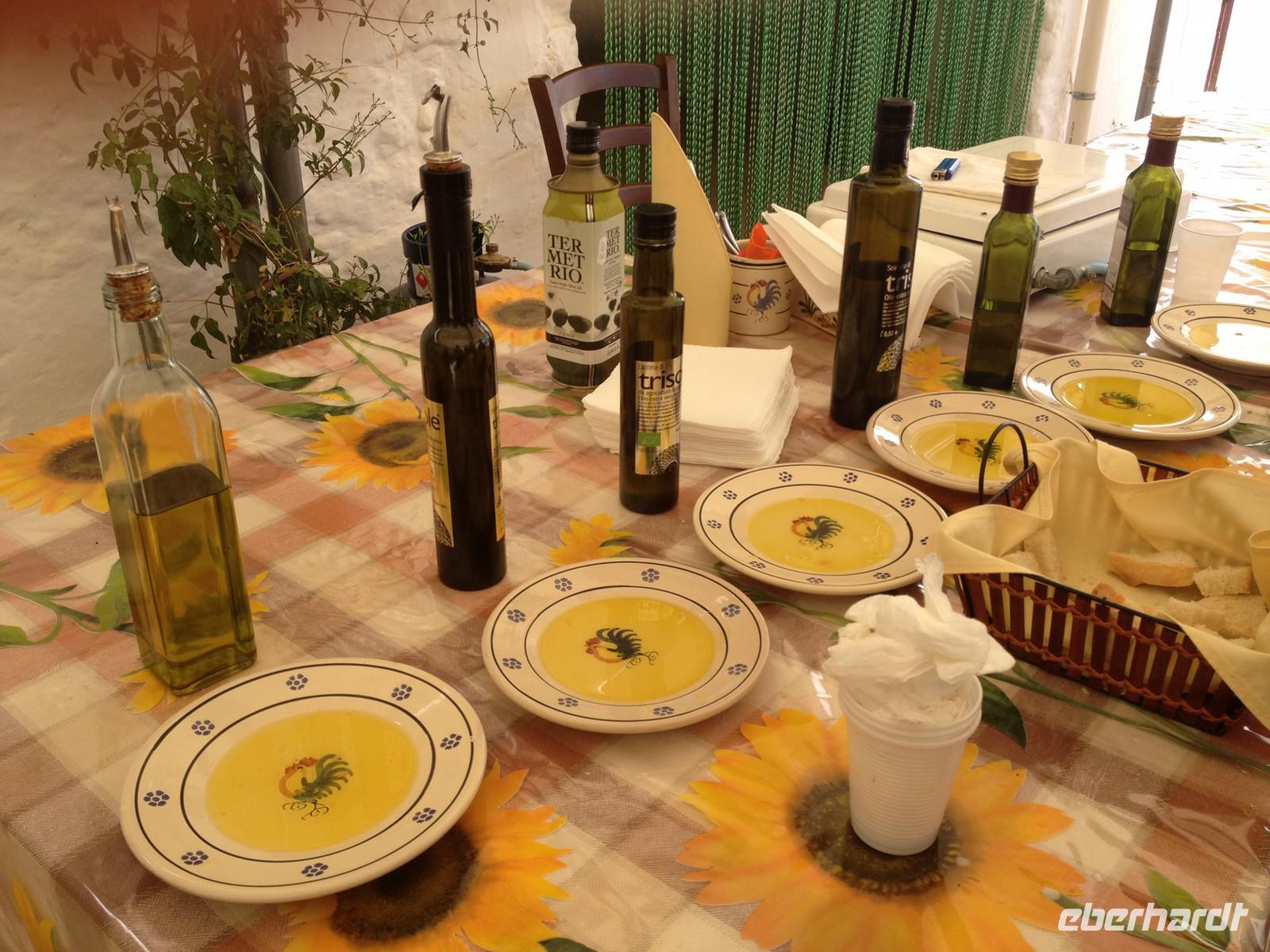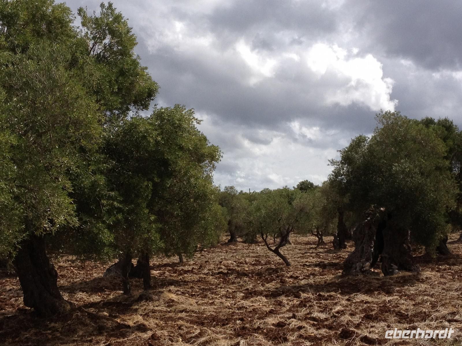 Ab 7 Uhr gab es Frühstück und kurz vor neun Uhr traf unser Buschauffeur Salvatore mit einem anderen Bus ein, der uns diese Woche begleiten wird. Auch Mirella war wieder bester Laune und begrüßte uns freundlich mit einem „Buongiorno a tutti". Wir fuhren zunächst in den nahe gelegenen Ort Martina Franca, wo wir einen kleinen Rundgang unternahmen und eine Toilettenpause einlegten. Anschließen fuhren wir weiter nach Ostuni und nahmen dazu eine der wunderschönen Landstraßen, die rechts und links von Weinstöcken, Olivenbäumen und Feldern gesäumt war. Eine unglaublich interessante Landschaft und mittendrin immer wieder einzelne Trullis, die oft als Zweitwohnung genutzt werden. Kurz nach 11 Uhr kamen wir an und waren erstaunt über das viele Weiß, was es hier zu sehen gab. Nicht umsonst wird die Stadt auch: „die weiße Stadt" genannt. Mirella lief mit uns in die Altstadt, zeigte uns die Hauptkirche der Stadt sowie ein paar enge und kleine Gassen, die sehr hübsch anzuschauen und zu fotografieren waren. Weiter brachte uns der Bus zur Masseria Refrigerio (www.masseriarefrigerio.com), die 20 Minuten von Ostuni entfernt liegt. Unterwegs stoppte Salvatore kurz, damit wir aussteigen konnten, um die uralten Olivenbäume zu fotografieren. In der Masseria war ein mehr als leckeres Menü für uns vorbereitet. Zuerst servierte man uns drei typische Antipasti aus Auberginen, Artischocken, Käse und Korn mit Oliven. Anschließend wurde der erste Gang serviert: es gab die typischen Orecchiette Nudeln mit einem Pesto aus Mandeln und Oliven. Anschließend eine leckere Scheibe Schweinefleisch mit Kartoffeln und zum Desert ein Stück Kuchen. Dazu wählten wir weißen oder roten Hauswein und waren anschließend kugelrund. Wieder im Bus fuhren wir in Richtung Norden, wo Eberhardt TRAVEL eine Überraschung für uns eingeplant hat und so erreichten wir kurze Zeit später die Masseria „Brancati" (www.masseriabrancati.com), wo uns der Besitzer freundlich empfang und uns sehr viel über Oliven erzählte. Zu seiner Masseria, die aus 30 ha Land besteht, stehen ca. 1.300 Olivenbäume unterschiedlichsten Alters. Wir erfuhren etwas über die Bäume, die Ernte, die Verarbeitung und der Pflege. Dann zeigte er uns den Keller, wo die Verarbeitung stattfindet und anschließend nahmen wir im Hof Platz und ließen uns drei verschiedene Sorten Olivenöl verkosten, die unterschiedlich im Geschmack waren - aber jede Sorte anders gut. Wer wollte, konnte sich etwas für zu Hause mitnehmen - das nahmen natürlich einige in Anspruch, denn solch gutes Öl bekommt man bei uns selten. Gegen 18 Uhr traten wir die Heimfahrt an und kamen gute 30 Minuten später im Hotel an und freuten uns eigentlich weniger auf das Abendessen - schon wieder essen L - Am Morgen waren wir noch voller Euphorie und kreuzten an, was man abends essen wollte - dies war aber kaum zu schaffen. Man kann nur hoffen, dass die folgenden Tage weniger gehaltvoll enden J