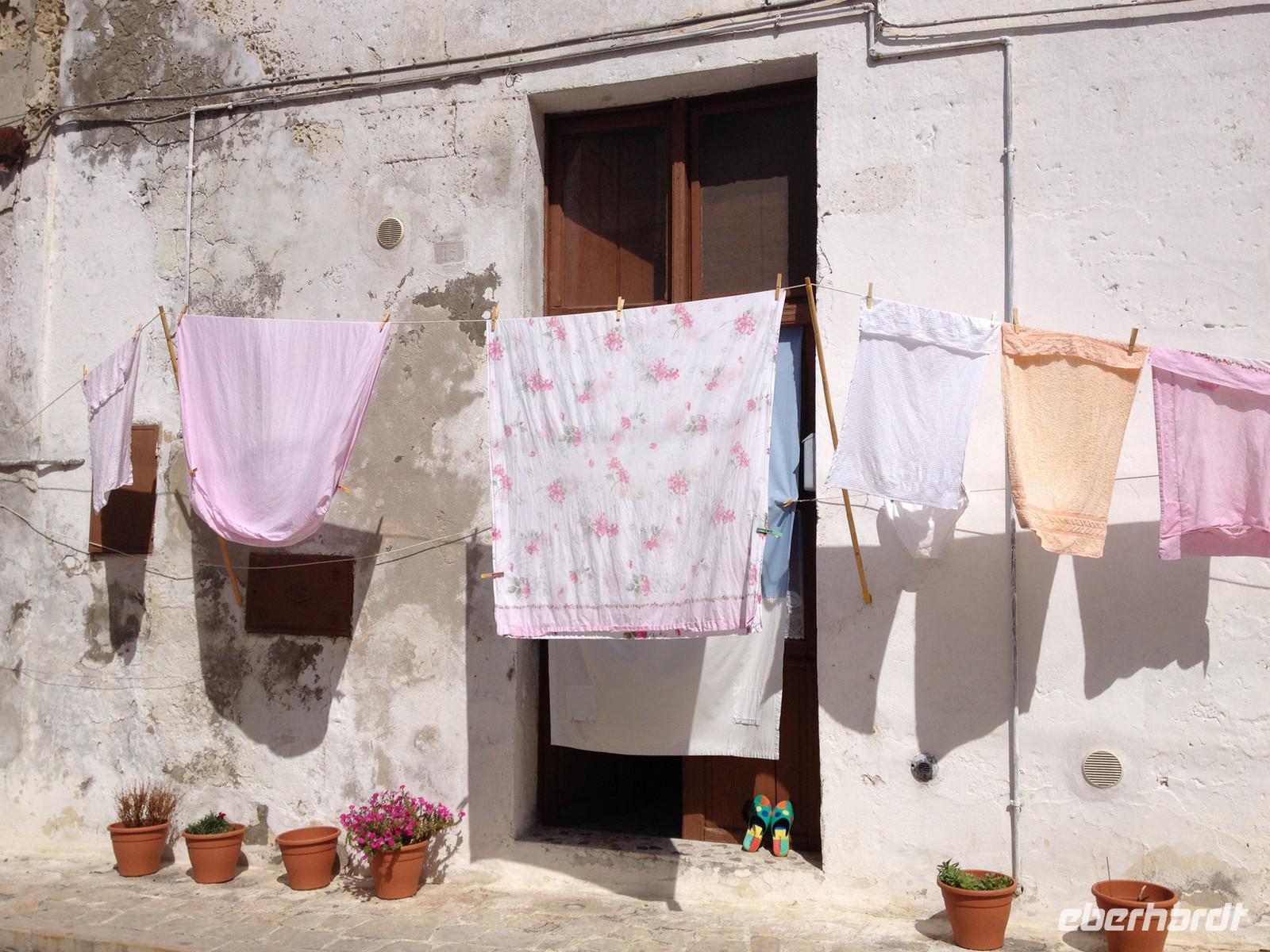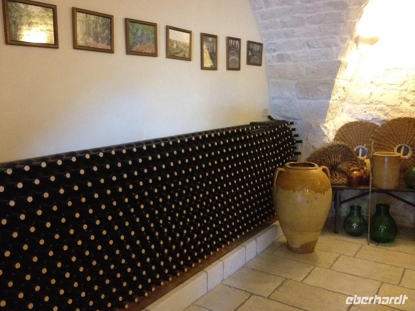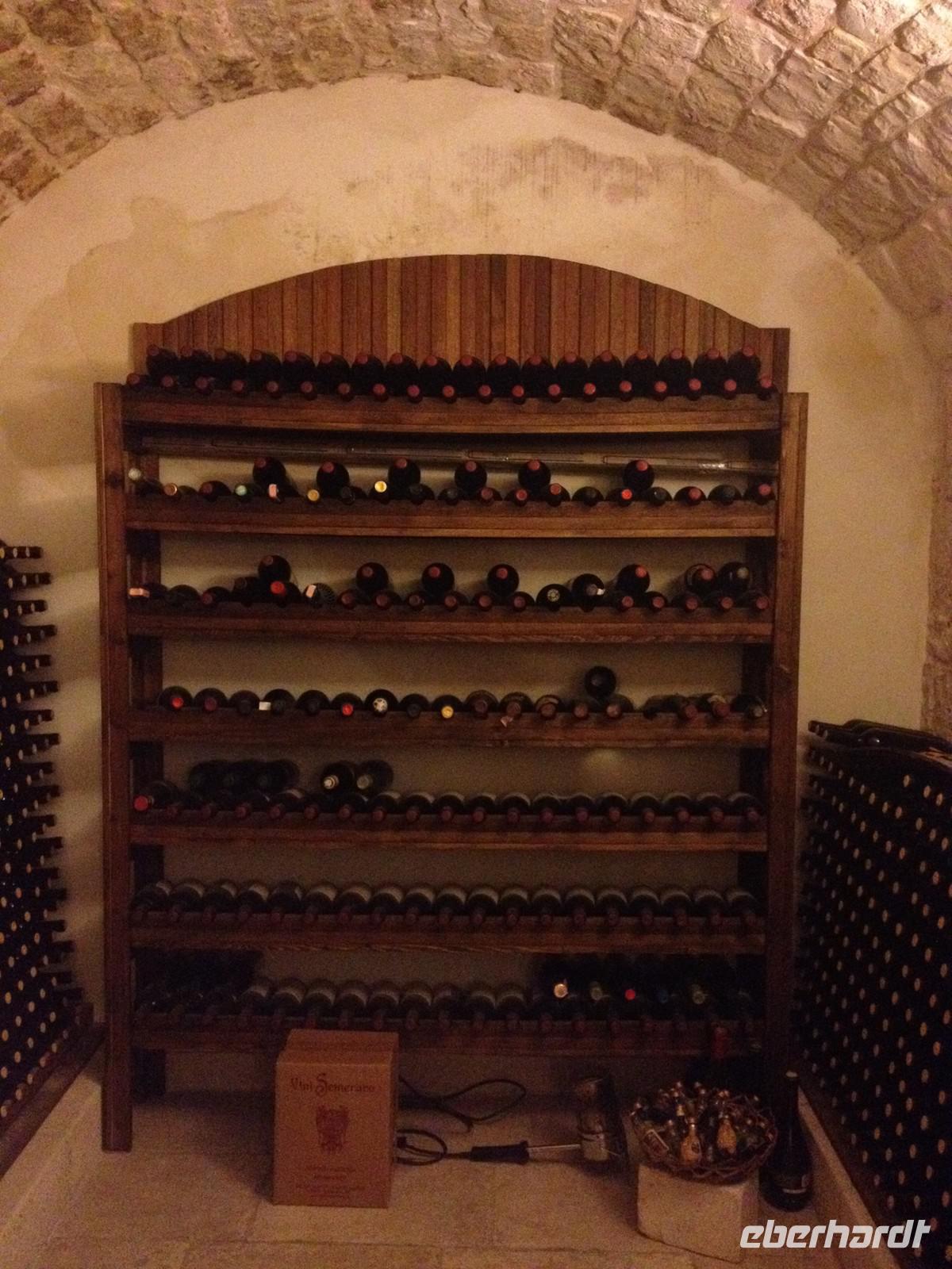 Gut gestärkt begann auch dieser Tag und wir verließen pünktlich um 8:30 Uhr das Hotel und fuhren mit unserer Reiseleiterin Mirella nach Castellana. Die Fahrt dauerte ca. 45 Minuten und man begrüßte uns bereits mit italienischer Musik durch einen Straßenmusiker, der mehr oder weniger gut versuchte ein paar Adriano Celentano Stücke zu spielen. Unser Einlass in die Grotten von Castellana war für 9:30 Uhr vorgesehen und eine lokale Führerin empfing uns auch gleich am Eingang und absolvierte mit uns in einer knappen Stunde den Rundgang durch die Grotte. Zuerst ging es einige Treppen bergab, dann standen wir in der ersten großen Grotte, wo noch Tageslicht von oben einfiel. Ab der zweiten Grotte gab es nur noch künstliches Licht - dafür umso mehr Stalagmiten und Stalaktiten. Beeindruckend schön! Kurz vor elf, vorher tranken wir noch einen Espresso, ging die Fahrt weiter nach Alberobello, wo wir 11:30 Uhr ankamen und bis 15 Uhr verweilten. Zunächst zeigte uns Mirella den alten Teil der Stadt, wo wir auch in einen Trulli hineingehen konnten und sahen, wie man wohnt - anschließend gingen wir in den „neueren" Teil der Stadt, der von Touristen überlaufen ist und es ein Geschäft am anderen gibt. Aber die Trullis sind sehr hübsch anzuschauen und Mirella brachte uns ganz bis oben, wo die Kirche der Stadt steht. Anschließend gab es Freizeit. Einige haben Eis gegessen oder einen Kaffee getrunken. Weiter brachte uns dann Salvatore nach Cisternino - wir spazierten kurz zu einem Aussichtspunkt und dann brachte uns Salvatore zur Enoteca Semeraro - hier waren wir von Eberhardt TRAVEL zur Weinverkostung eingeladen - welch eine Überraschung. Man zeigte uns etwas von der Weinherstellung, denn die Lese hatte bereits begonnen. Anschließend durften wir oben an langen Tischen Platz nehmen und bekamen weißen als auch roten Wein zu kosten. Dazu typische kleine Snacks und etwas Süßes hinterher. Um 18 Uhr traten wir den Heimweg zum Hotel an und pünktlich um 19:30 Uhr war jeder wieder zum Abendessen bereit. Ob man Hunger hatte oder nicht...