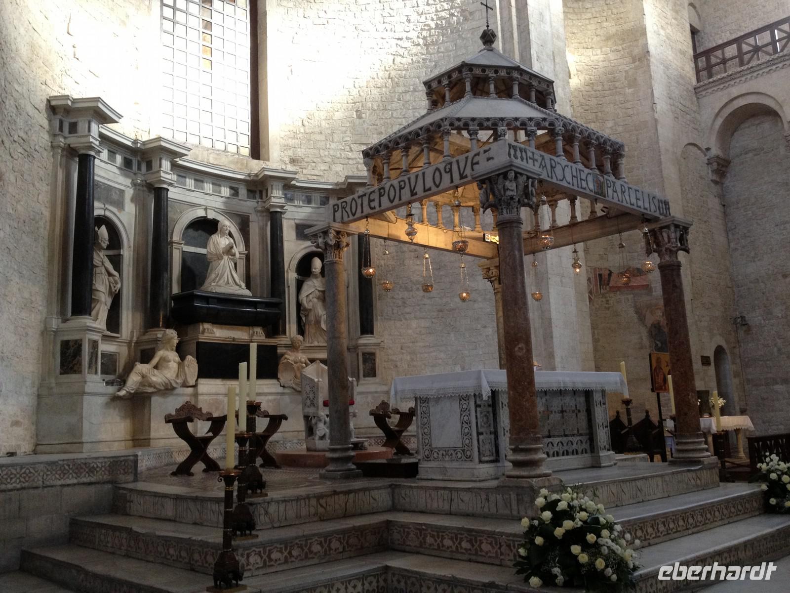 „Buongiorno a tutti" hieß es um 8:30 Uhr morgens wie jeden Morgen im Bus, als uns Mirella pünktlich empfang. Heute starteten wir gen Norden zum berühmten Stauferschloss Castel del Monte. Etwas über zwei Stunden dauerte die Fahrt und starker Regen war einer unserer kurzen Begleiter der Fahrt. Kurz darauf war die Wolke aber auch schon wieder verschwunden und purer Sonnenschein kam zum Vorschein - wie wir uns das gewünscht und bestellt hatten! Der Bus brachte uns zum Parkplatz unterhalb des Castels und wir stiegen in einen Shuttlebus um, der uns noch etwa 5 Minuten den Berg hinauf brachte. Das letzte Stück Fußweg legten wir zu Fuß zurück und dann thronte es vor uns - das gewaltige Schloss von Friedrich dem II. Mirella machte mit uns die Innenbesichtigung: zuerst das Erdgeschoss und anschließend stiegen wir 44 Treppen hinauf in den ersten Stock und schauten uns auch hier alle Räume an, die sich so ähnlich sehen. Von oben kann man in den Innenhof hinein sehen, der mit seinen acht Ecken schon besonders aussieht. Nach der Besichtigung gingen einige zu Fuß hinab zum Busparkplatz und bestaunten die vielen gelb blühenden Krokusse. Der Rest nutzte wieder den Shuttle. Gegen 12:30 Uhr starteten wir und fuhren nach Trani, wo wir unsere Mittagspause verbrachten. Ein wunderschönes Fischerdörfchen, was besichtigt werden wollte. Die meisten nutzten die Zeit für ein Eis oder ein erfrischendes Getränk. Um 15:30 Uhr kamen wir dann in Bari an und nutzten die Zeit für einen Rundgang durch die Altstadt. Wir schauten auf der Nudelgasse vorbei, wo die italienischen Frauen rechts und links des Weges ihre hausgemachte Pasta verkaufte und wir schauten in die Kirche des heiligen Nikolaus. Nach einer guten Stunde trafen wir uns wieder am Bus und fuhren zurück zum Hotel.
