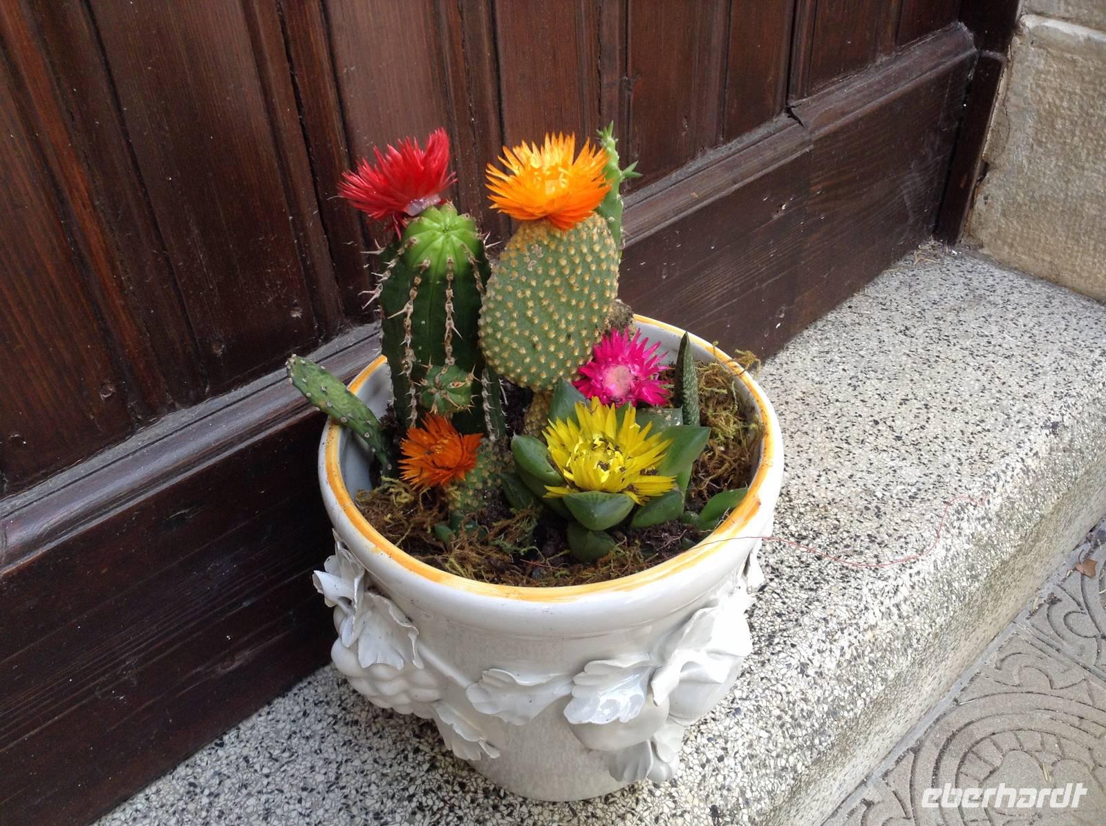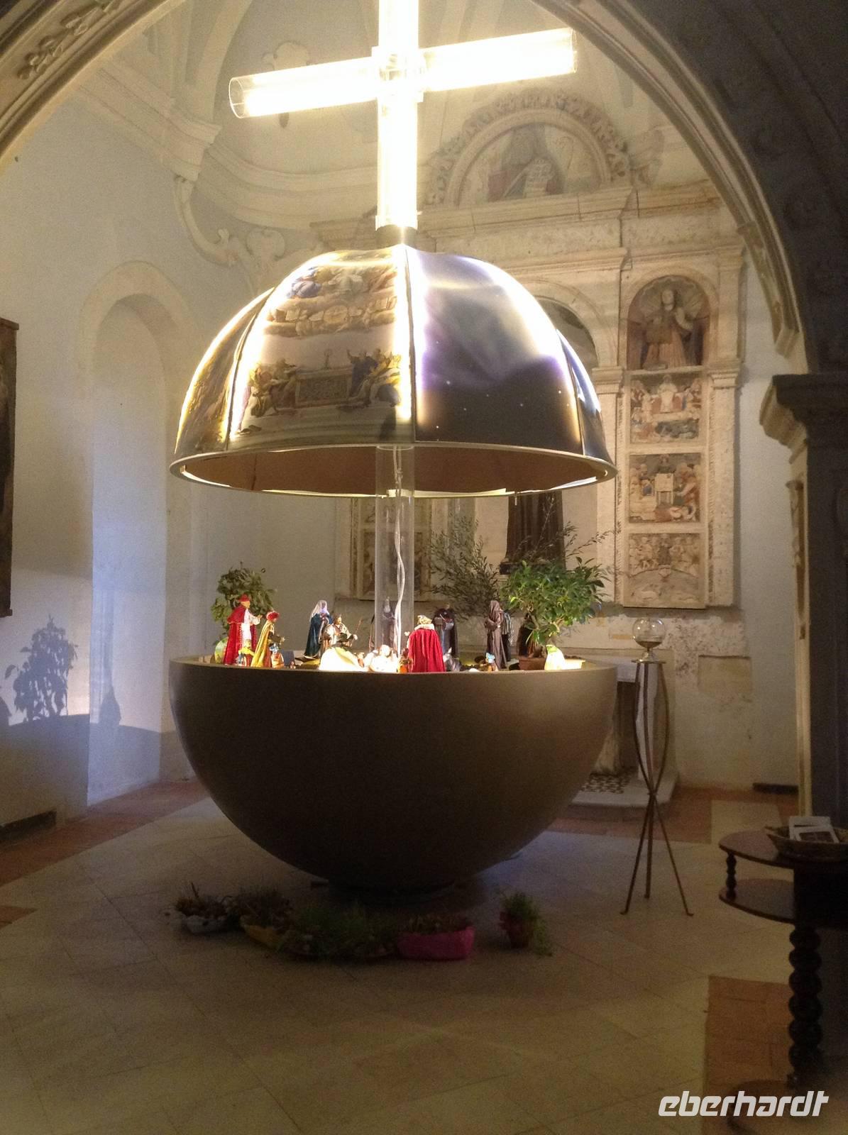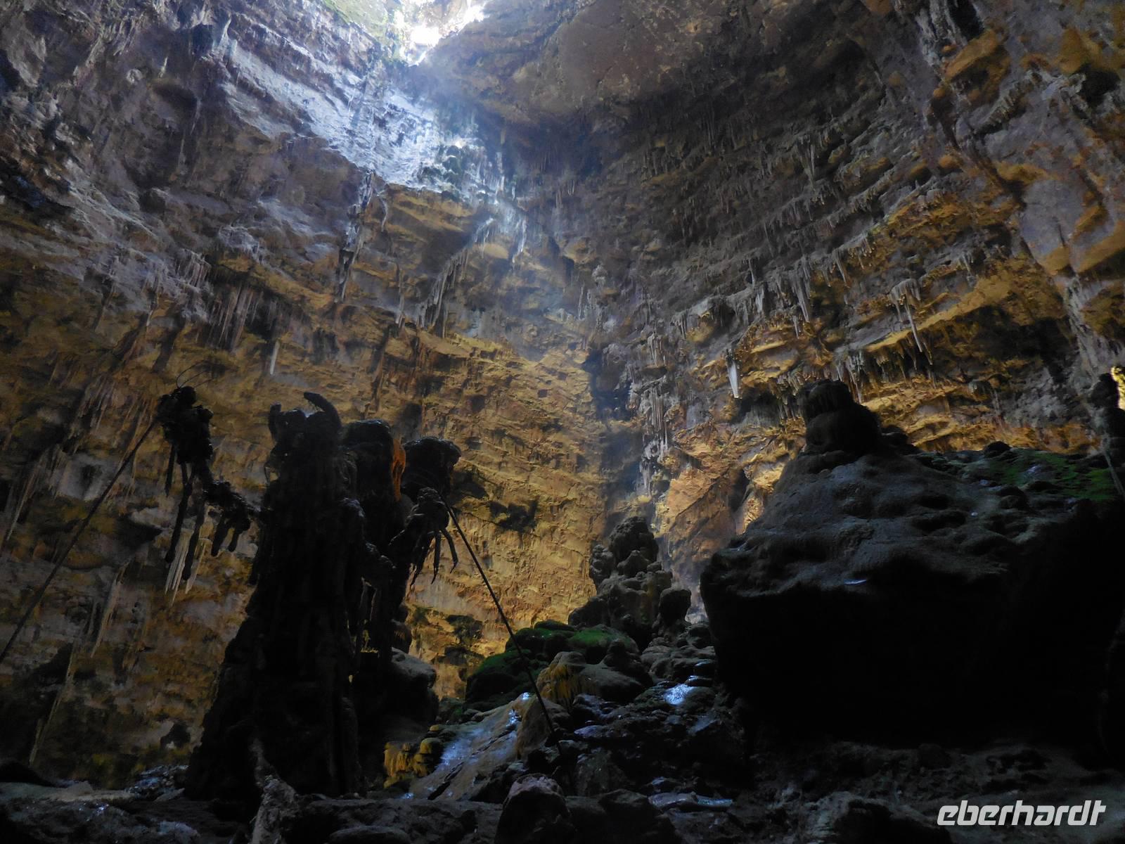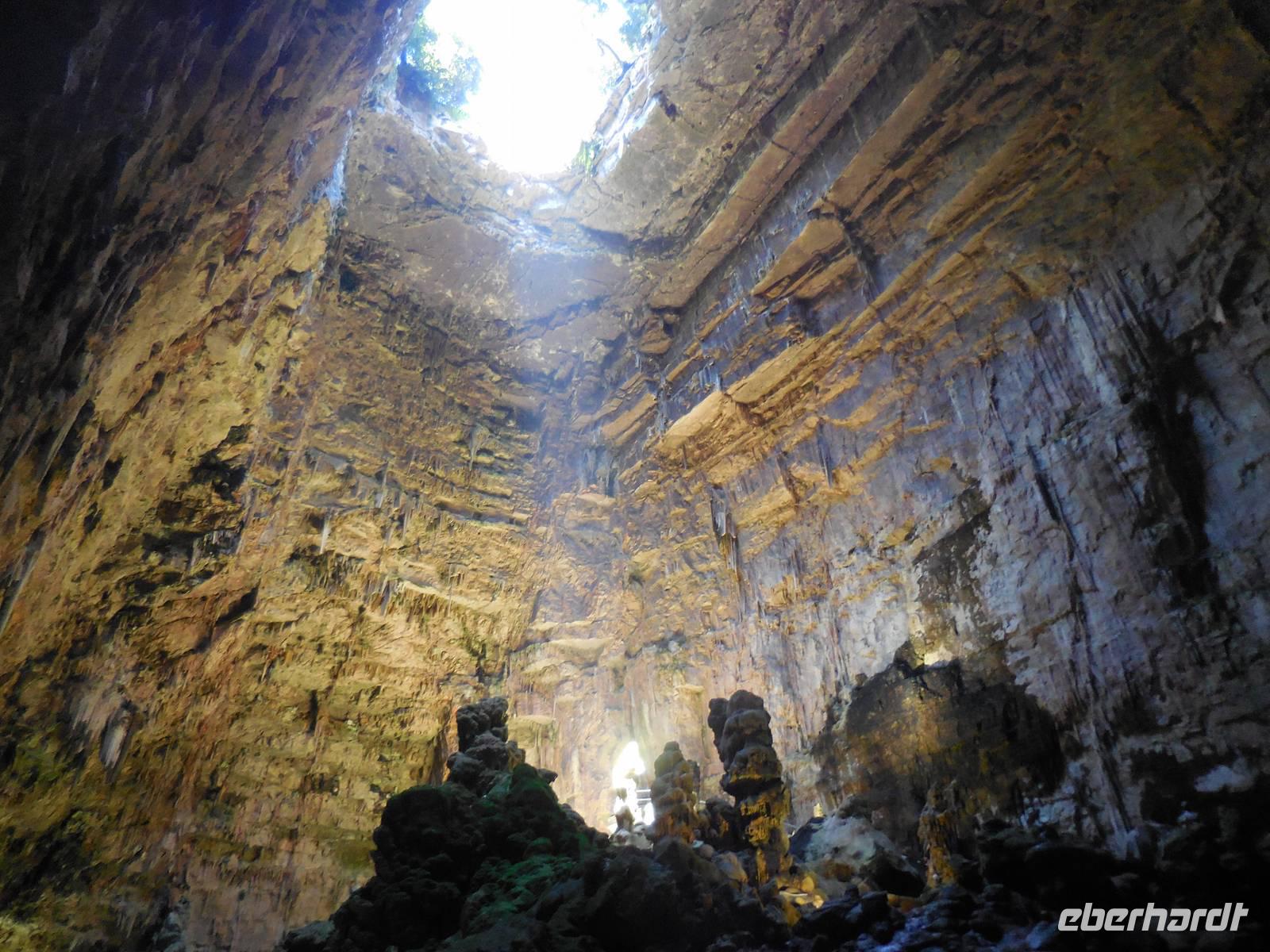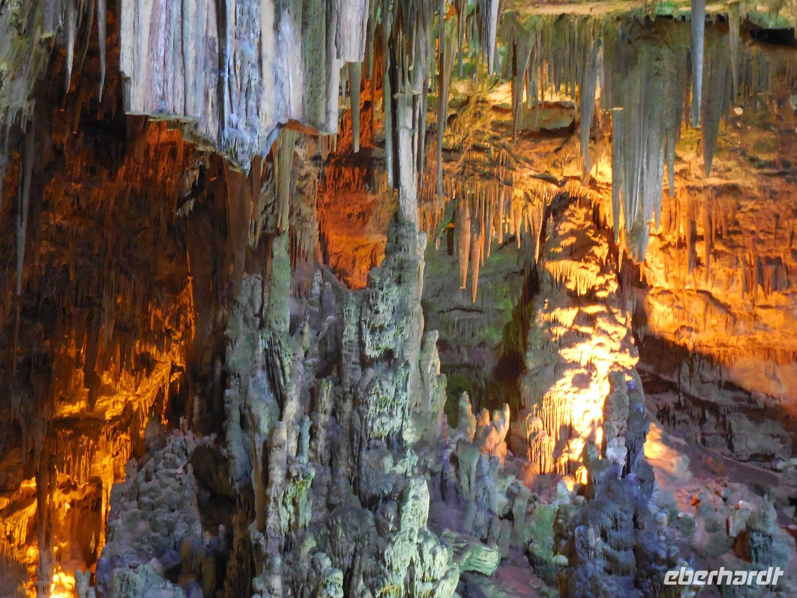 9:30 Uhr fahren wir ab entlang des Valle D'itria (wo es noch bis zu 10.000 Trullis geben soll) zu den Castellana-Grotten, die im Jahr 1938 entdeckt worden sind. Hier steigen wir etwa 100 Stufen hinab und befinden uns in einem riesigen Höhlenkomplex, dem wir nun 1,5 Kilometer pro Strecke folgen. Unendlich viele Stalagmiten und Stalagtiten beeindrucken uns mit ihren Formen und unterschiedlichen Größen. Gute zwei Stunden später erspähen wir wieder Tageslicht und vor allem froh, den knapp gewordenen Sauerstoff einzuatmen. Zurück im Bus fahren wir ins etwa 10 Kilometer entfernte Alberobello, wo wir zunächst unsere wohlverdiente Mittagspause einnehmen. Anschließend führt uns Mirella in die alte Stadt aus dem 14. Jahrhundert und danach in die neue Stadt aus dem 16. Jahrhundert. Bis hinauf zur Kirche laufen wir gemeinsam und genießen danach noch eine Stunde Freizeit im puren Sonnenschein und zwischen 1.400 Trullis. Nun kehren wir mit den ersten tollen Eindrücken zurück zum Hotel.