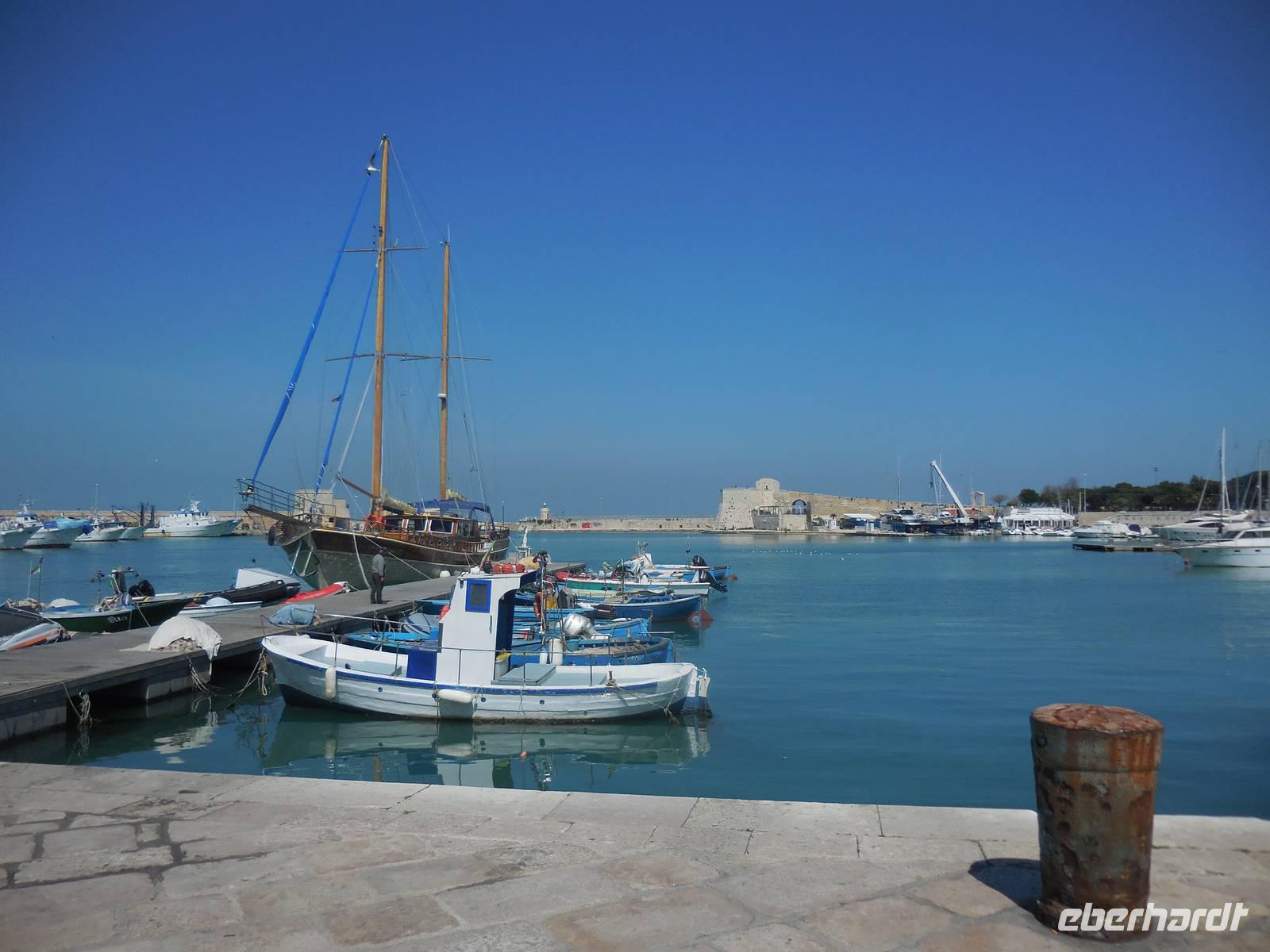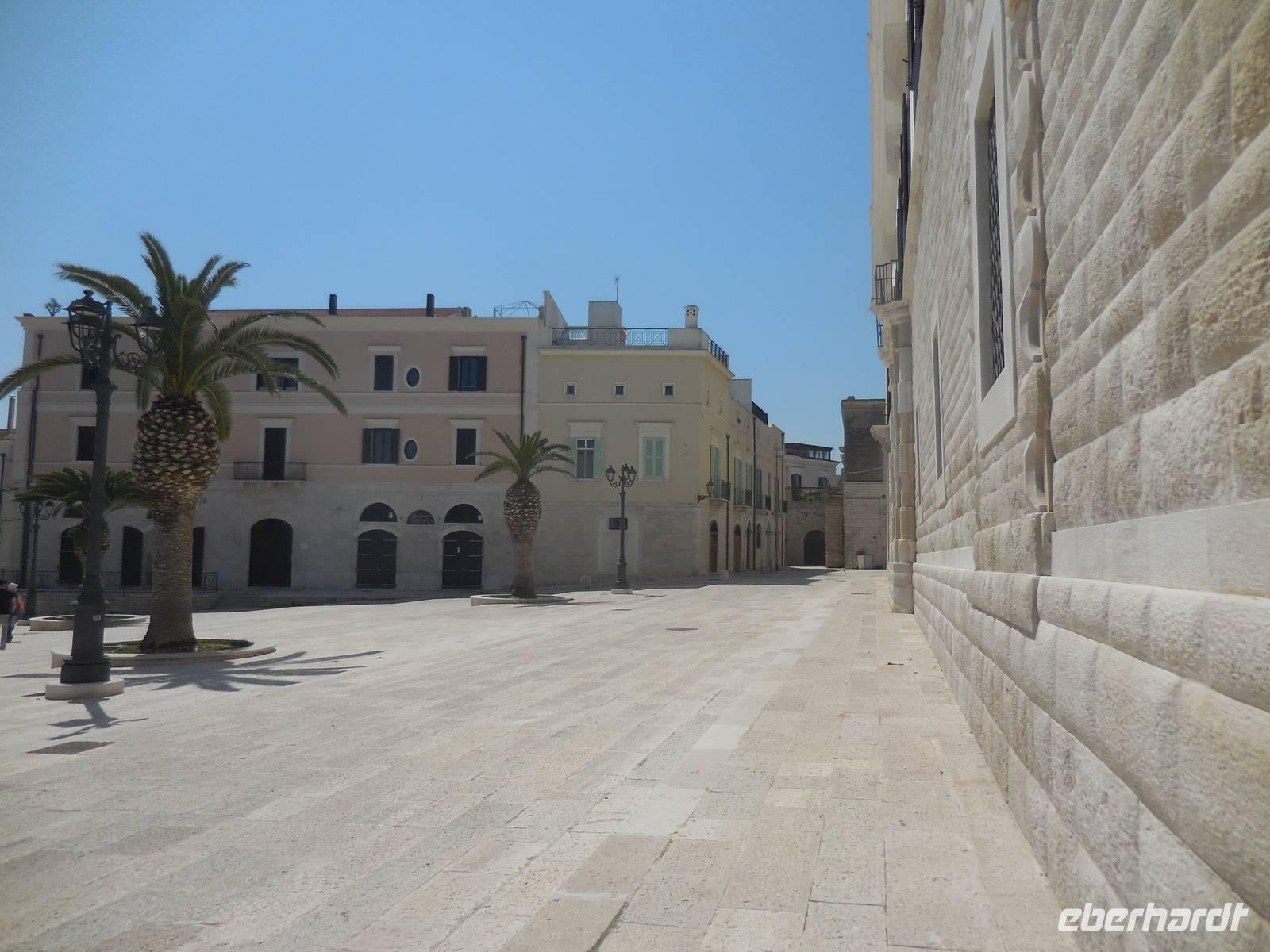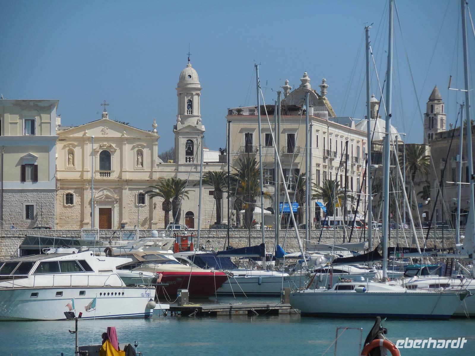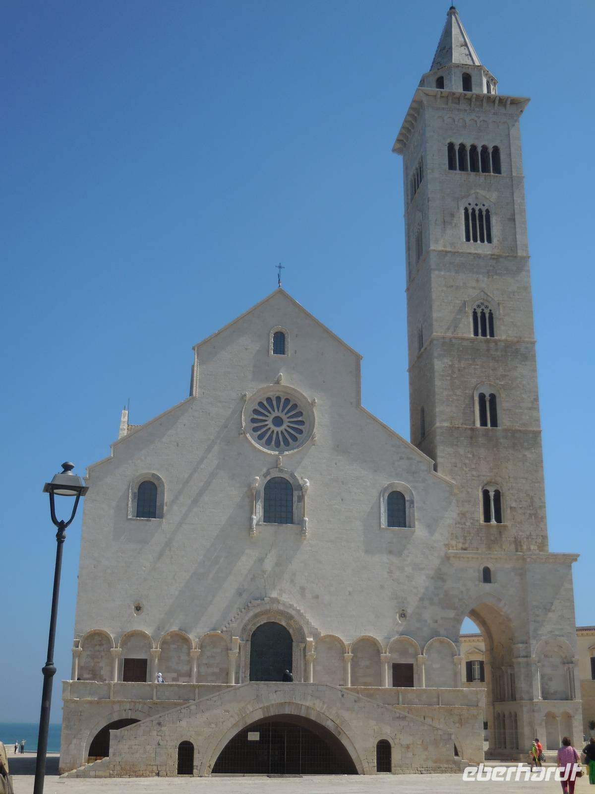 Die morgendliche Abfahrt führt uns zunächst zur Krone von Apulien - dem Stauferschloss Castel del Monte, etwa zwei Fahrtstunden vom Hotel entfernt. Mit dem Busshuttle fahren wir vom Parkplatz hinauf und Staunen nicht schlecht. Ein beeindruckendes Bauwerk aus Stein! Mirella führt uns durch die gesamte Anlage und wir machen immer wieder Fotos und sind begeistert. Wir Runden den Besuch mit einer Umrundung des Castells ab und unser schönes Gruppenfoto entsteht. Zu Fuß laufen wir hinunter wo unser Gianni schon auf uns wartet und uns nun nach Trani bringt. Das nette Hafenstädtchen ist unter anderem bekannt für seinen Marmor, einen guten Schaumwein, viel Industrie, der jüdischen Gemeinschaft (mit 5 Synagogen) sowie den Fischfang. Wir verpassen leider um 15 Minuten die Schließung der Kathedrale, sodass wir erst eine Mittagspause am Hafen einlegen, dann einen gemeinsamen Bummel durch den Park und die Altstadt machen und letztendlich um 15:30 Uhr wieder an der Kathedrale sind. Nach dem akademischen Viertel öffnet man uns das Tor und wir bestaunen das Bauwerk von innen. Dann kommen wir zum Bus und staunen nicht schlecht: wir werden nicht wie gewohnt von Gianni erwartet. Er war verschwunden und wir suchen ihn - im Café, auf der Toilette - nirgends ist er zu finden. Etwa 10 Minuten später kommt er um die Ecke gerannt :). Nun fahren wir gemütlich zurück zum Hotel und vertagen den Besuch von Bari auf den letzten Tag. Aber einen kleinen Spaziergang unternehmen noch einige vor dem Abendessen zur Aussicht über Fasano.