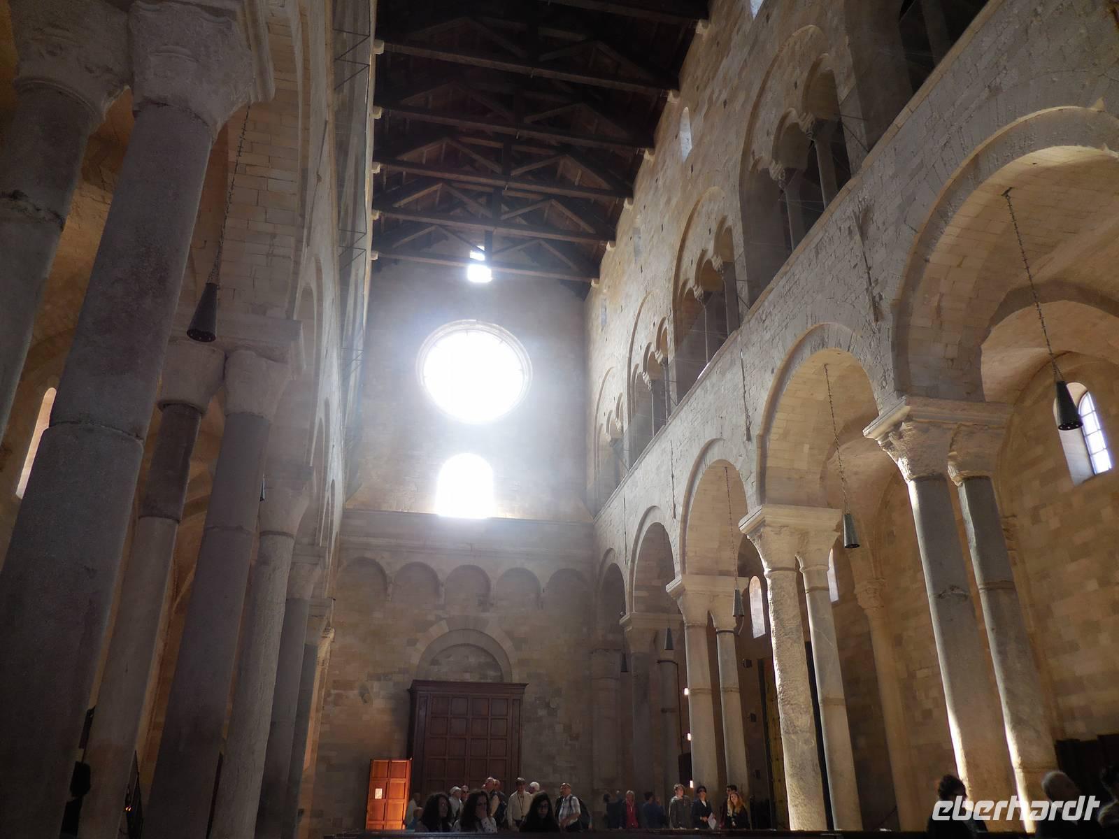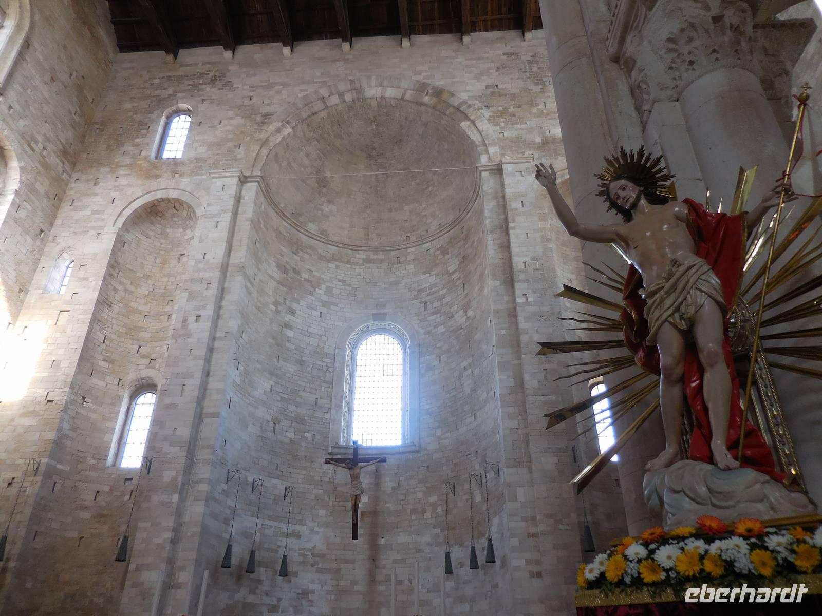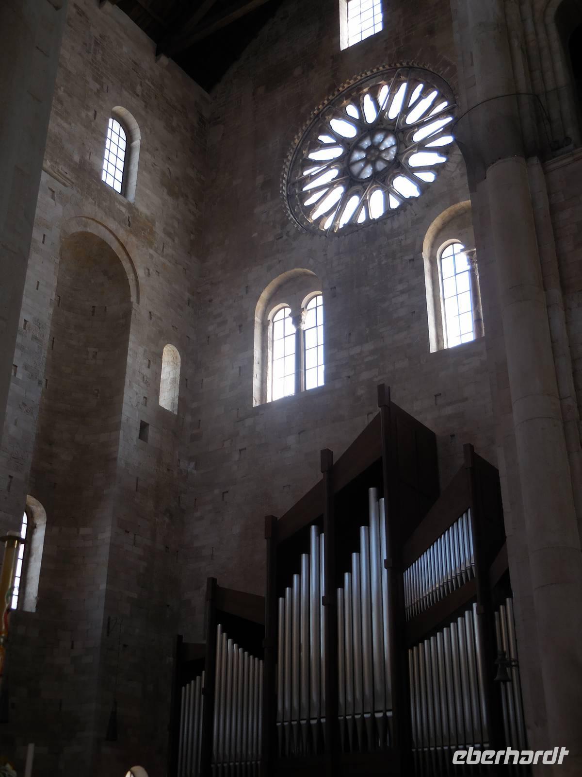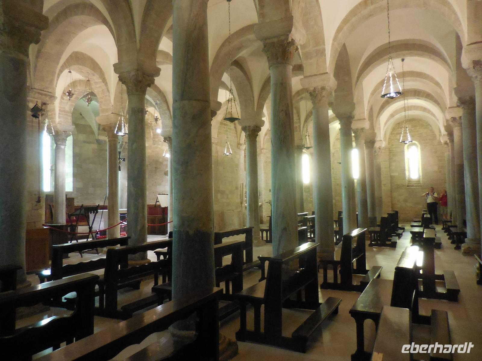 Die morgendliche Abfahrt führt uns zunächst zur Krone von Apulien - dem Stauferschloss Castel del Monte, etwa zwei Fahrtstunden vom Hotel entfernt. Mit dem Busshuttle fahren wir vom Parkplatz hinauf und Staunen nicht schlecht. Ein beeindruckendes Bauwerk aus Stein! Mirella führt uns durch die gesamte Anlage und wir machen immer wieder Fotos und sind begeistert. Wir Runden den Besuch mit einer Umrundung des Castells ab und unser schönes Gruppenfoto entsteht. Zu Fuß laufen wir hinunter wo unser Gianni schon auf uns wartet und uns nun nach Trani bringt. Das nette Hafenstädtchen ist unter anderem bekannt für seinen Marmor, einen guten Schaumwein, viel Industrie, der jüdischen Gemeinschaft (mit 5 Synagogen) sowie den Fischfang. Wir verpassen leider um 15 Minuten die Schließung der Kathedrale, sodass wir erst eine Mittagspause am Hafen einlegen, dann einen gemeinsamen Bummel durch den Park und die Altstadt machen und letztendlich um 15:30 Uhr wieder an der Kathedrale sind. Nach dem akademischen Viertel öffnet man uns das Tor und wir bestaunen das Bauwerk von innen. Dann kommen wir zum Bus und staunen nicht schlecht: wir werden nicht wie gewohnt von Gianni erwartet. Er war verschwunden und wir suchen ihn - im Café, auf der Toilette - nirgends ist er zu finden. Etwa 10 Minuten später kommt er um die Ecke gerannt :). Nun fahren wir gemütlich zurück zum Hotel und vertagen den Besuch von Bari auf den letzten Tag. Aber einen kleinen Spaziergang unternehmen noch einige vor dem Abendessen zur Aussicht über Fasano.