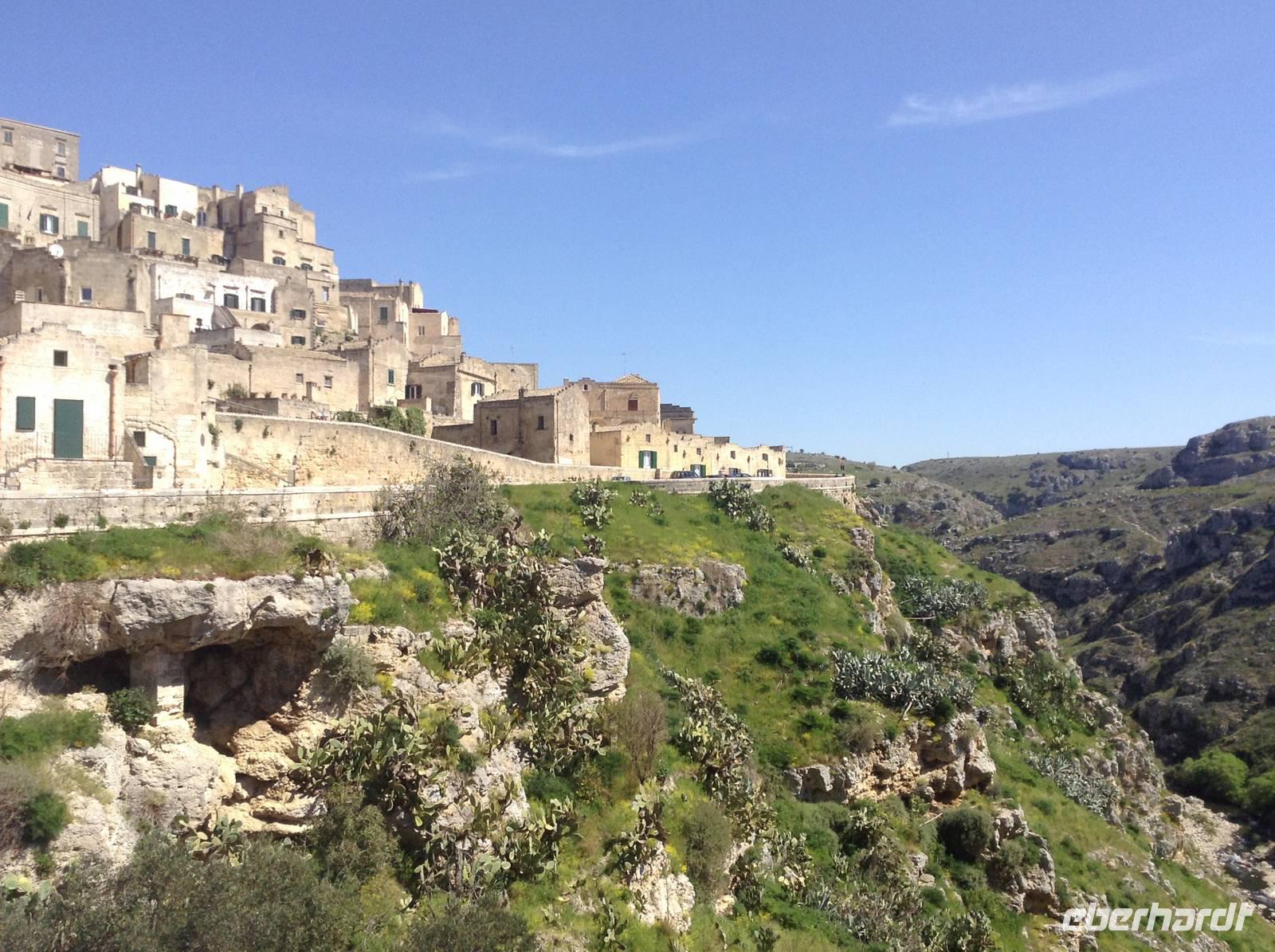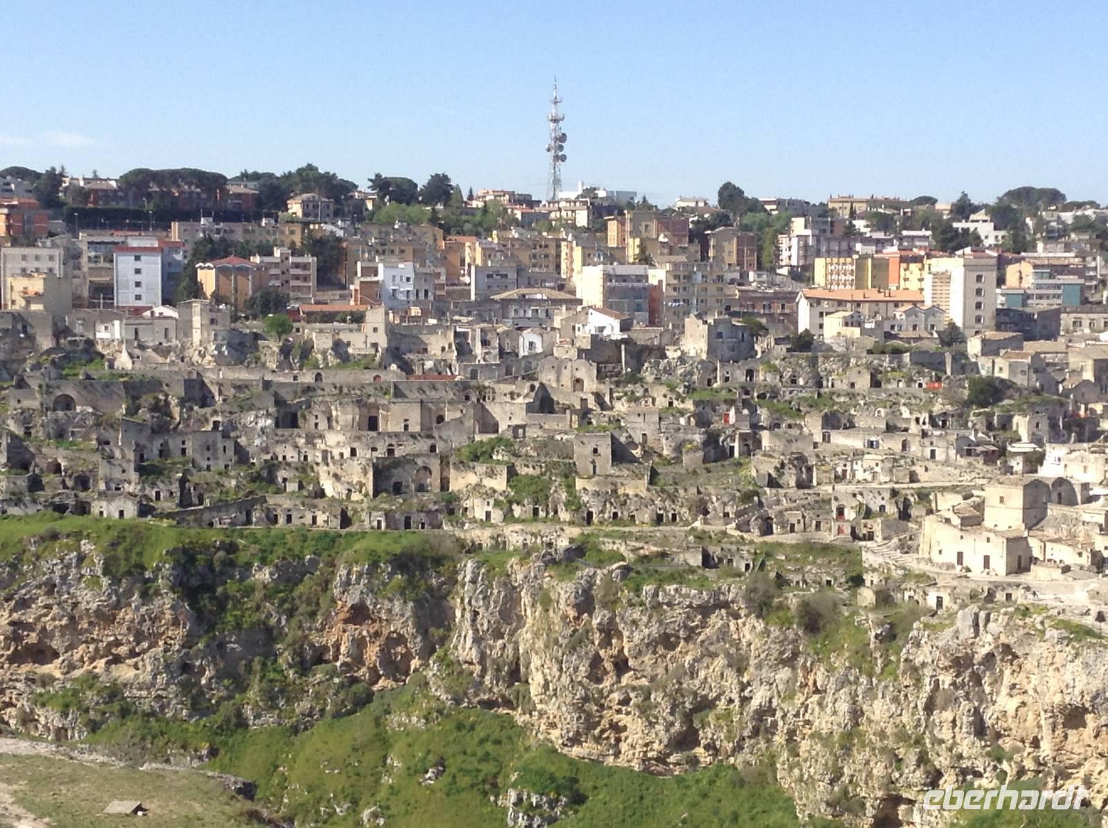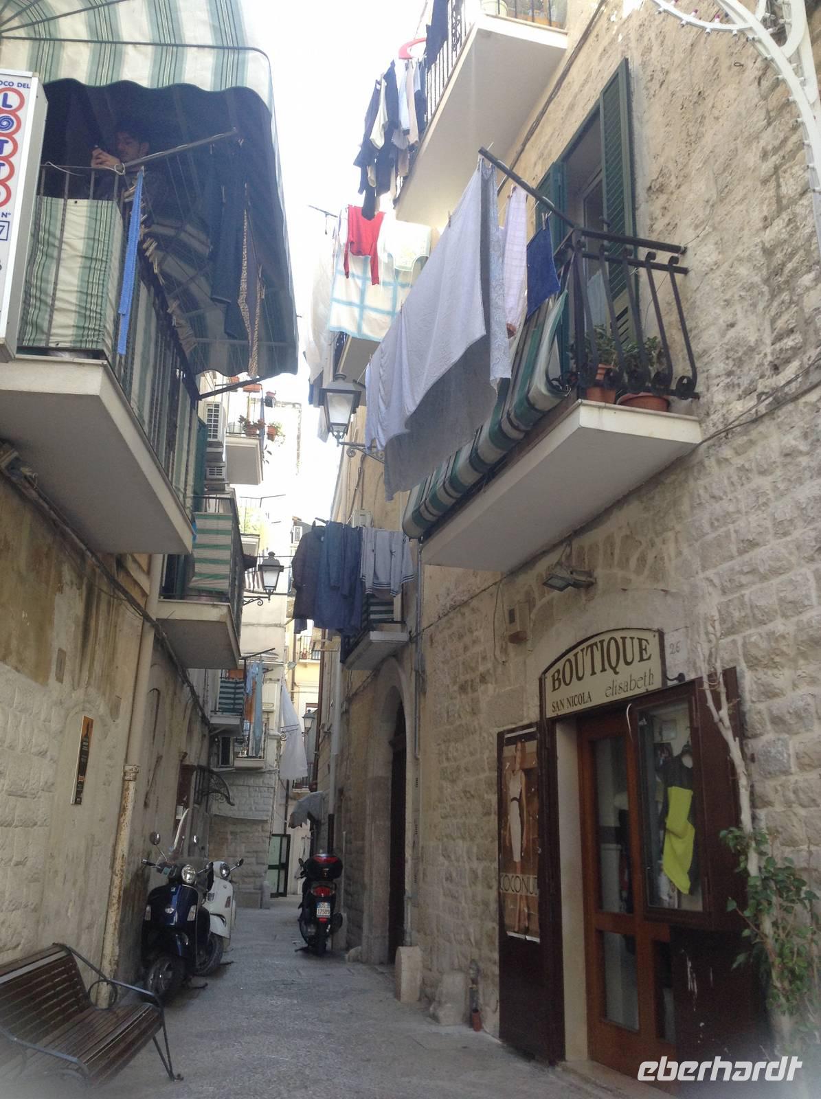 Wir verlassen das Hotel um 8 Uhr morgens und machen uns auf in die Nachbarregion von Apulien - die Basilikata. Hier wohnen in der gesamten Region so viele Menschen wie allein in Bari. Etwa zwei Stunden Fahrt haben wir vor uns, ehe wir Matera erreichen. Die Provinzhauptstadt der Region ist Potenza und Mirella erzählt uns vieles zur Region. Unterwegs fahren wir auch durch Putignano. Dieses Städtchen ist bekannt für den ältesten Karneval von Italien, für die Brautmode und für eine weitere Grotte, die wohl mit der Grotte von Castellana verbunden ist, aber in 100 Meter Tiefe liegt. Wir erreichen zunächst einen Aussichtspunkt, von dem aus wir einen Überblick über das gesamte Stadtpanorama haben und sehr gut das Gefälle von arm nach reich erkennen. Wieder im Bus bringt uns Gianni ins Stadtzentrum, wo wir aussteigen und mit Mirella den Stadtrundgang beginnen. Auf den ersten Blick erkennen wir gar nicht, dass der alte Teil der Stadt aus Höhlen besteht. Wir steigen hinab auf etlichen Stufen und kommen zum Hauptplatz mit der Kirche. Ein Stückchen weiter kommen wir zu einer verlassenen Höhlenwohnung, die erst 1965 von seinen Bewohnern verlassen worden ist als die Zwangsumsiedelung war. Wir besichtigen die Wohnung und man erklärt uns per Tonband was wo zu sehen ist. Wir können uns alle nicht vorstellen, so gelebt zu haben, ohne Strom und fließend Wasser. Auch unsere heutige Mittagspause verbringen wir in Matera und einige der Gruppe fuhren mit dem Lift auf die Aussichtsterrasse mit Blick über die Stadt. Nachmittags fahren wir weiter nach Bari und wir sind gespannt was uns diese Stadt zu bieten hat. Die Kirche des Heiligen Nicolaus ist unsere erste Station und Mirella erzählt uns die Geschichte ausführlich, die so gar nichts mit dem deutschen Brauch am 6.12. zu tun hat. Dann bummeln wir durch die Gassen der Altstadt, schauen auf der Nudelgasse vorbei und in die Küchen hinein, wo wir die alten Damen sehen, wie sie die Nudeln formen. Zum Schluss unserer Runde schauen wir noch in der Kathedrale vorbei und genießen nun noch eine Stunde Freizeit. Dann verabschieden wir uns mit einem weinenden Auge von unserer Mirella und fahren zurück zum Hotel. In voller Erwartung auf das letzte Abendessen unserer gemeinsamen Reise.