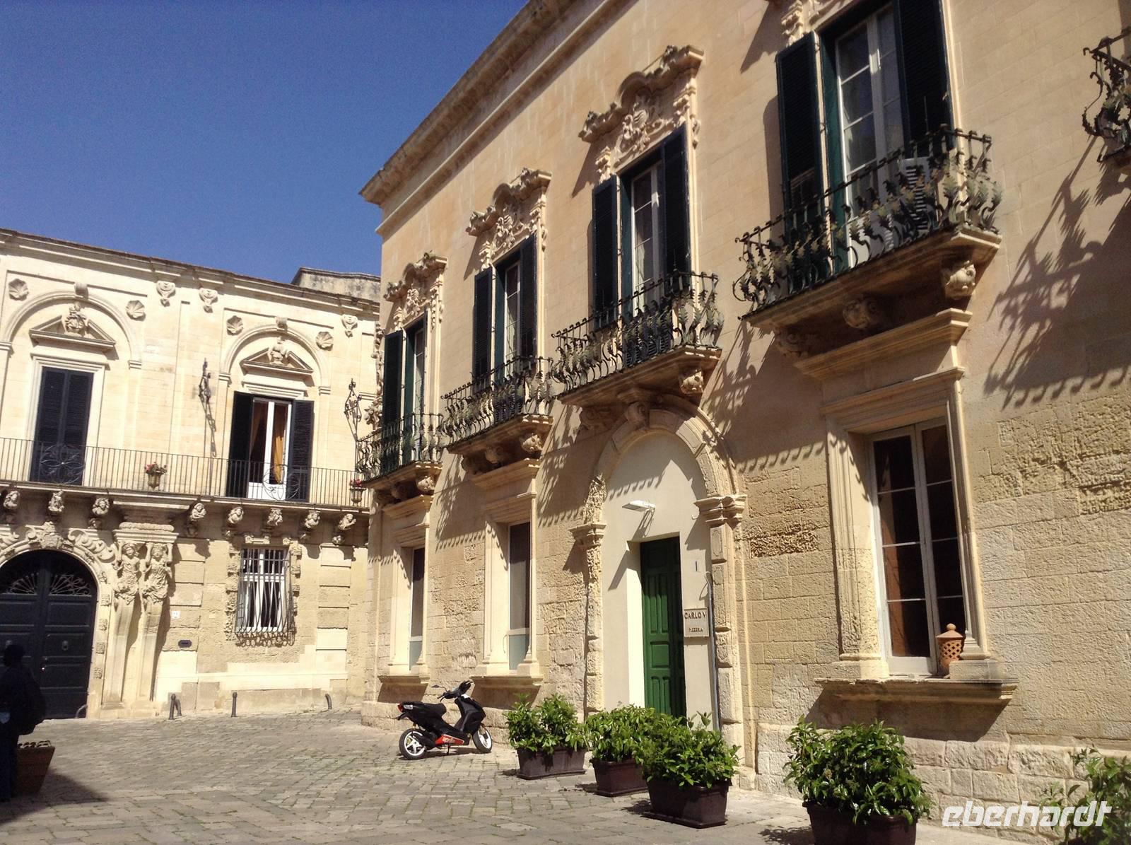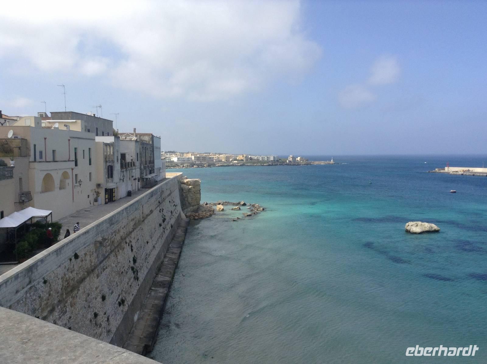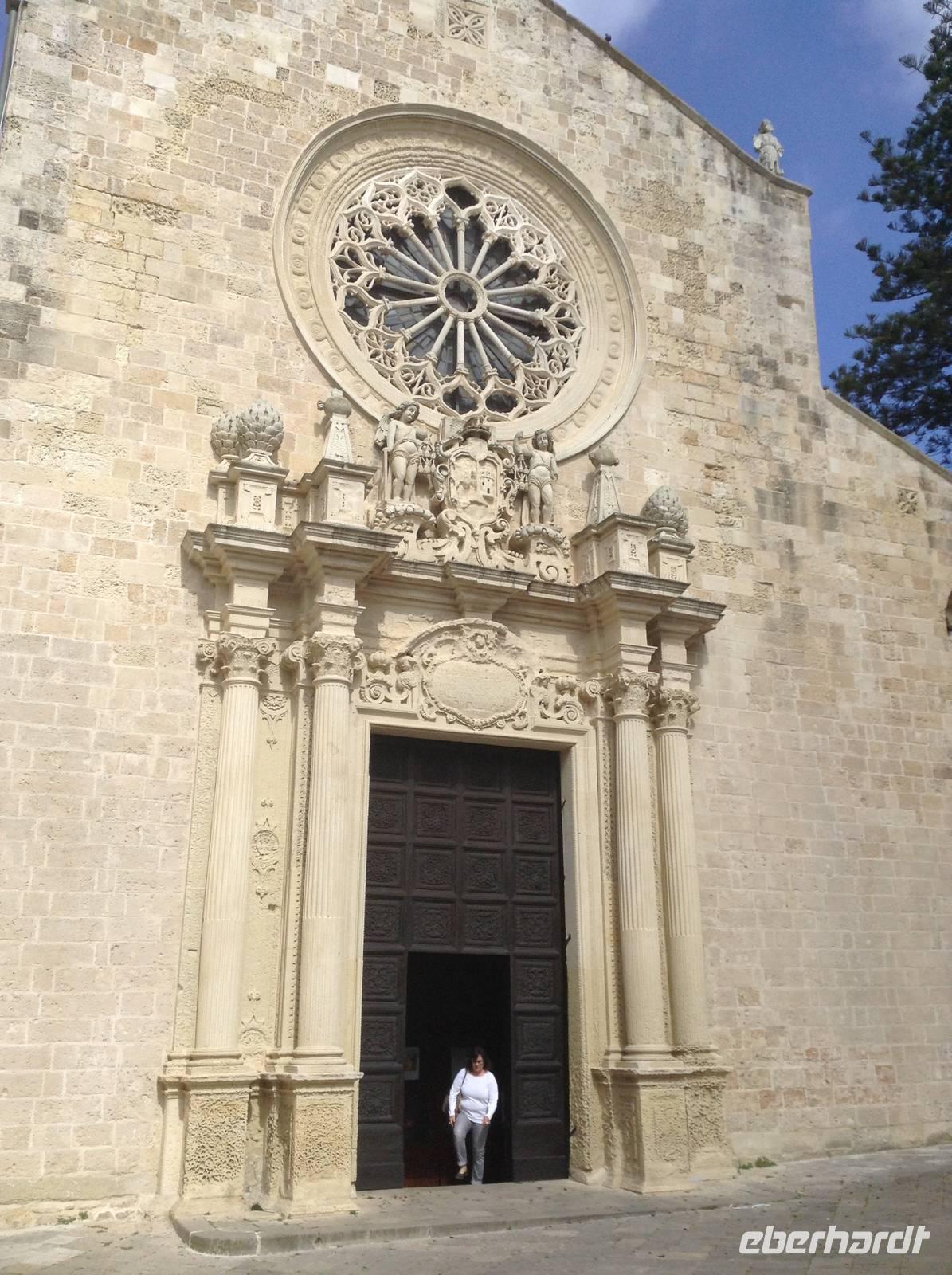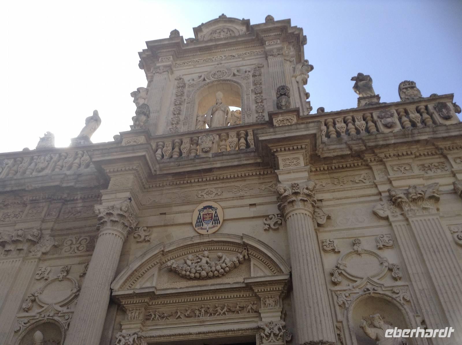8:15 Uhr fahren wir vom Hotel ab nach Lecce, der Barockstadt Süditaliens schlechthin. Knappe zwei Stunden Fahrt dauert die Strecke und Gianni lässt uns am großen Torbogen aussteigen. Wir laufen gemütlich die engen Gassen hinein in die Altstadt und stehen plötzlich vor der Kathedrale an der umschlossenen Piazza. Nach der Innenbesichtigung laufen wir weiter und sind erfreut, dass es auch zum Samstag viele Schulklassen anzutreffen gibt :-). Nach unserer Erkundungstour zu Fuß haben wir eine gute Stunde Freizeit, die jeder mit einem Café oder einem Einkaufsbummel verbringt. Gianni empfängt uns wieder am Bus und wir fahren weiter nach San Cataldo, einer früheren römischen Hafenstadt. Am Lago Alimini und gegenüber das azurblaue Meer machen wir Stopp und es gibt ein tolles Picknick als Überraschung. Dann fahren wir weiter nach Otranto, wo wir Griechenland bis auf 60 Kilometer Luftlinie nahe kommen. In der Stadt unternehmen wir mit Mirella einen Rundgang und sehen zum Beispiel die Kathedrale, die zu früherer Zeit ein Tempel der Göttin Minerva gewesen ist. Wir haben einen unglaublich tollen Blick auf den Hafen und der Adria. Nach unserem Spaziergang durch Otranto haben wir etwas Freizeit zum shoppen, Eis essen und genießen. Um 17 Uhr fahren wir zurück nach Selva di Fasano und können das Abendessen kaum erwarten.
