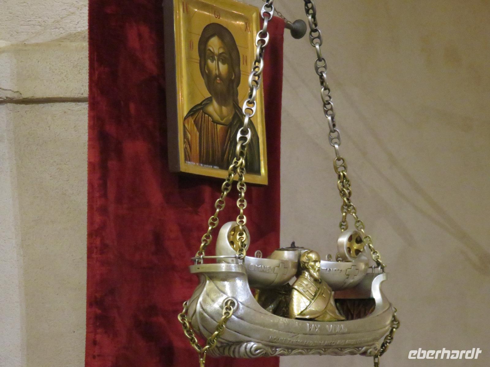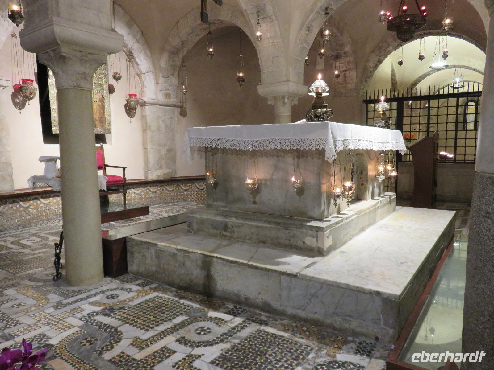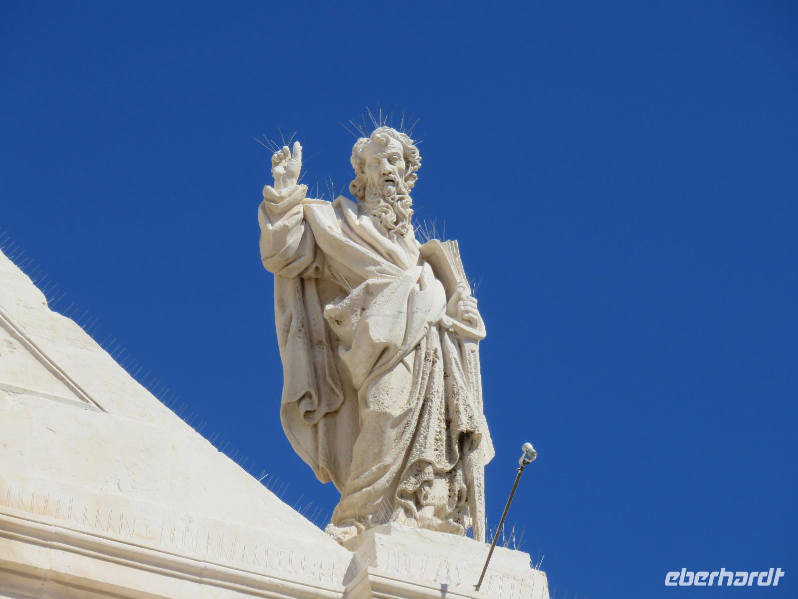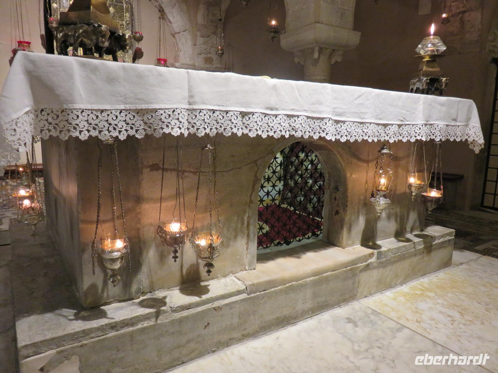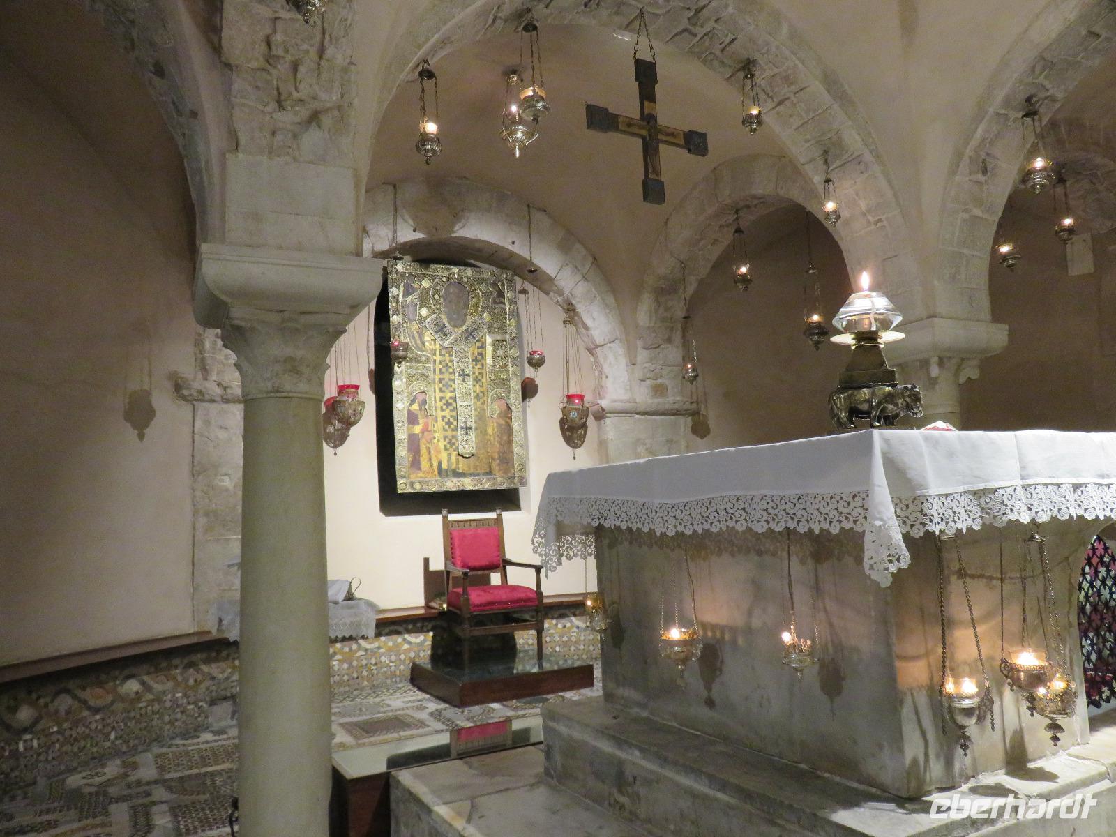 In der Kathedrale S. Sabino fand gerade eine Hochzeitsfeier statt. Wir konnten die Krypta besichtigen. Weiter führte uns unsere Besichtigungstour zur Basilika S. Nicola. Der Bau wurde in dem Jahr begonnen als die Reliquien des Heiligen Nikolaus nach Bari kamen. Am heutigen Samstag fand auch in dieser Kirche eine Hochzeit statt. Deshalb begaben wir uns in die Unterkirche, dort wo die Gebeine des Heiligen Nikolaus aufbewahrt werden. Mirella berichtete ausführlich zu Geschichte seiner Legende. Er gilt als Schutzpatron der Kaufleute und der Seefahrer, als Kinderfreund und Weihnachtsmann. Und so waren es auch 62 Seeleute aus Bari, die die Gebeine aus Kleinasien, aus Myra, dem heutigen Demre, raubten und nach Italien brachten. Alljährlich vom 7. bis 9. Mai findet in Bari ein großes Fest zu Ehren des Heiligen Nikolaus statt. Die Vorbereitungen waren gerade in vollem Gang.