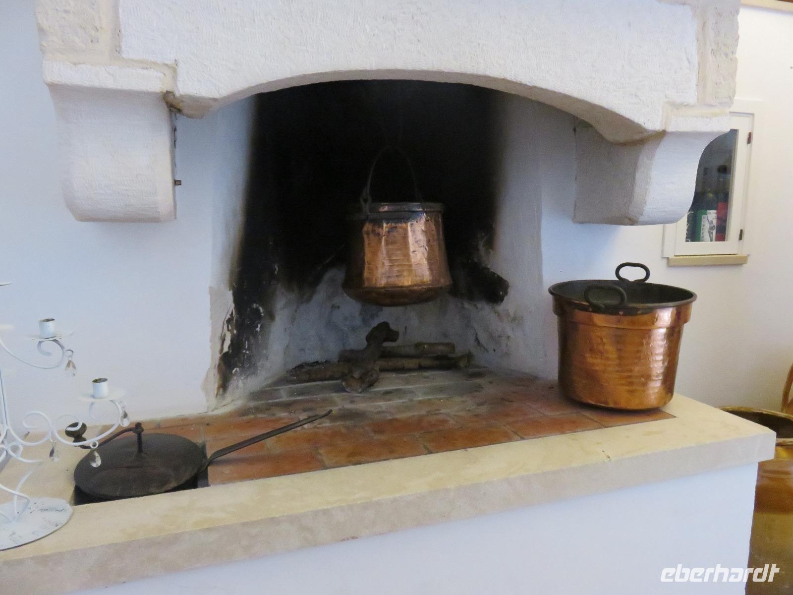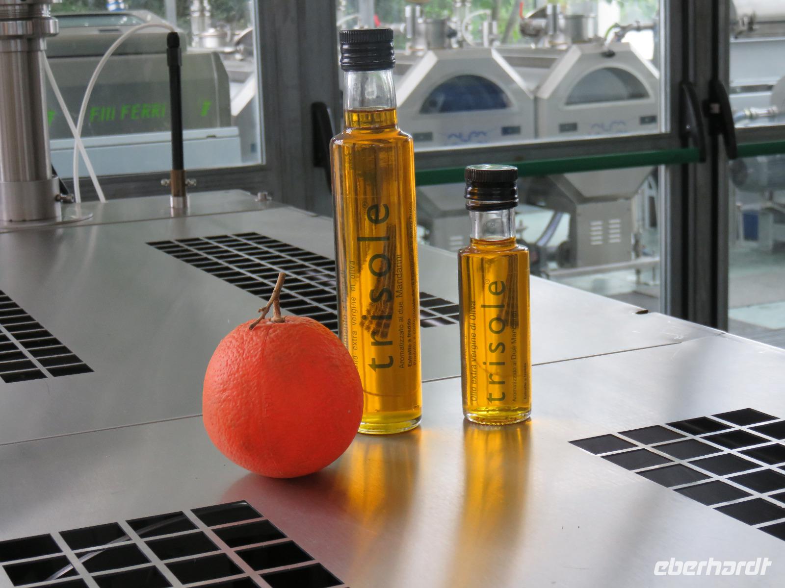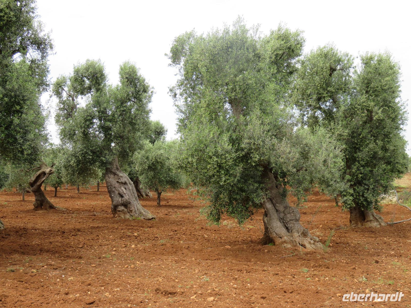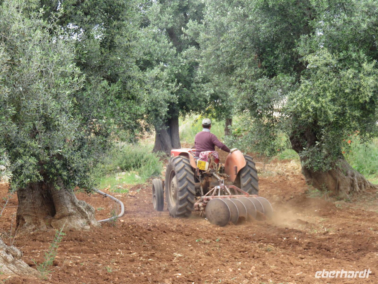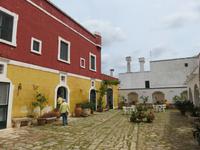 In der Masseria Refrigerio begrüßte uns die Chefin des Hauses herzlich. Wir nahmen an der großen Tafel im Erdgeschoss zu einem opulenten Mittagsmahl Platz. Die Küche hatte aus frischen Zutaten ausgezeichnete, vegetarische, mediterrane, gesunde Spezialitäten gezaubert. Nur bei einem Gang wurden Fleischspezialitäten aufgetischt. Kaffee und Apfelkuchen mit frischen Erdbeeren rundeten unser Mahl ab. Herzlichen Dank für diese Köstlichkeiten!Gut gestärkt reisten wir zur Ölmühle bei Cisternino. Zuerst mussten alle Gäste auf die Waage. Oh und das nach unserem Mittagessen in der Masseria! Wir wogen 1.445 kg. Nun, die Besitzer wollten uns nur mitteilen, dass aus diesem Gewicht hätten 180 Liter Öl gepresst werden können - je nach Sorte werden 7 bis 10 Kilogramm Oliven für einen Liter Öl benötigt. Unsere Rundgang führte vorbei an den alten Pressen und den modernen Ölmühlen zu einem kleinen Trullo. Hier verkosteten wir einige der Öle, auch aromatisierte mit Zitronen, Orangen, Zwiebeln ... Natürlich kauften wir einige Flaschen oder kleine Kanister Olivenöl sowie kosmetische Produkte. Für den Flug bot die Mühle den tollen Service des Einschweißens. Auf dem Rückweg trübte es sich ein und leichter Regen kam auf. Es regnete bis in den Morgen des nächsten Tages.