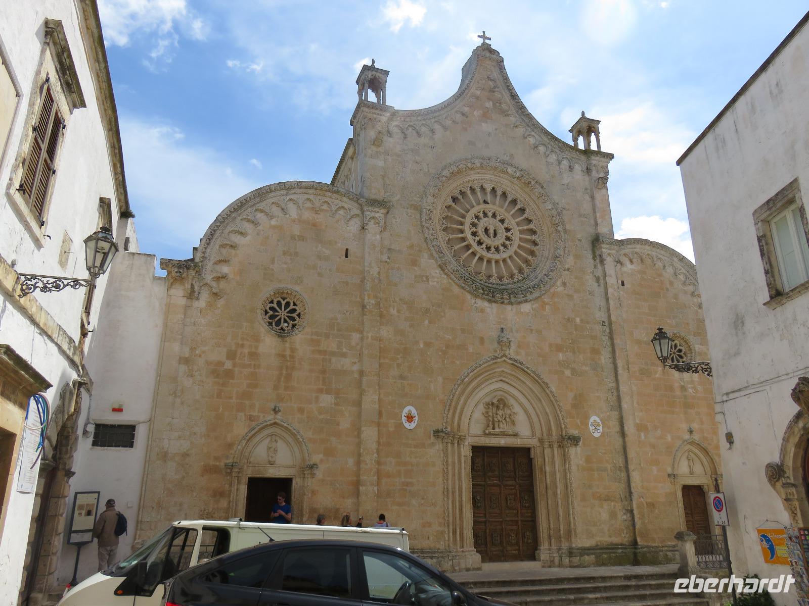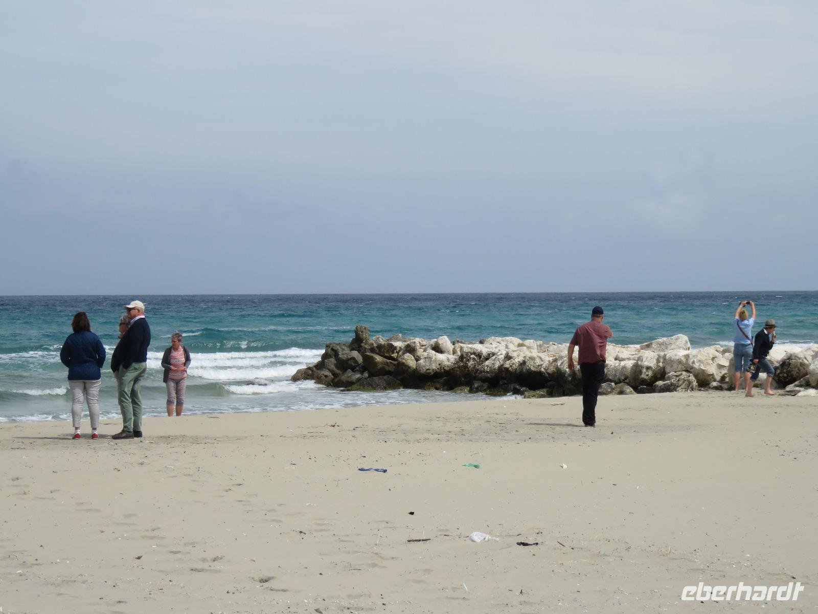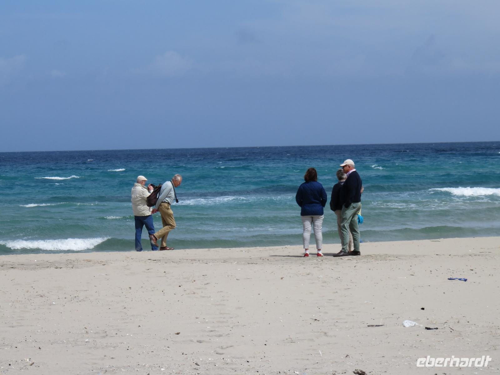 Der Morgen empfing uns erneut mit Sonne. Wieder starteten wir gleich nach dem Frühstück zu unserem Ausflug. Unser erstes Augenmerk galt der kleinen Stadt Martina Franca. Bereits von weitem grüßte uns das Stadtensemble auf dem Monte San Martino mit der Dom S. Martino in der Mitte. Wir spazierten durch die Gassen der noch „schlafenden" Stadt, genossen den Anblick der schmucken Gebäude. Leider war der Dom noch nicht geöffnet. So mussten wir uns mit dem Anblick von außen begnügen. Dafür besichtigten wir einige Räume im prächtigen Palazzo Ducale und bestaunten barocke Fresken. Hier sahen wir eine kleine Ausstellung zum Leben in der Region, zum Naturschutz und zum Handwerk. Sehr imposant auch der Innenhof, der im Sommer für Konzerte und Opernaufführungen genutzt wird. Unser Reiseplan führte uns nun in die „weiße Stadt" Ostuni, Zunächst spazierten wir hinauf zu Piazza della Libertà, dem Hauptplatz am Fuße des Altstadthügels. Unser Weg führte uns hinauf zur spätgotischen Kathedrale S. Maria Assunta. Wir bestaunten die Fensterrosette mit den zwölf Aposteln, den 24 Säulen, die die Speichen eines Rades bilden, in dessen Mitte Jesus Christus steht. Anschließend flanierten wir durch die Gässchen zur Stadtmauer mit wunderschönem Blick auf die Adria, die sich in unterschiedlichen Blautönen präsentierte. Viele kleine Restaurants laden zum Verweilen ein, besonders an den Abenden soll es eine pittoreske Kulisse bilden. Vielleicht eine Anregung für das Programm! Wir gingen nochmals an der entweihten Kirche S. Vito Martire vorbei. Hier befindet sich ein Museum mit Steinzeitfunden, darunter das Skelett einer schwangeren Frau, der 20-jährigen Delia, die vor 25.000 Jahren mit reichem Muschelschmuck beigesetzt wurde. Schließlich erreichen wir durch das Gewirr der Gassen, später mit dem Blick auf die gewaltigen weißen Stadtmauern, wieder die Piazza della Libertá mit der Guglia di Sant'Oronzo, einem 21 Meter hohen Obelisken mit der Statue des Stadtpatrons. Wir nutzten die Zeit zu einer kleinen Pause am Café Centrale.