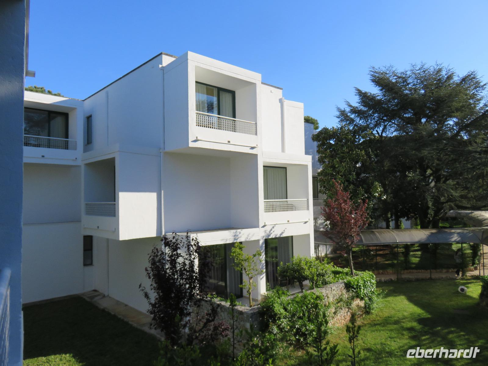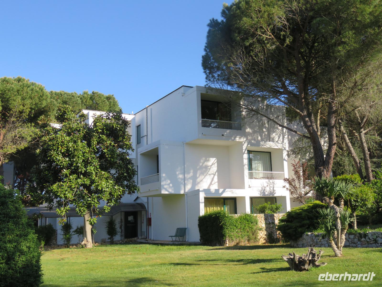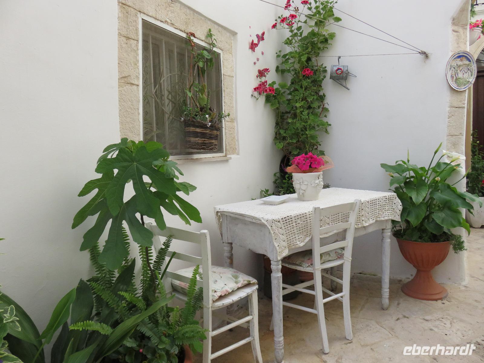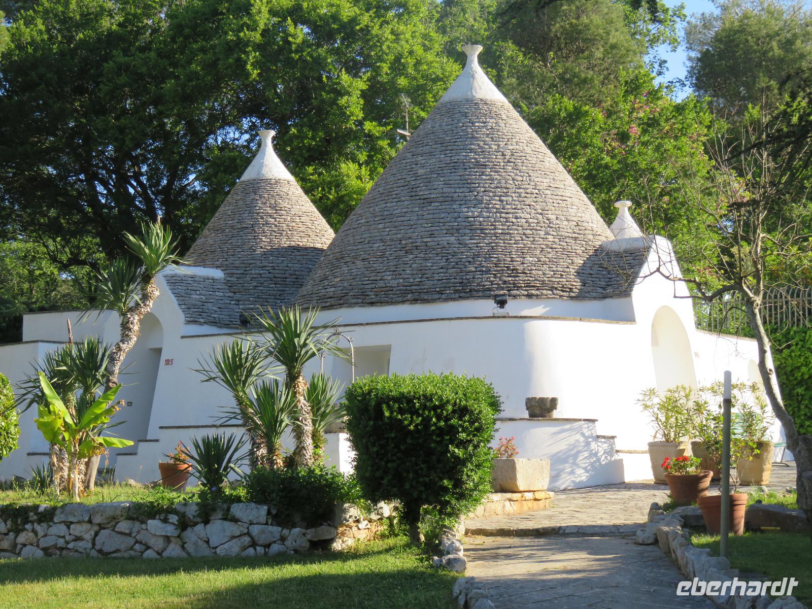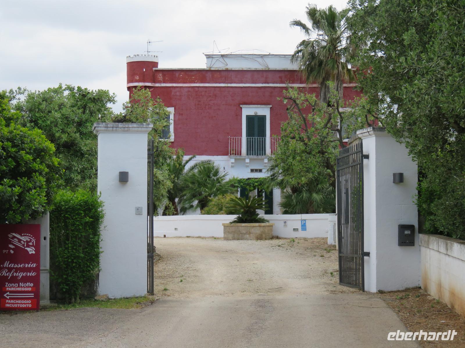 Aber reisen macht bekanntlich auch hungrig und der Service bei Air Berlin mit dem salzigen oder süßen Snack etwas spärlich ... so freuten wir uns auf unser erstes Abendessen im Hotel, heute als 3-Gang-Menü, natürlich mit Pasta, im zweiten Gang Schweinfleisch und als Dessert zum Abschluss ein köstliches, italienisches Eis. Danach bezogen wir unsere Zimmer und unser Zuhause für die nächsten sieben Nächte. Wir wohnten in einem der kleinen Häuser, die sich in einem Garten neben dem Haupthaus mit den Restaurants und der Bar befinden. Müde und neuigierig auf unsere Erlebnisse in Apulien träumten wir dem nächsten Morgen entgegen.