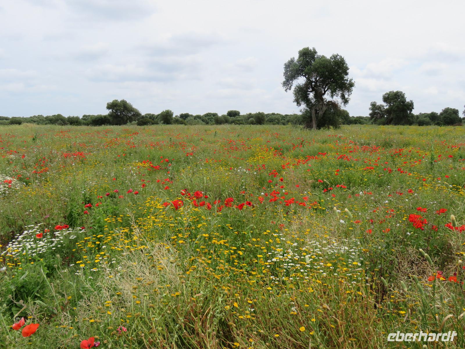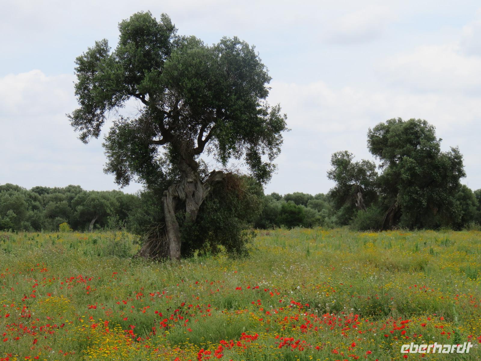 Auf dem Weg zum Mittagessen stoppten wir an einem Feld mit rot leuchtenden Mohnblumen und an einem Feld mit alten, knorrigen Olivenbäumen - willkommene Motive für unsere Fotofreunde.