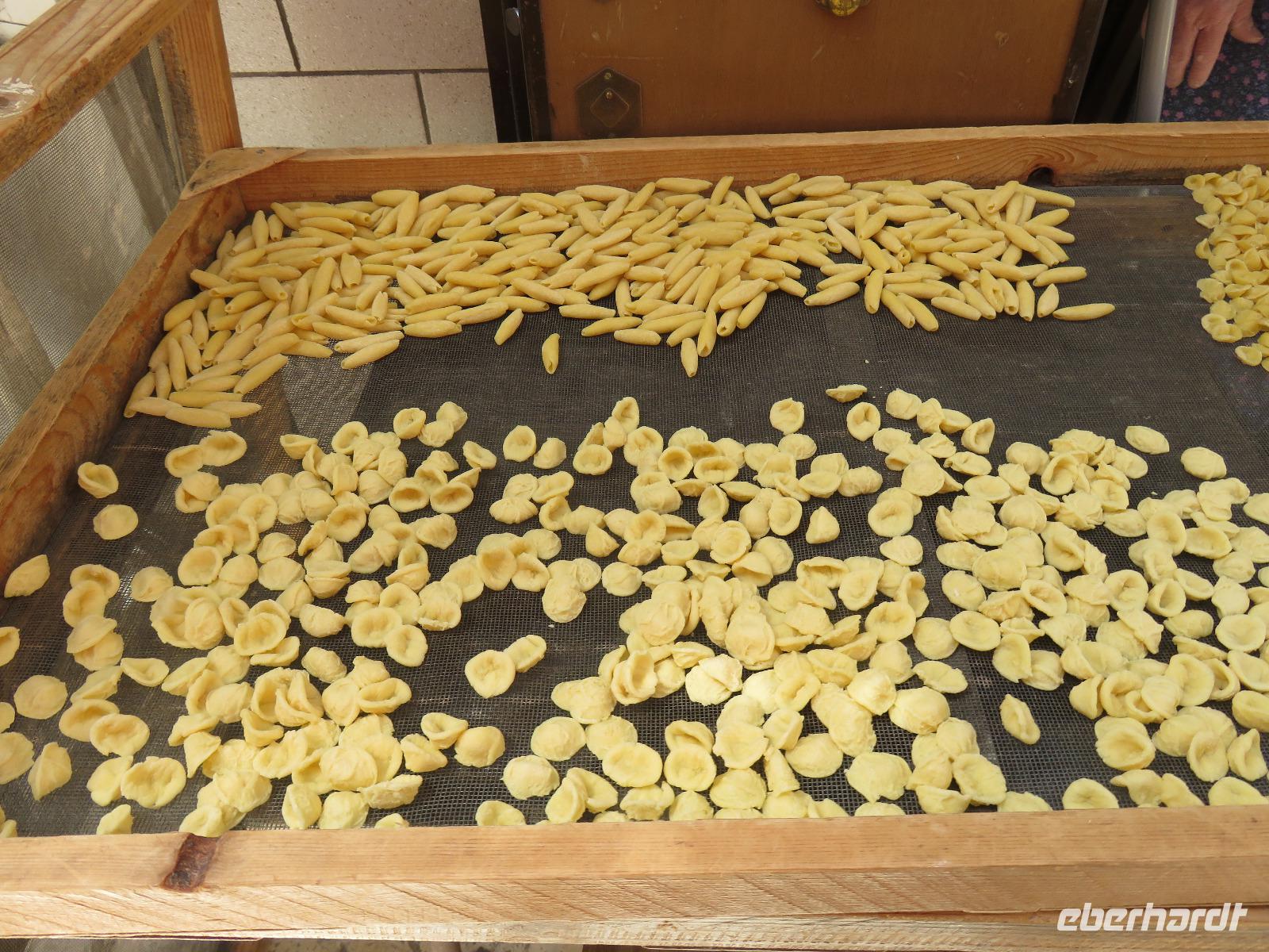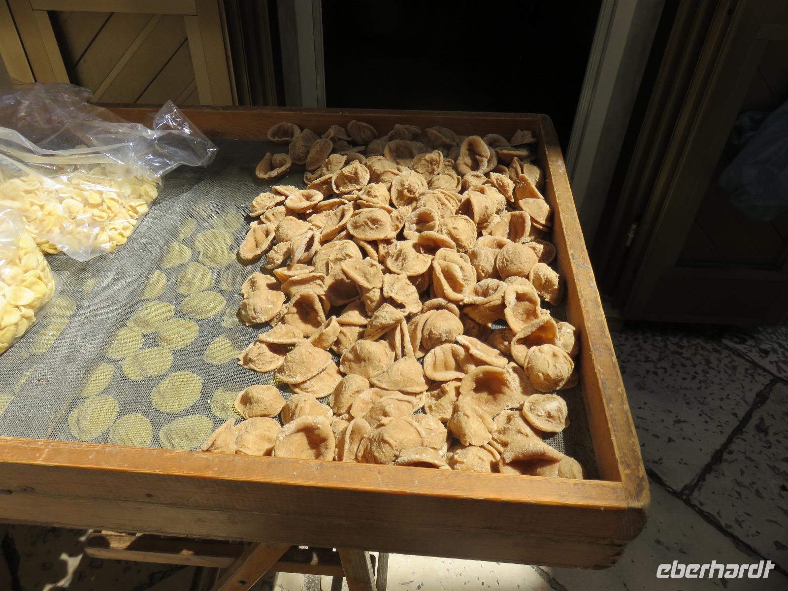 Mirella führte uns durch die berühmte Nudelgasse zur Kathedrale. Beim Blick zu den fleißigen Frauen in der Gasse bestaunten wir die Fingerfertigkeit. Abschneiden des Teiges und Formen der Öhrchennudeln waren eine Bewegung. Was hatten wir uns bei unserem Kochkurs gemüht!