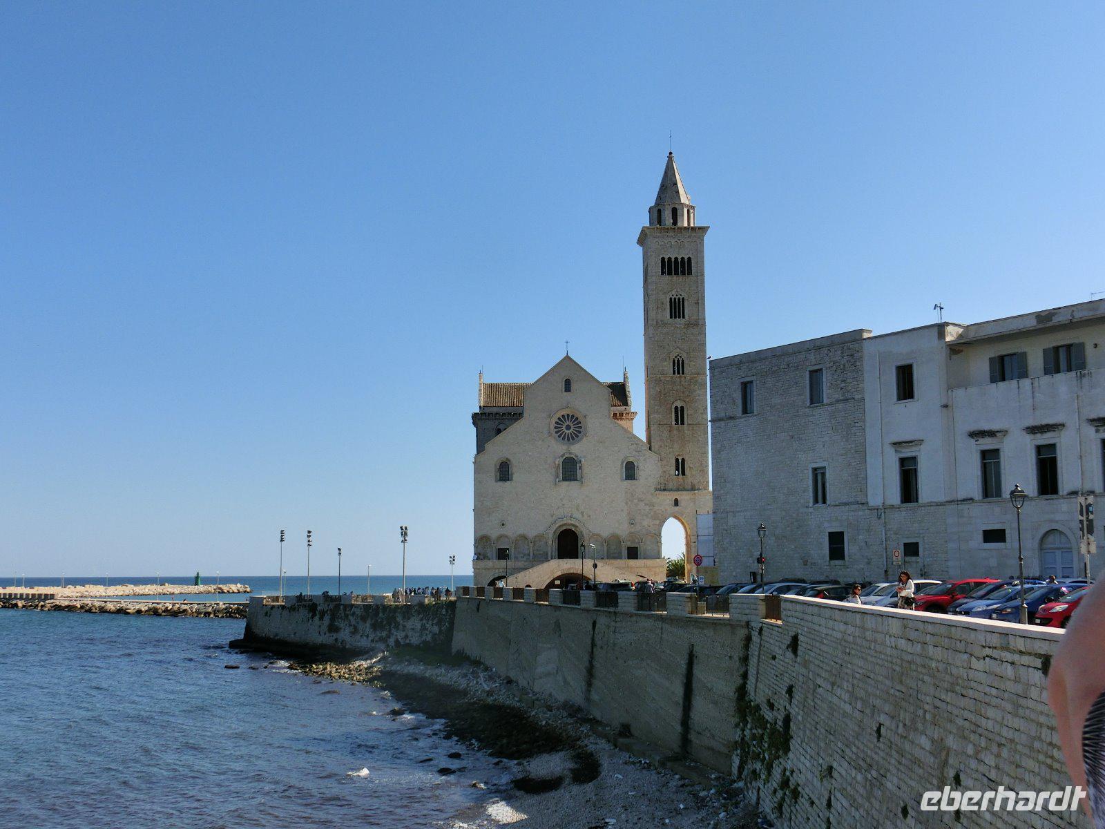 Kurs nach Norden, vorbei an Bari erreichen wir nach 2 h Trani. Wir haben eine fantastische Sicht zum Sporn des italienischen Stiefels, dem Gargano. Vorbei am Stauferkastell, die letzten 140 Jahre Gefängnis, gelangen wir zur Kathedrale und später zum Hafen. Dort unterbrechen wir für eine Mittagspause.