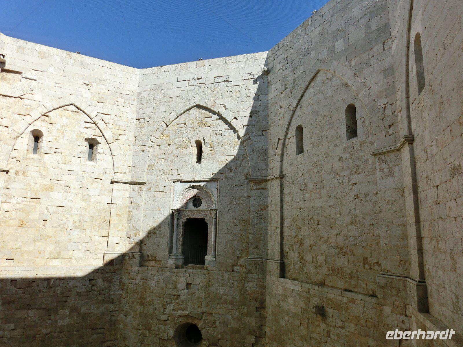 Danach fahren wir ins Landesinnere zum Castell del Monte. Umfangreiche Erklärungen zum Herrschergeschlecht der Staufer stimmen uns ein. Schon von Weitem ist das eigenwillige Castell auf einer Anhöhe zu sehen. Friedrich der II. - Enkel von Kaiser Barbarossa machte sich als Gelehrter und Wissenschaftler einen Namen. Sein berühmtes Falkenbuch basiert auf Beobachtungen, die er selbst machte. Während seiner Regentschaft als Kaiser von 1220 bis 1250 ließ er das Schloss in Form eines Achteckes erbauen. So manches Rätsel um den Bau scheint bis heute nicht gelöst.