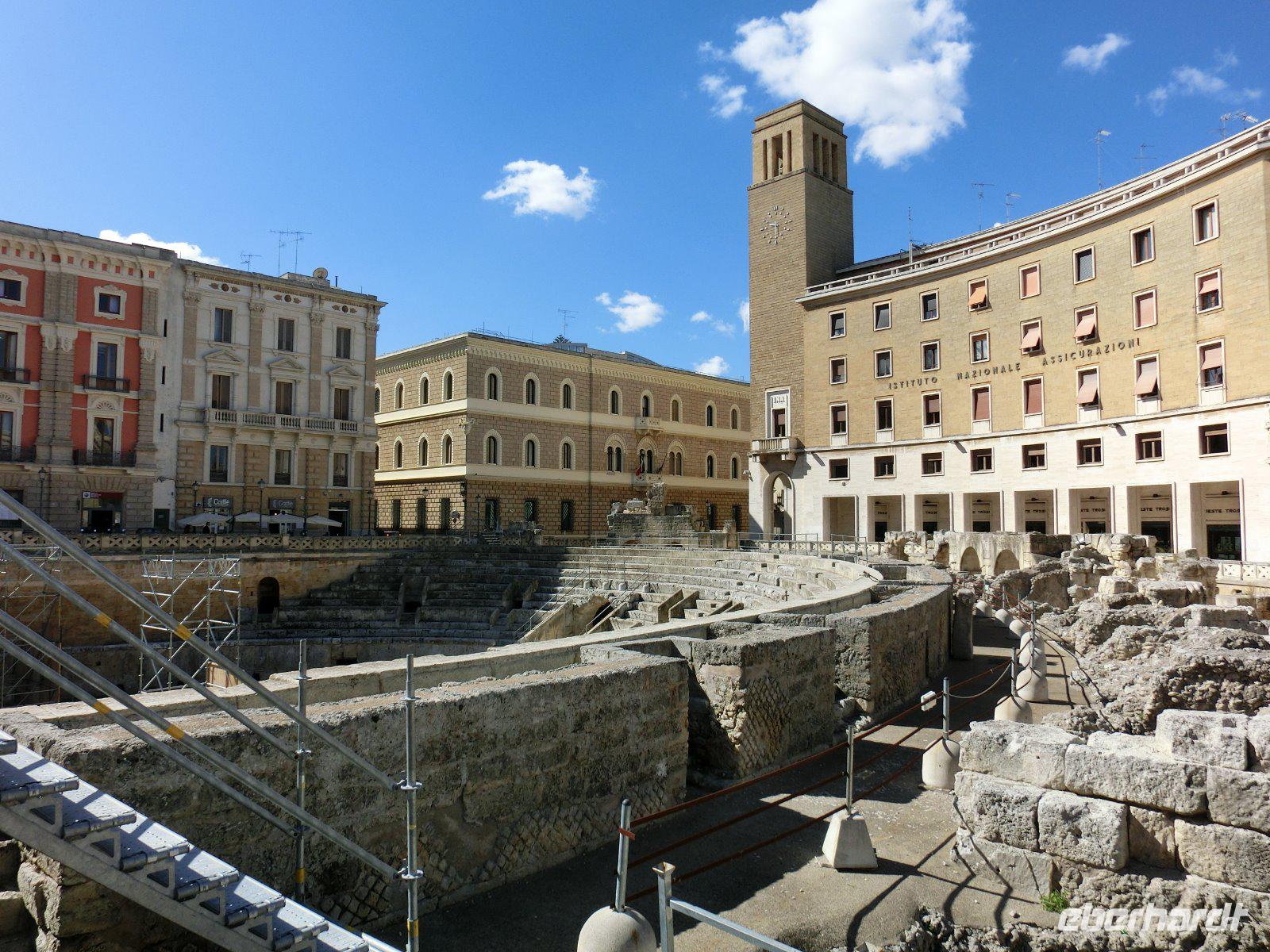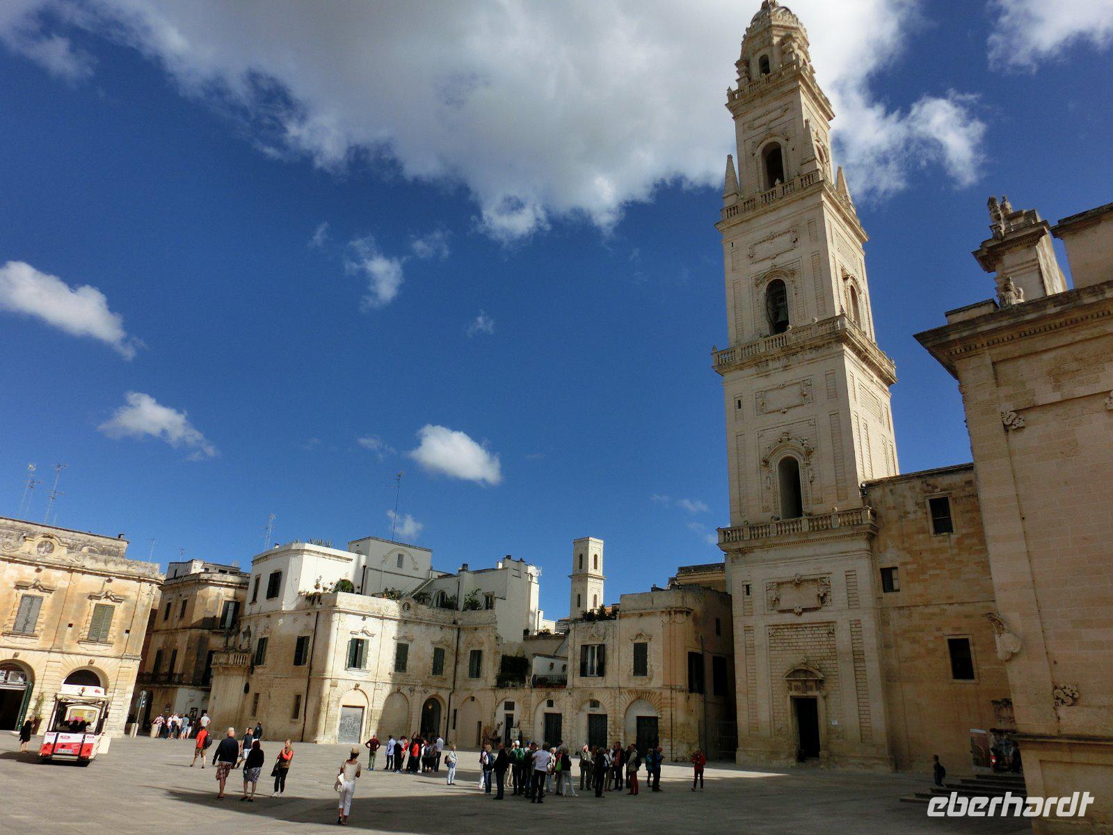 Wir schlendern durch die Gassen und bestaunen die Schätze barocker Architektur. Heiligenfiguren und Krippenfiguren werden hier aus Pappmachè gefertigt. Mittelpunkt des städtischen Lebens ist die Piazza Sant' Oronzo, wo wir einen Blick auf das römische Amphitheater aus dem 2. JH werfen. Alvino, das erste Caffè am Platz ist für die meisten Ruhepunkt zur Mittagspause.