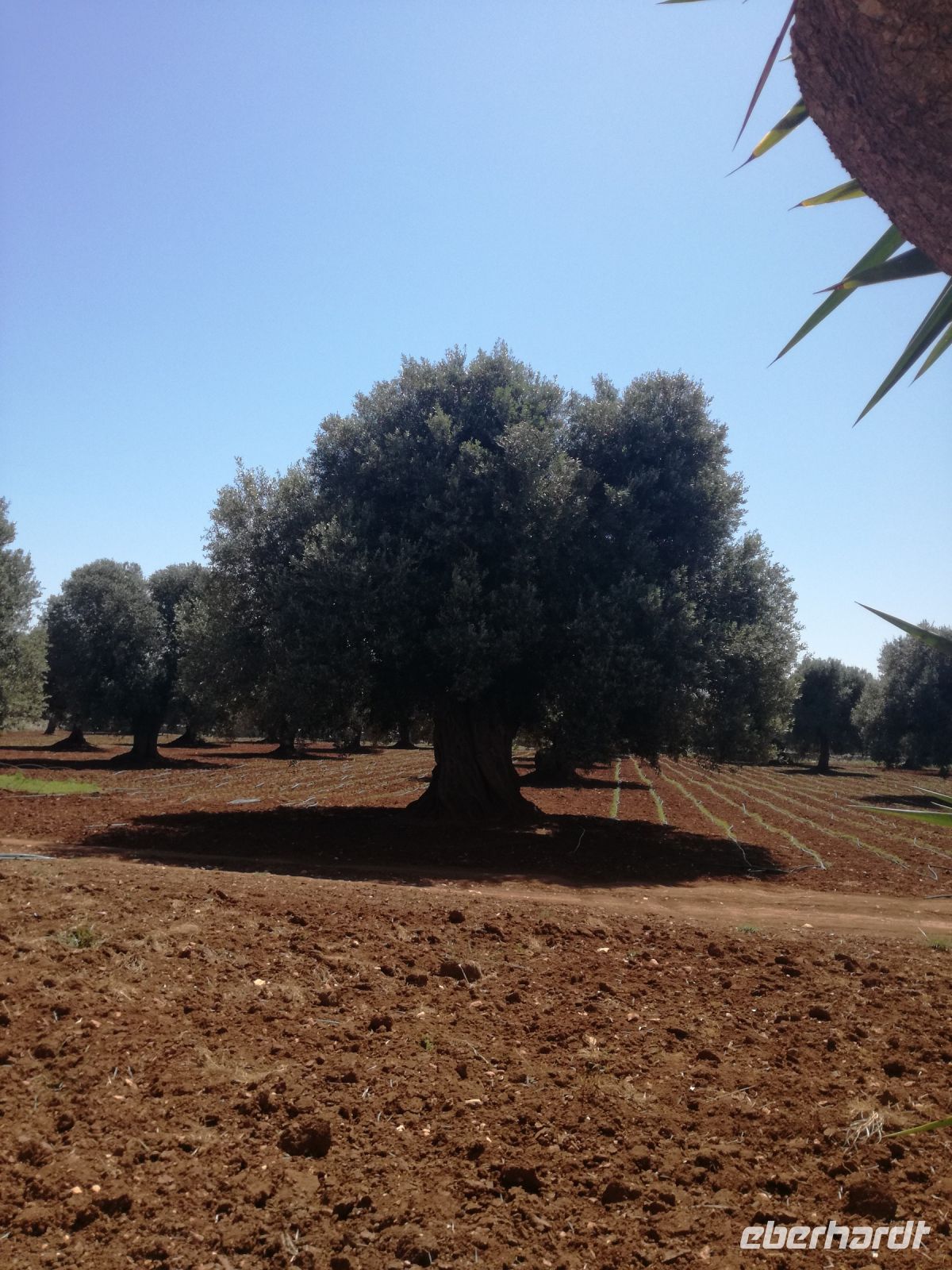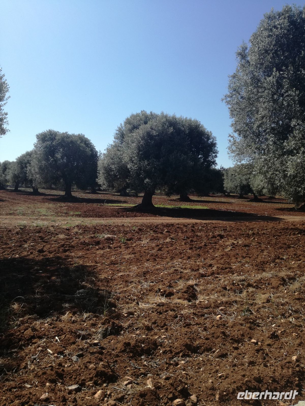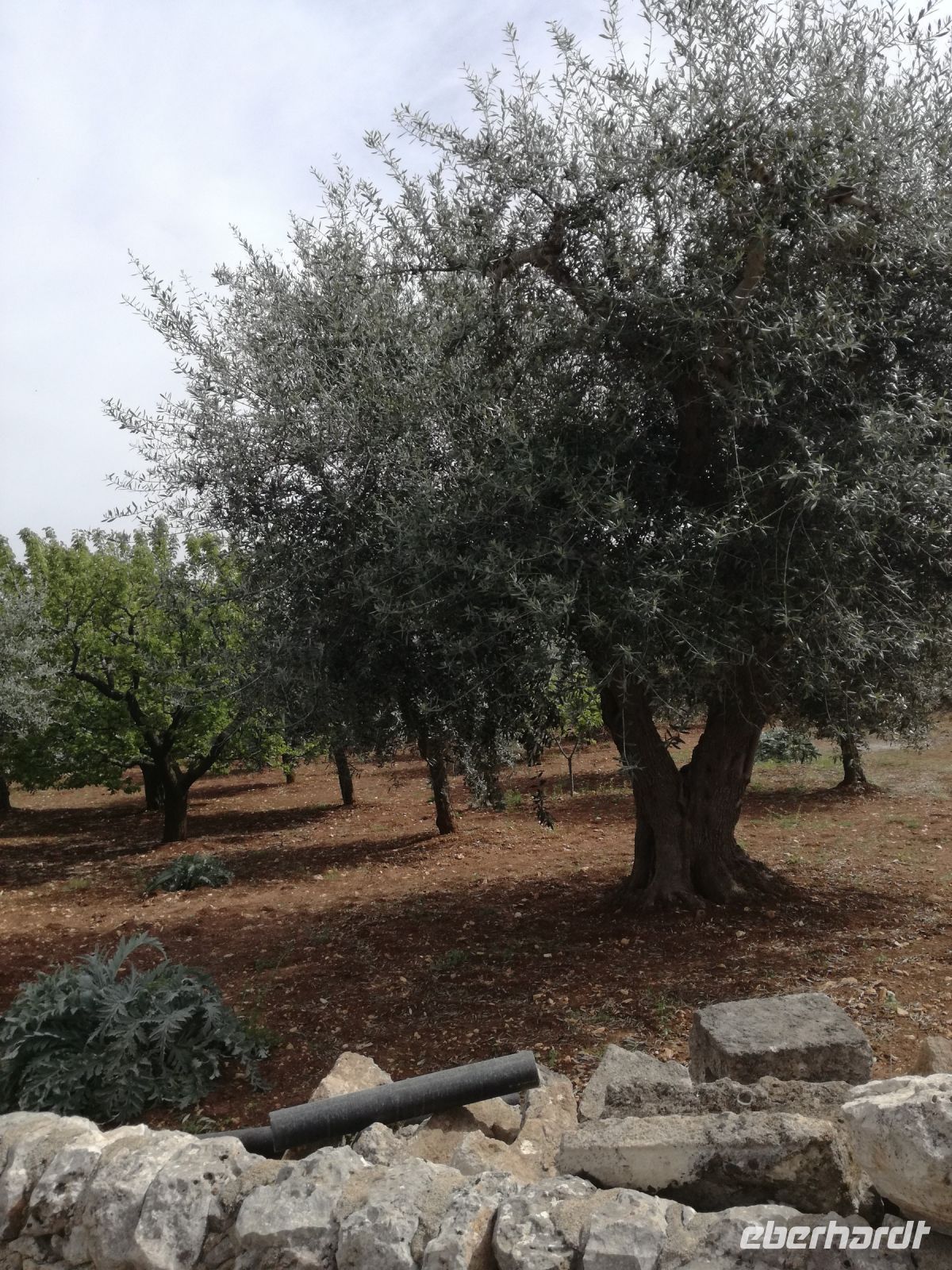 wir fahren am morgen in die Masseria und besichtigen die Ölmühle. Hier wird uns ausführlich die Herstellung des Olivenöls erklärt. Erstaunt sind wir, dass in Apulien die Oliven grundsätzlich mit Leitern am Baum geerntet werden. Es soll vermieden werden, dass die Oliven mit anderen Stoffen auf dem Boden in Kontakt kommen und die Qualität geschmälert wird. Später bekommen wir eine Kostprobe der verschiedenen Ölsorten und erfahren, dass nicht die Farbe des Öls, sondern der Geschmack entscheidet. Die Sorten sind so vielfältig, Nuss... Orange..., Zitrone... Zwiebel.... und im Verkaufsraum werden wir für Mitbringsel fündig.