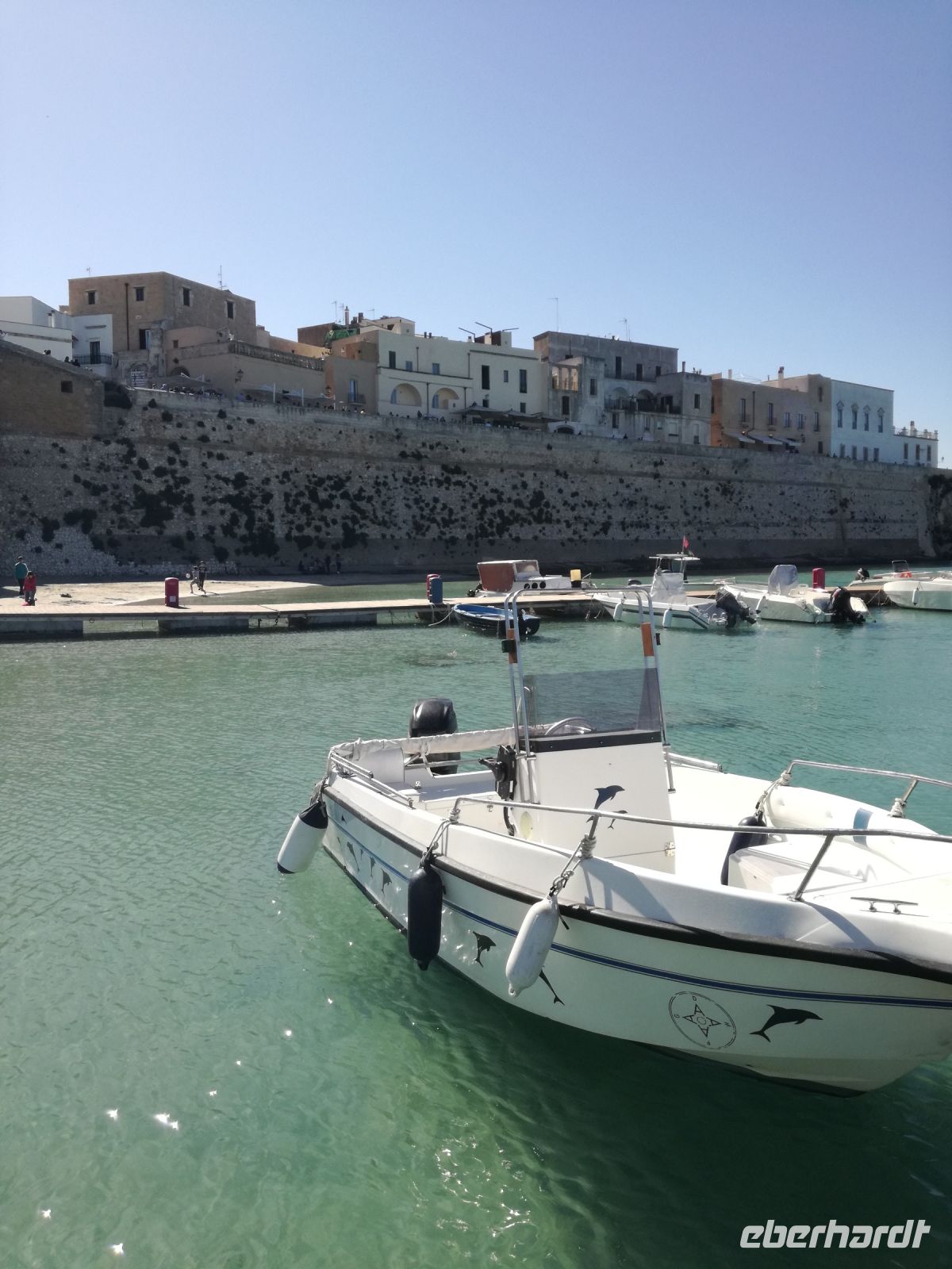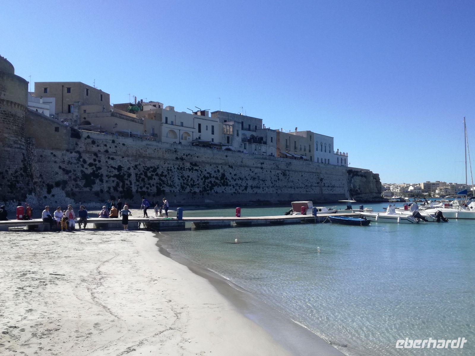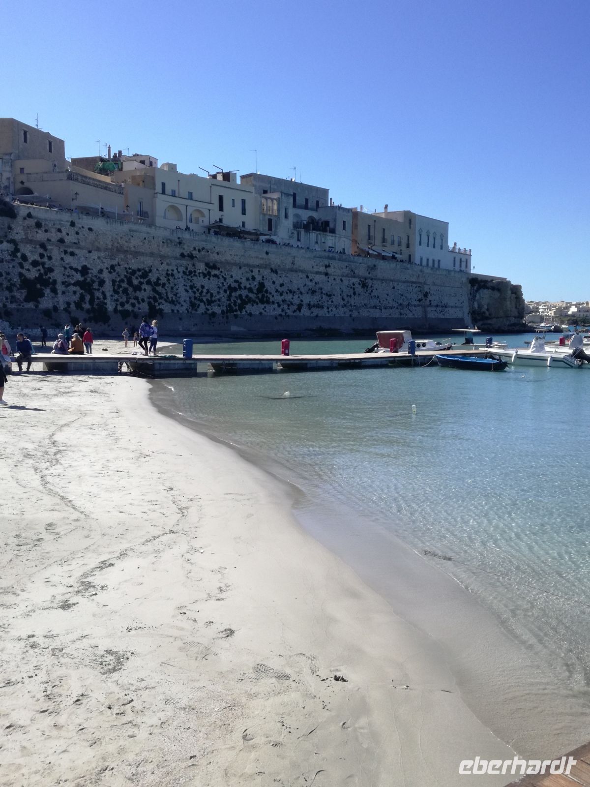 Weiter geht es in die Hafenstadt Otranto, die an der Meerenge zu Albanien liegt, am südlichsten Zipfel. Otranto thront auf einem Fels, neben einer gut erhaltenen Stadtmauer. Das Wasser ist himmelblau und der Hafen mit seinen vielen Booten und kleinen Restaurants urig. Es ist Nationalfeiertag und die Apulianer sind draußen und feiern.