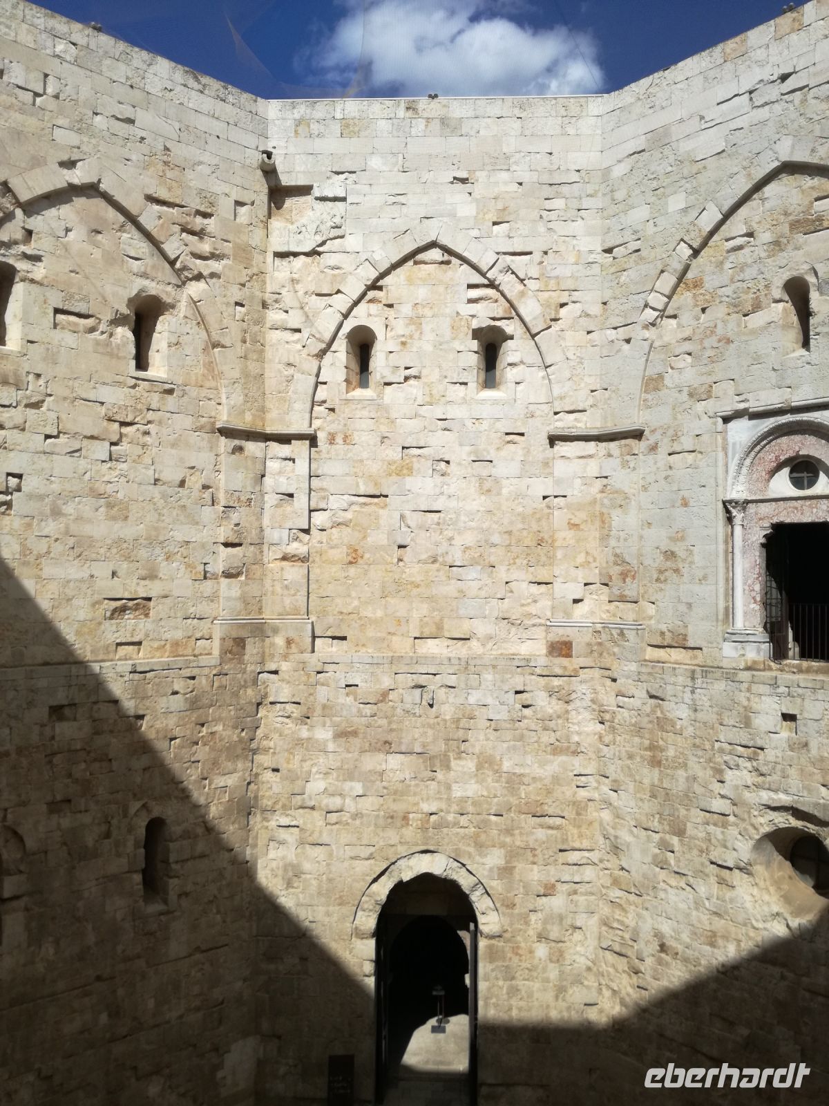 Am Nachmittag besichtigen wir das Castel del Monte, ein beeindruckendes Bauwerk aus dem Mittelalter, Friedrich, der II. ließ es bauen. Die achteckige Form auf achteckigem Grundriss macht es zu einer der schönsten Bauten. So interessant auch die Innenräume und die dazugehörige Geschichte sind, seine ganze Pracht entfaltet das Castel vor allem aus der Ferne betrachtet. Majestätisch und dominant liegt es auf einem kleinen Hügel und zieht uns in seinen Bann.