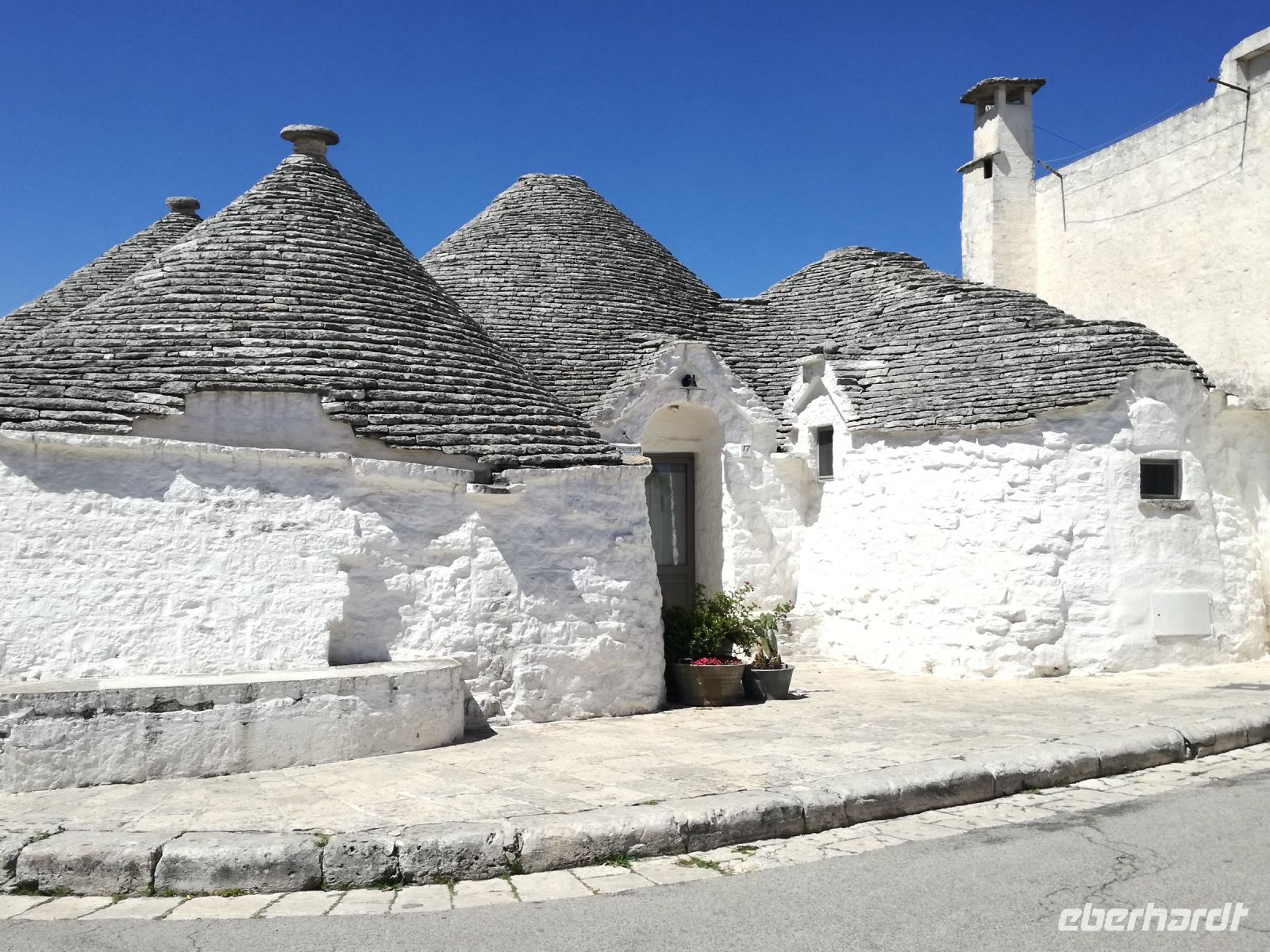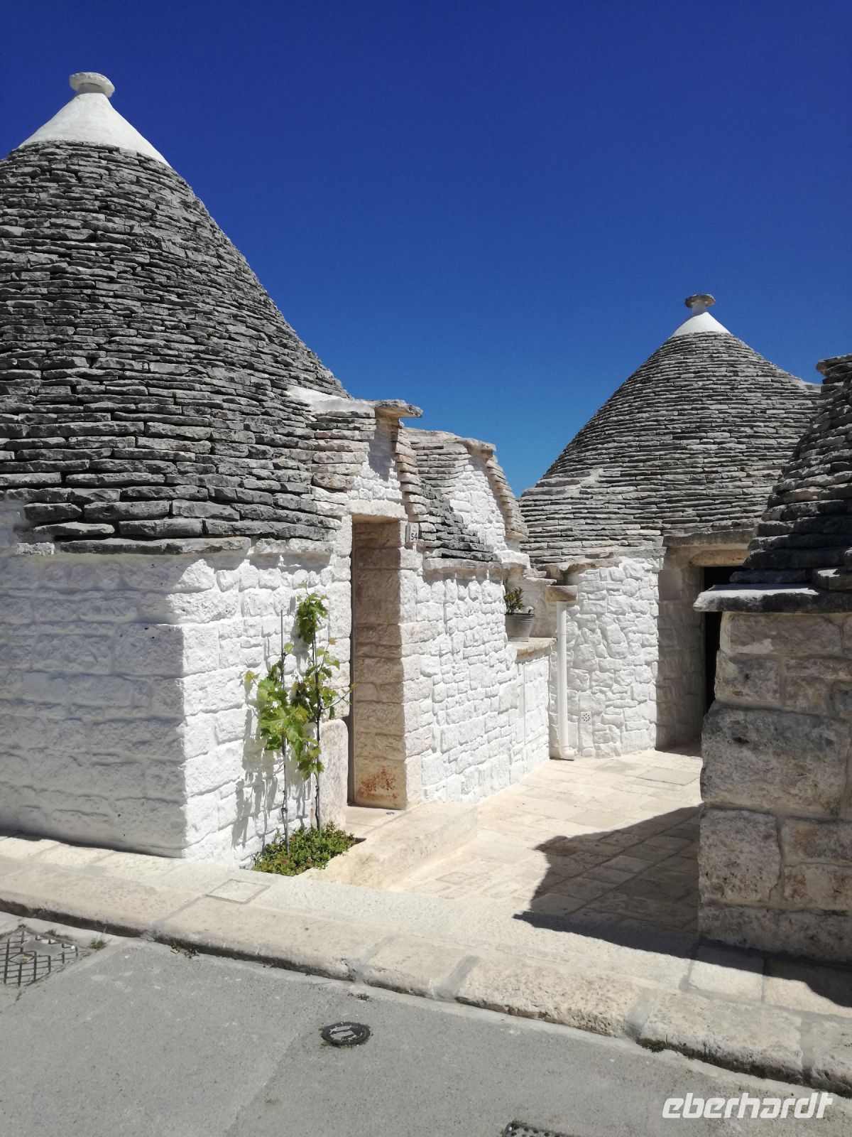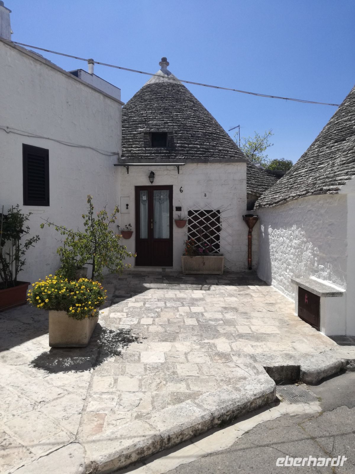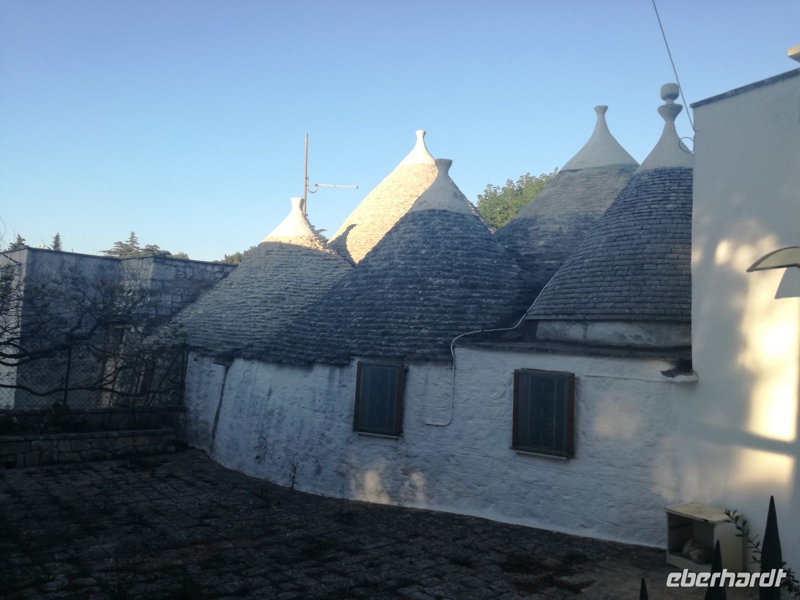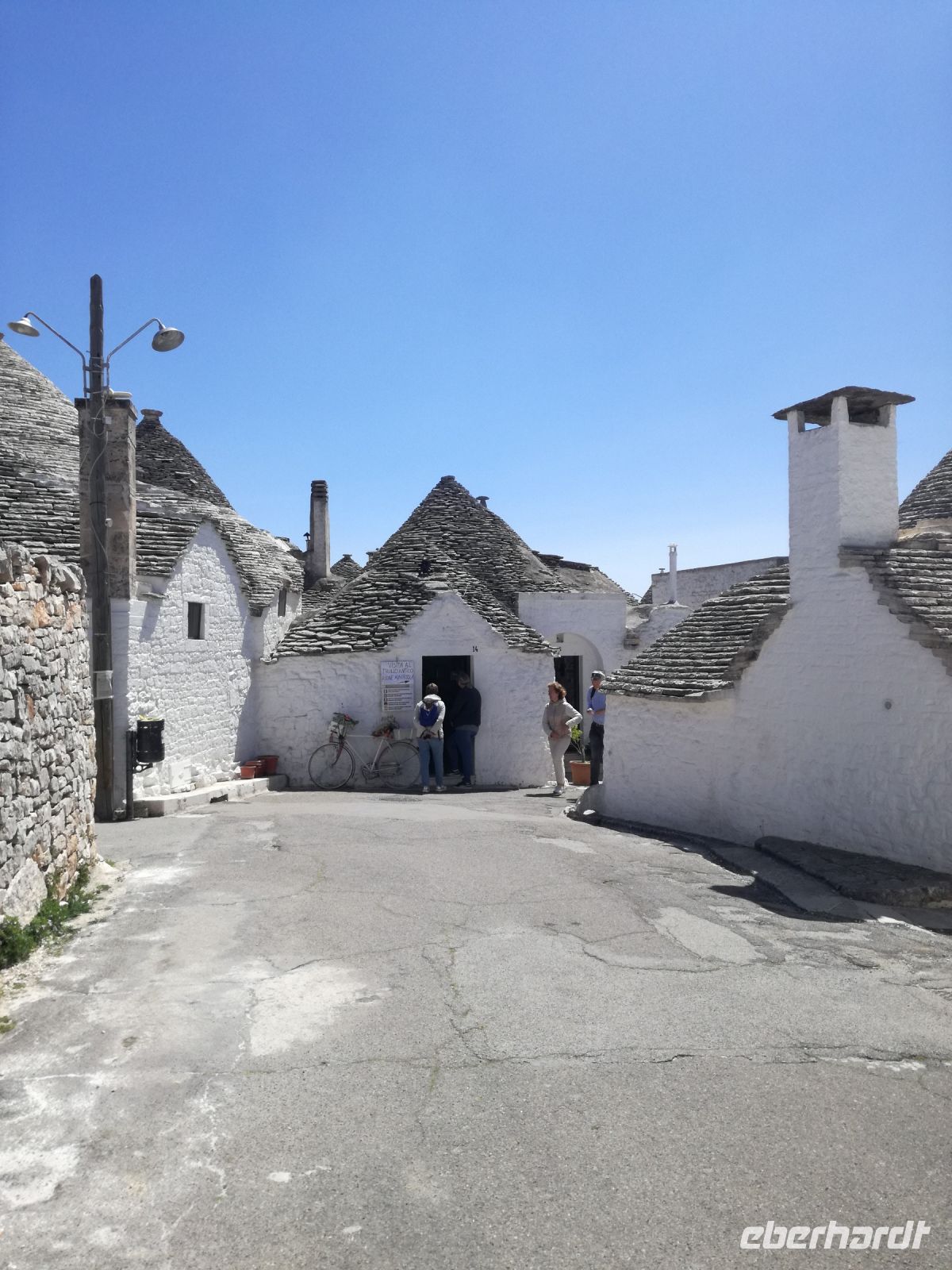 Am Nachmittag geht es nach Alberobello in die Stadt der Trullihäuser. Die meist weißen Rundhäuser (Einzahl: Trullo) mit ihren grauen Kegeldächern werden auch als lustige Zipfelmützen wahrgenommen und sind schon ein Wahrzeichen Apuliens. Alberobello gehört seit 1990 zum UNESCO-Welterbe. Die Stadt teilt sich in eine Altstadt mit 400 Trullihäusern (Viertel Monti) und den moderneren Teil mit 1000 Trullihäusern(Aia Piccola).