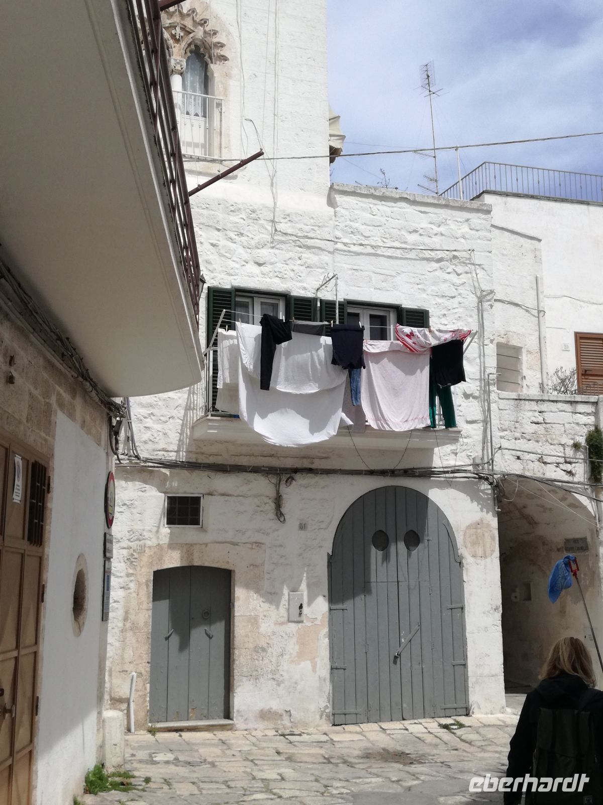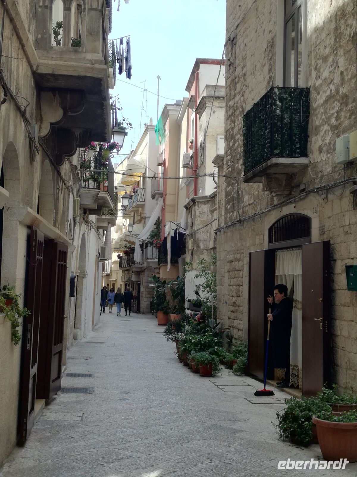 Mirella führt uns am Nachmittag in ihre Stadt, nach Bari. Es sind wirklich Städte der Superlative. Obwohl Bari ganz anders ist als Matera, strahlt sie unheimlich Leben aus. Immerhin hat Bari 320.000 Einwohner. Charakteristisch ist die Altstadt mit ihren vielen bewohnten Gassen, den vielen Wäscheleinen und dem Leben auf der Straße.