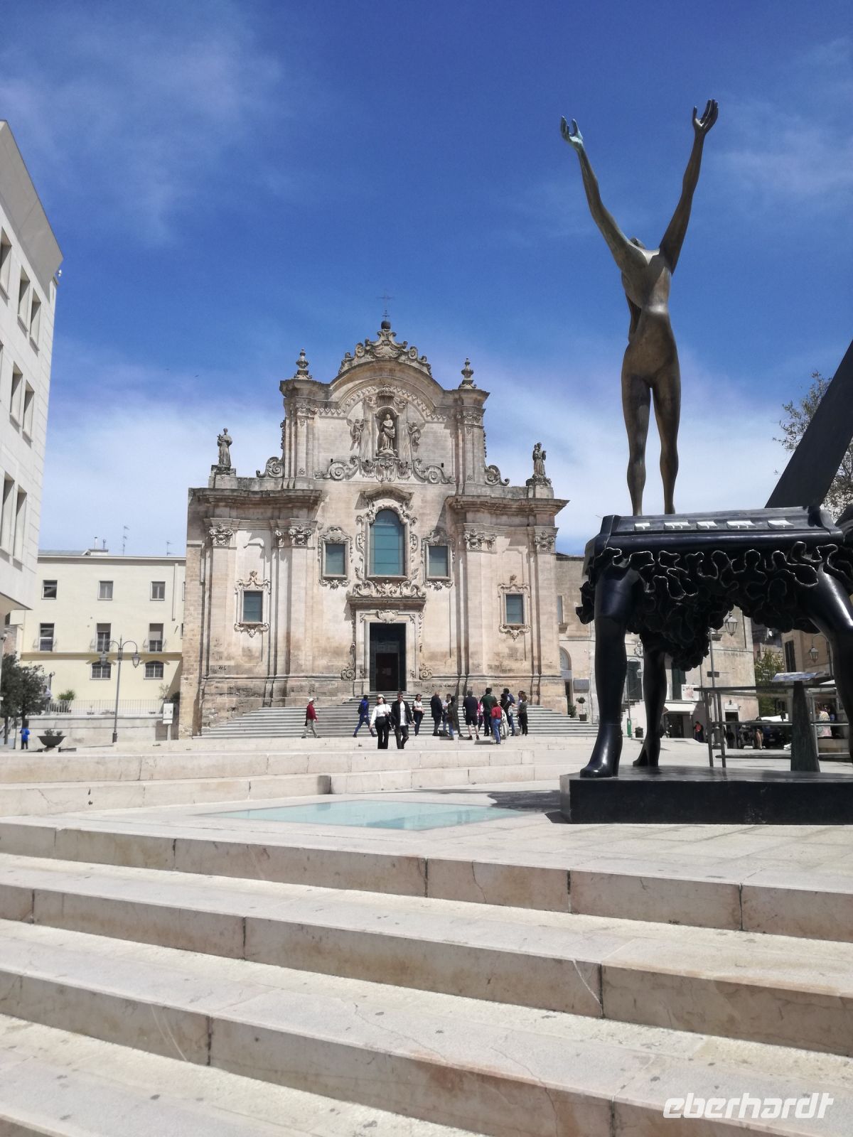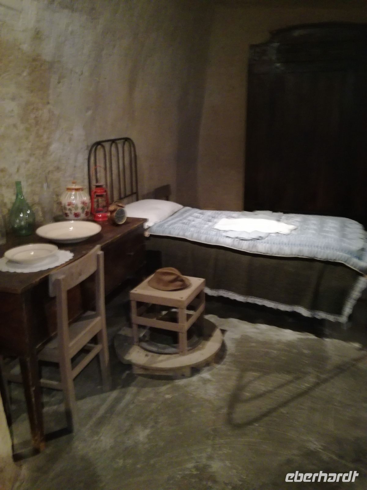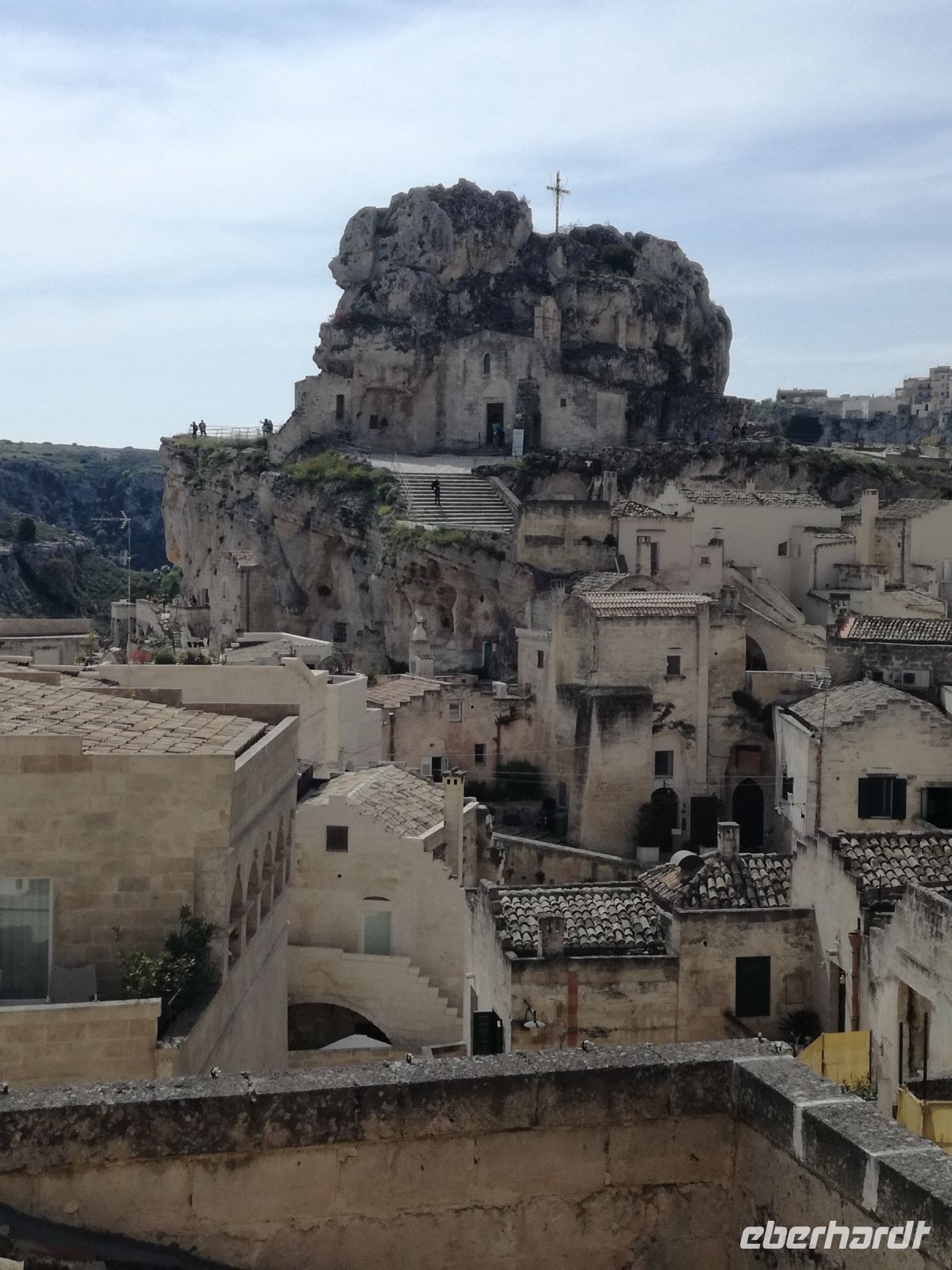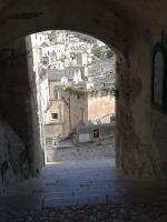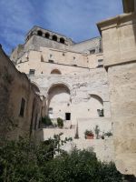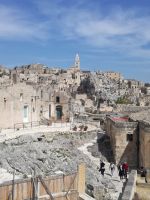 Matera ist Schauplatz vieler Filme, so des Films "Die Passion Christi" mit Mel Gibson im Jahre 2004. Die Stadt ist derart verschachtelt und hat kaum etwas Geradliniges, man fühlt sich sofort ins Mittelalter zurück versetzt. Wir laufen einige Wege entlang des "Kreuzwegs von Jesus Christus". Natürlich besichtigen wir auch eine Höhlenwohnung mit immerhin 4 Räumen und die Höhlenkirche.