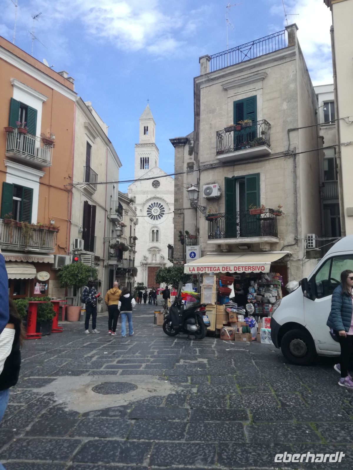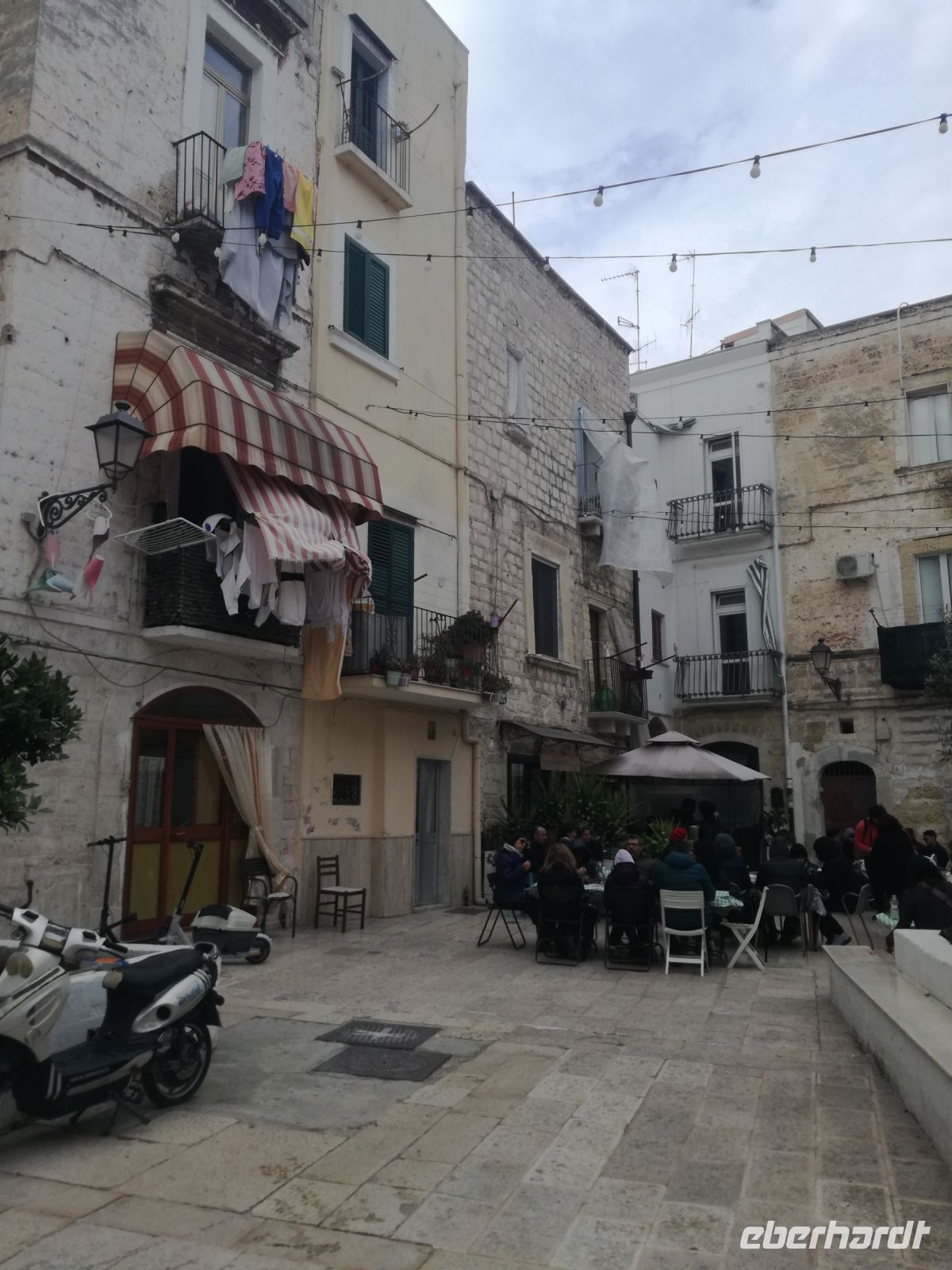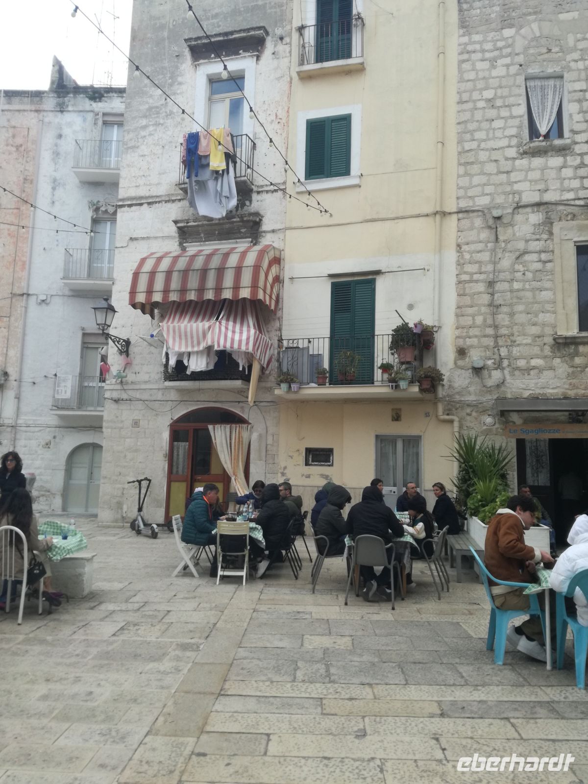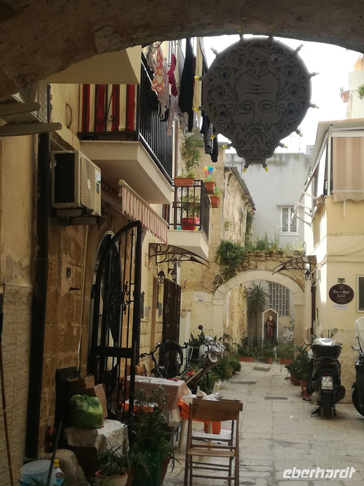 Im mittlerweile quirligen Matera machen wir unsere Mittagspause. Es gibt so schöne Plätzchen hier rund um die Piazza und die Sonne strahlt ausnahmsweise mal mit uns um die Wette. Erholt und gestärkt starten wir nach Bari. Bari ist mit 325.000 Einwohnern die Hauptstadt Apuliens. Reizvoll sind die verwinkelten Gassen, auch die berühmte Nudelgasse werden wir sehen, vor allem aber prägen unzählige Wäscheleinen in den engen Gassen das Stadtbild. Die Altstadt ist einfach fantastisch. Baris größte Sehenswürdigkeit ist zweifelsohne die Basilika San Nicola. Pilger aus ganz Europa besuchen in der Krypta der Kirche das Grab des heiligen Nicolaus.