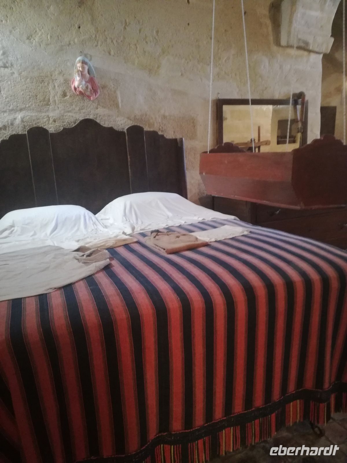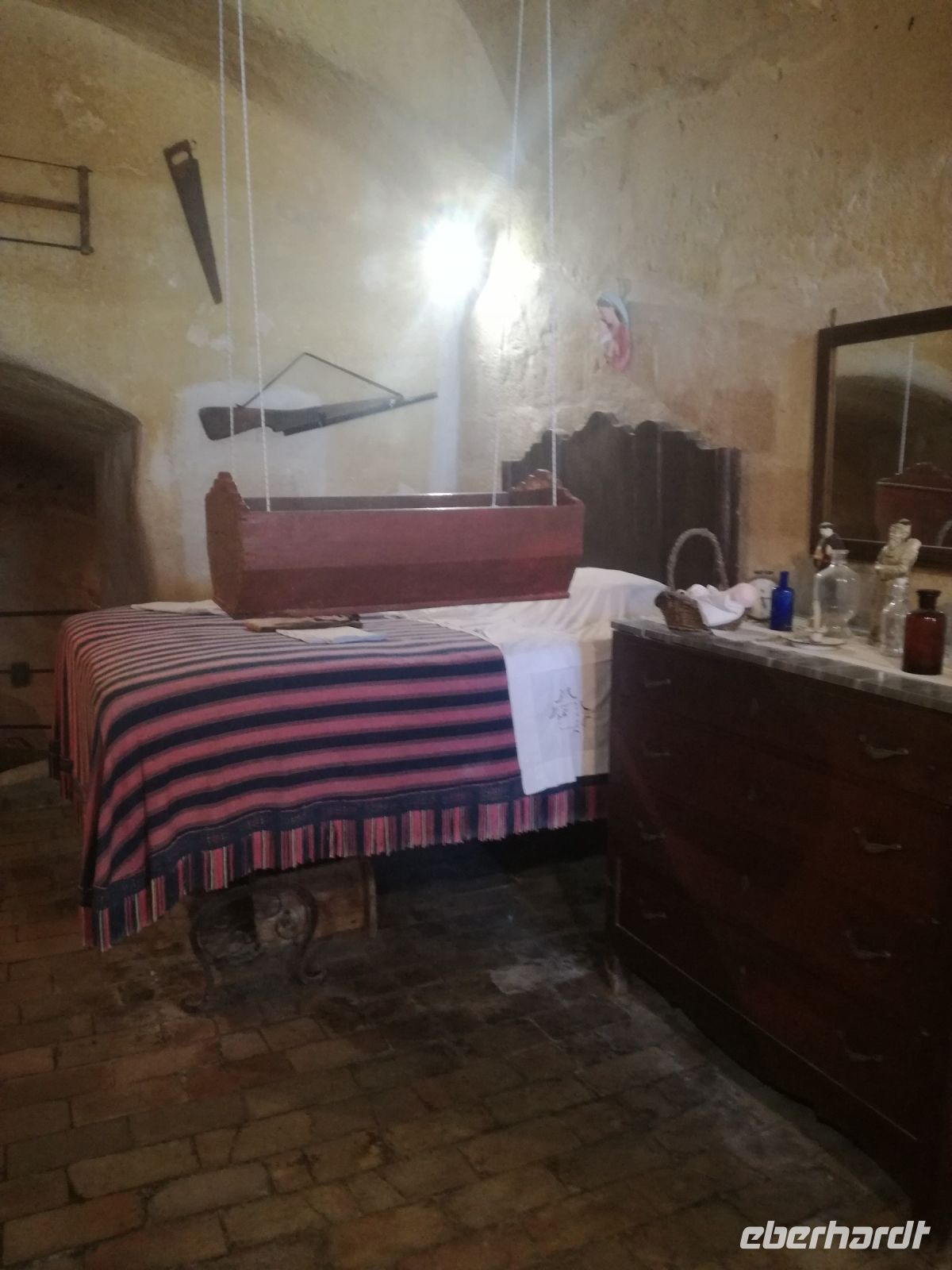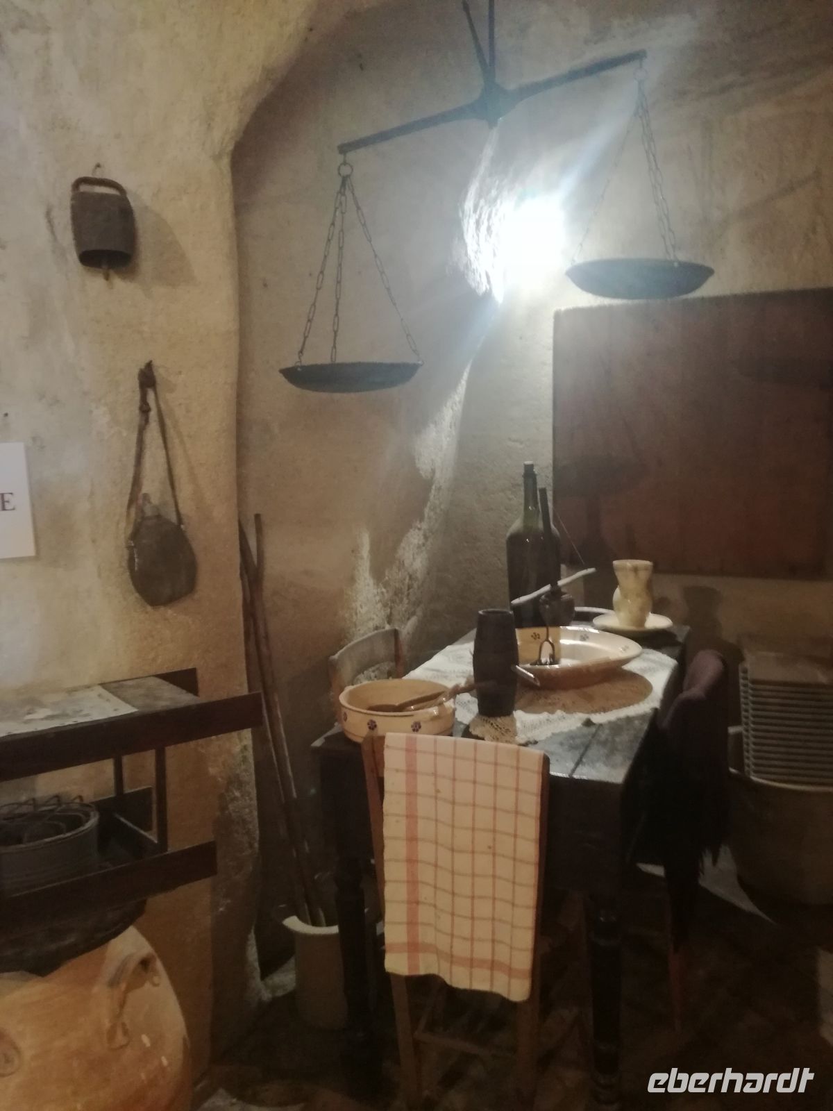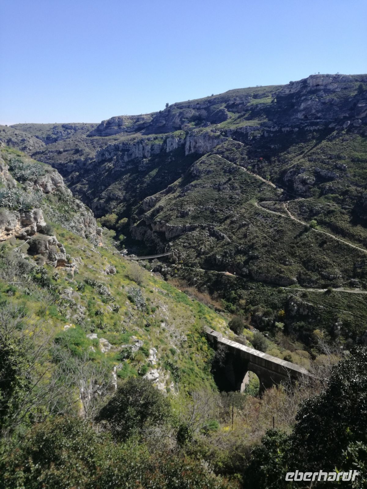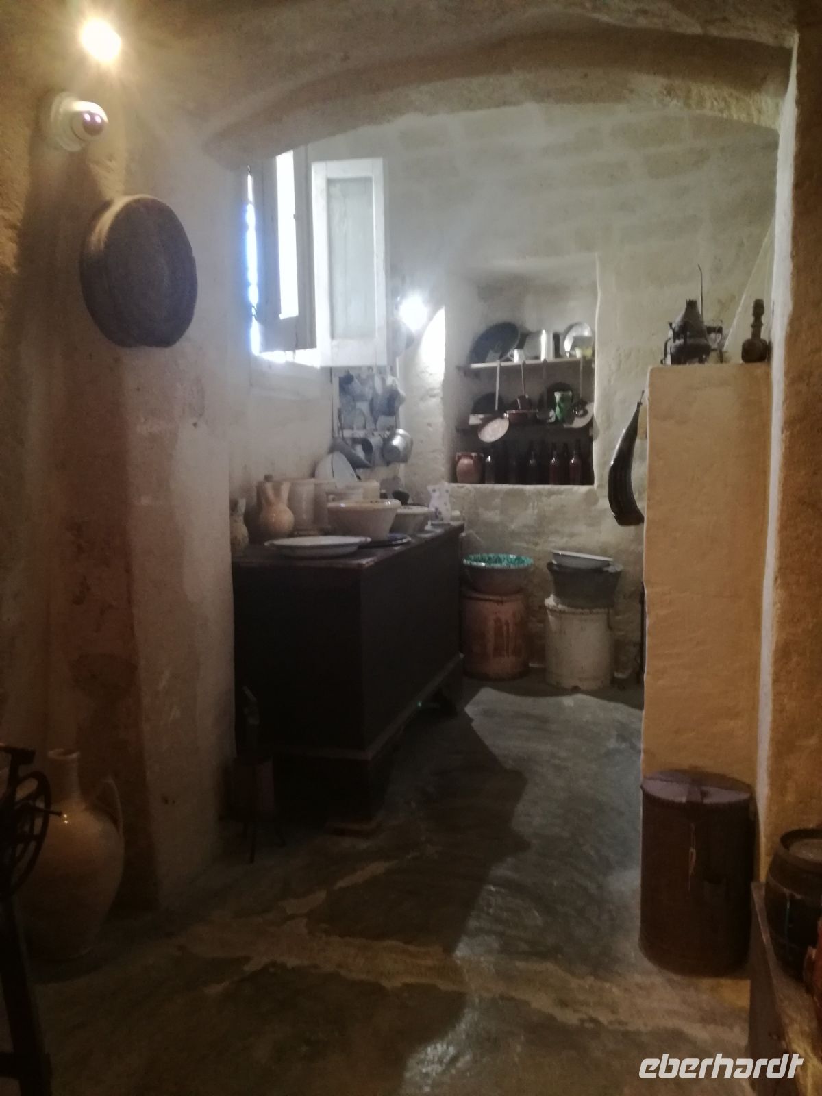 Vielleicht der Höhepunkt der Reise ? Für mich auf alle Fälle. Nach einer Stunde Fahrt und vielen Erklärungen von Mirella zu dieser geschichtsträchtigen Stadt erreichen wir Matera, 2019 zur Kulturhauptstadt ernannt. Überwältigend ist das Panorama dieser Stadt von verschiedenen Plattformen aus. Man muss sie in ihrer Größe und Schönheit erfassen, mit ihren verschachtelten Häusern mutet sie ein bißchen wie eine Spielzeugstadt an. Matera ist Kulisse zahlreicher Spielfilme, wie dem 2004 von Mel Gibson gedrehten Film „Die Passion Christi“. Entlang diesem Weg erreichen wir quer durch die Stadt die Sassi. So werden die Höhlenwohnungen der einst ansässigen Bevölkerung genannt. Anfang des 19. Jahrhunderts erlangte die Stadt noch einmal tragischen Ruhm, nachdem der italienische Arzt Carlo Levi die Zustände in den Sassi anprangerte. Diese hat er in seinem Buch "Christus kam nur bis Eboli" niedergeschrieben. Noch um 1950 lebten in den Sassi Menschen unter unwürdigen und vor allem unhygienischen Verhältnissen, was schließlich die Beschlagnahmung der Höhlenwohnungen 1952 zur Folge hatte. Matera war der Schandfleck Italiens und die unhaltbaren Zustände das Resultat der Vernachlässigung des Südens. Die Menschen wurden schließlich umgesiedelt.