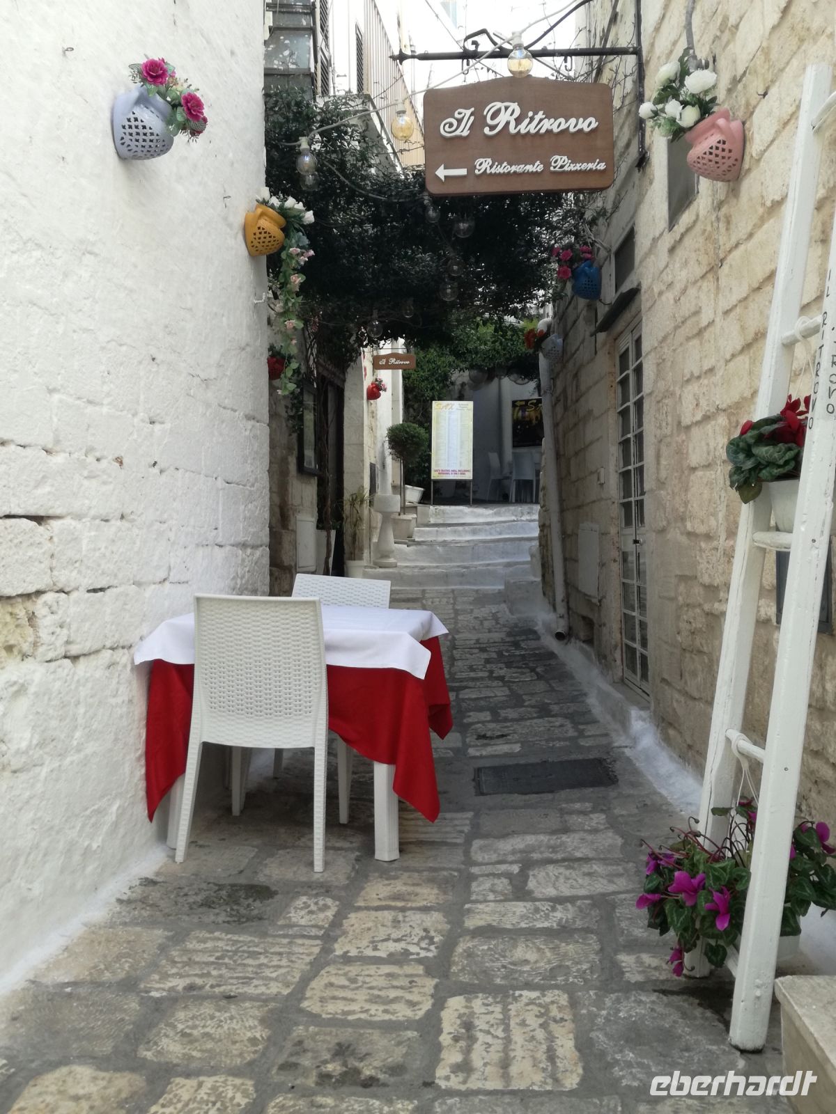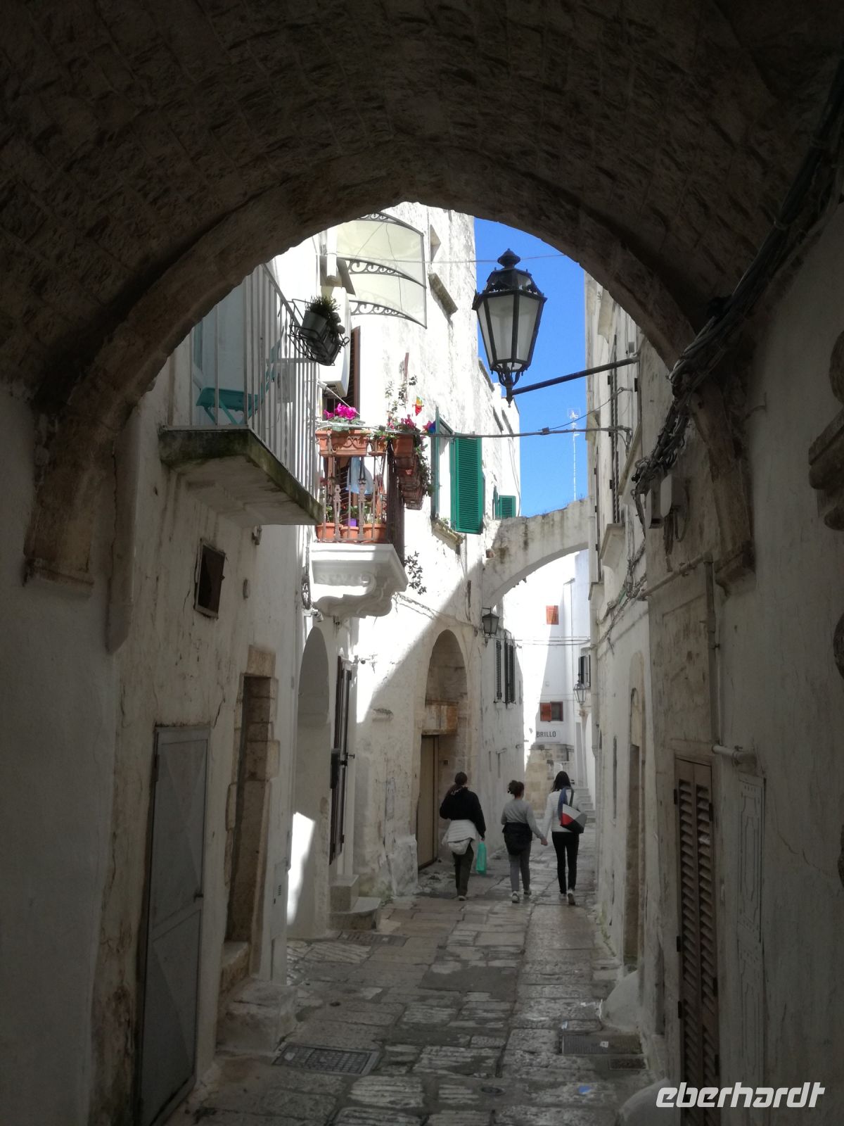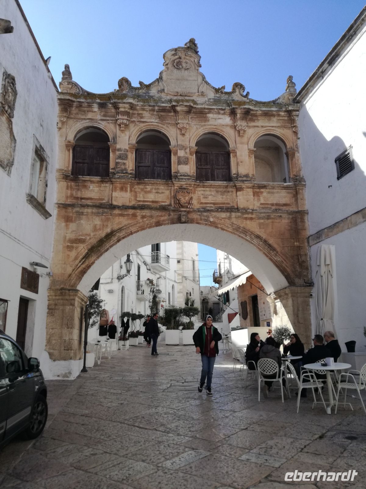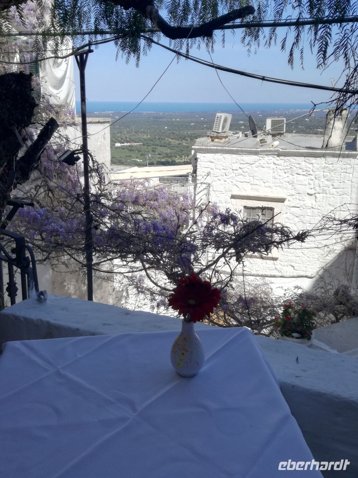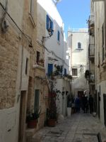 Ostuni steht am Nachmittag auf dem Programm, die weiße Stadt, die auf einem Hügel thront und auch „Stadt der Liebe“ genannt wird. Sie ist tatsächlich lieblich, ganz in weiß gehalten (was Vorschrift ist). Auffällig sind die vielen Torbögen, die die Häuser stützen. Man biegt um die Ecke und wird mit lauschigen Plätzen und traumhaften Fotomotiven belohnt. Abends kehren wir in einem Restaurant in Ostuni ein. Naja, mit der Masseria vor einigen Tagen hält der Vergleich nicht stand. Dennoch geht wieder ein ereignisreicher Tag und auch sonniger Tag für uns zu Ende.