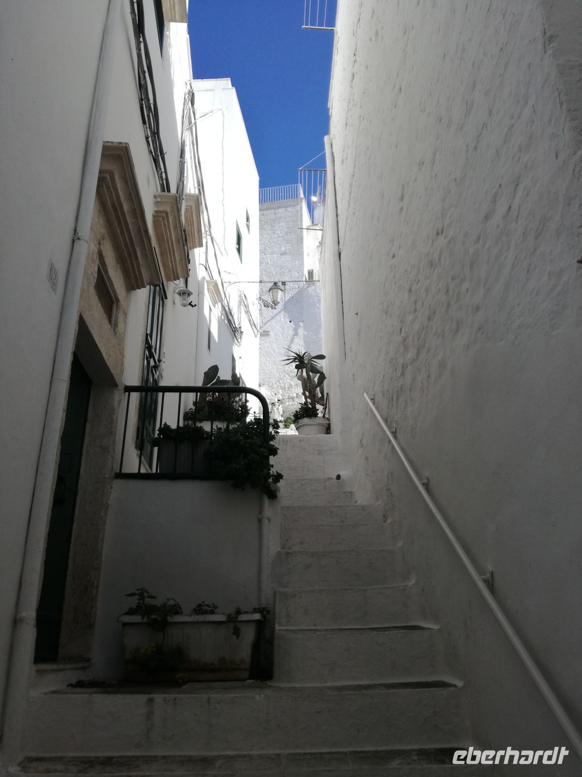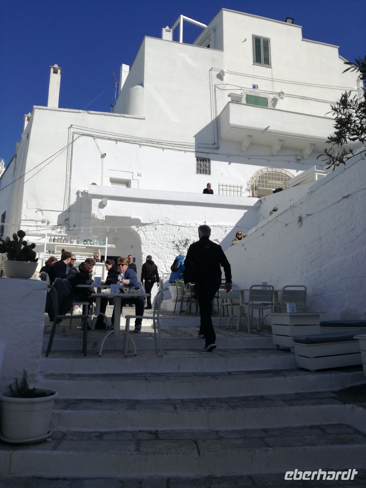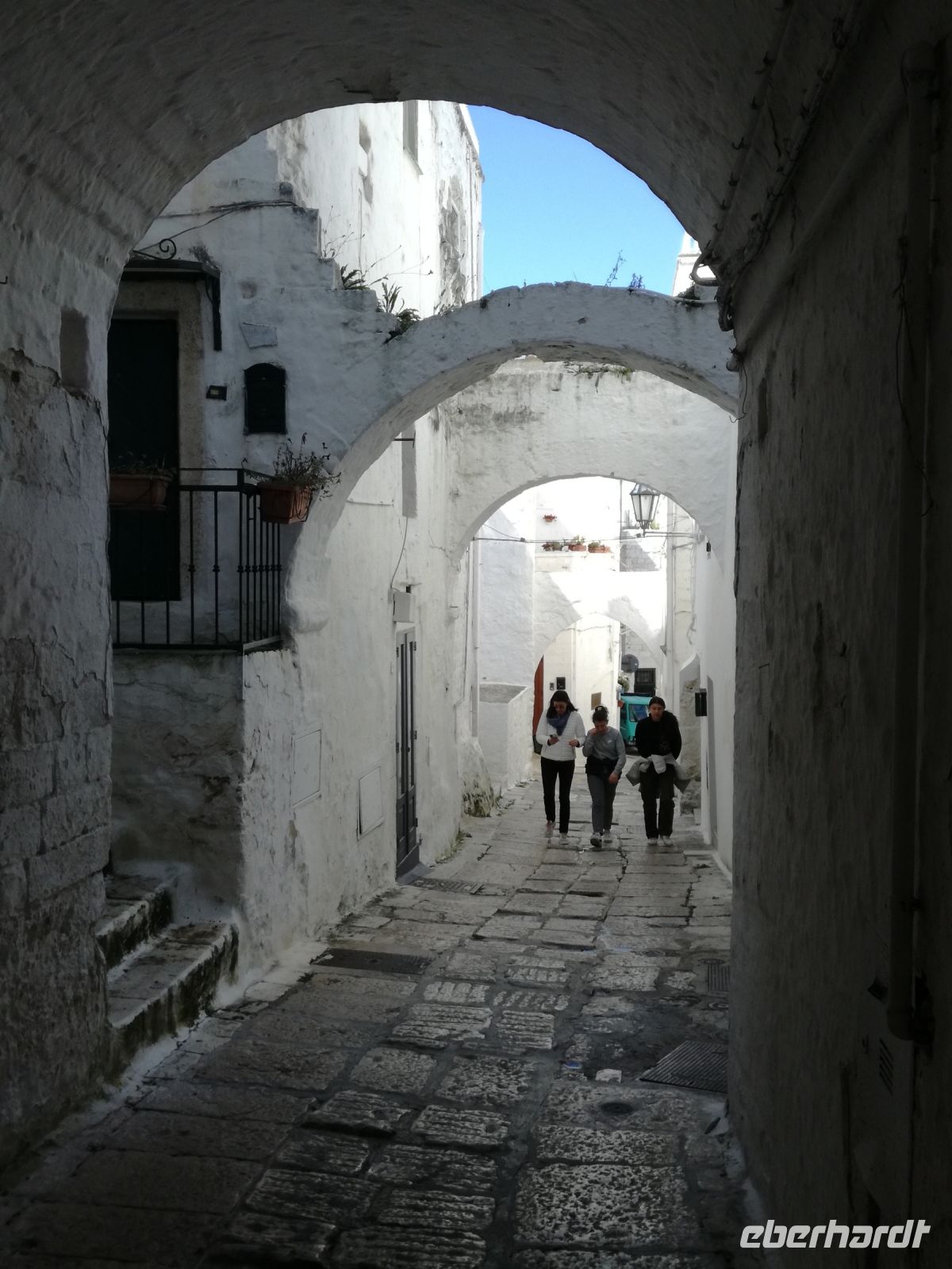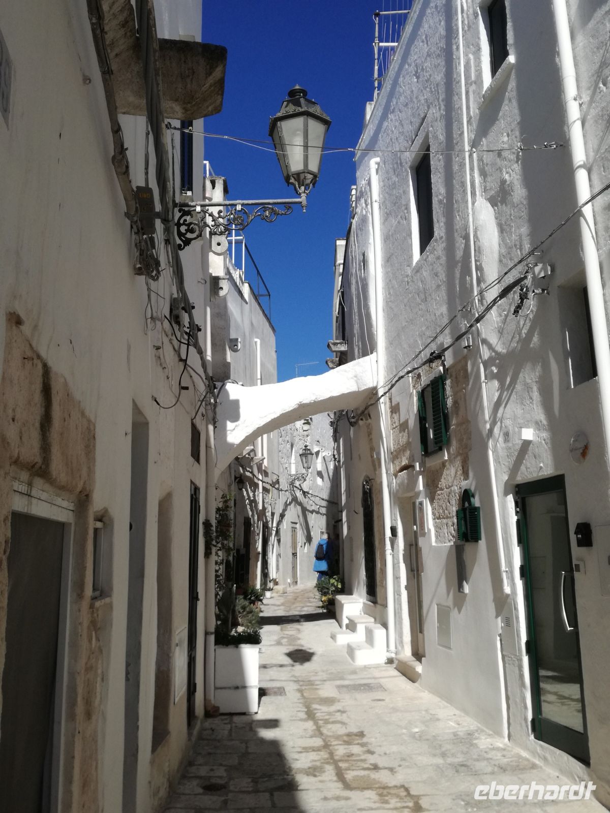 Ostuni steht am Nachmittag auf dem Programm, die weiße Stadt, die auf einem Hügel thront und auch „Stadt der Liebe“ genannt wird. Sie ist tatsächlich lieblich, ganz in weiß gehalten (was Vorschrift ist). Auffällig sind die vielen Torbögen, die die Häuser stützen. Man biegt um die Ecke und wird mit lauschigen Plätzen und traumhaften Fotomotiven belohnt. Abends kehren wir in einem Restaurant in Ostuni ein. Naja, mit der Masseria vor einigen Tagen hält der Vergleich nicht stand. Dennoch geht wieder ein ereignisreicher Tag und auch sonniger Tag für uns zu Ende.