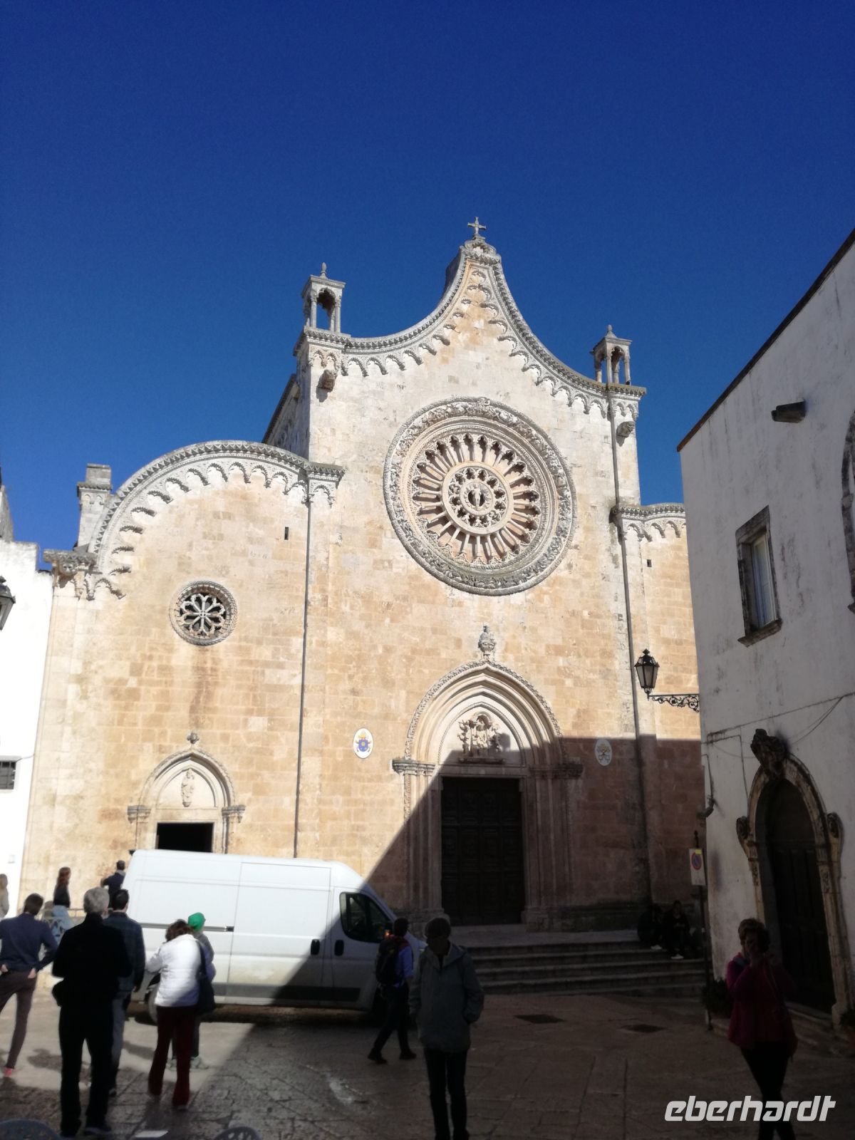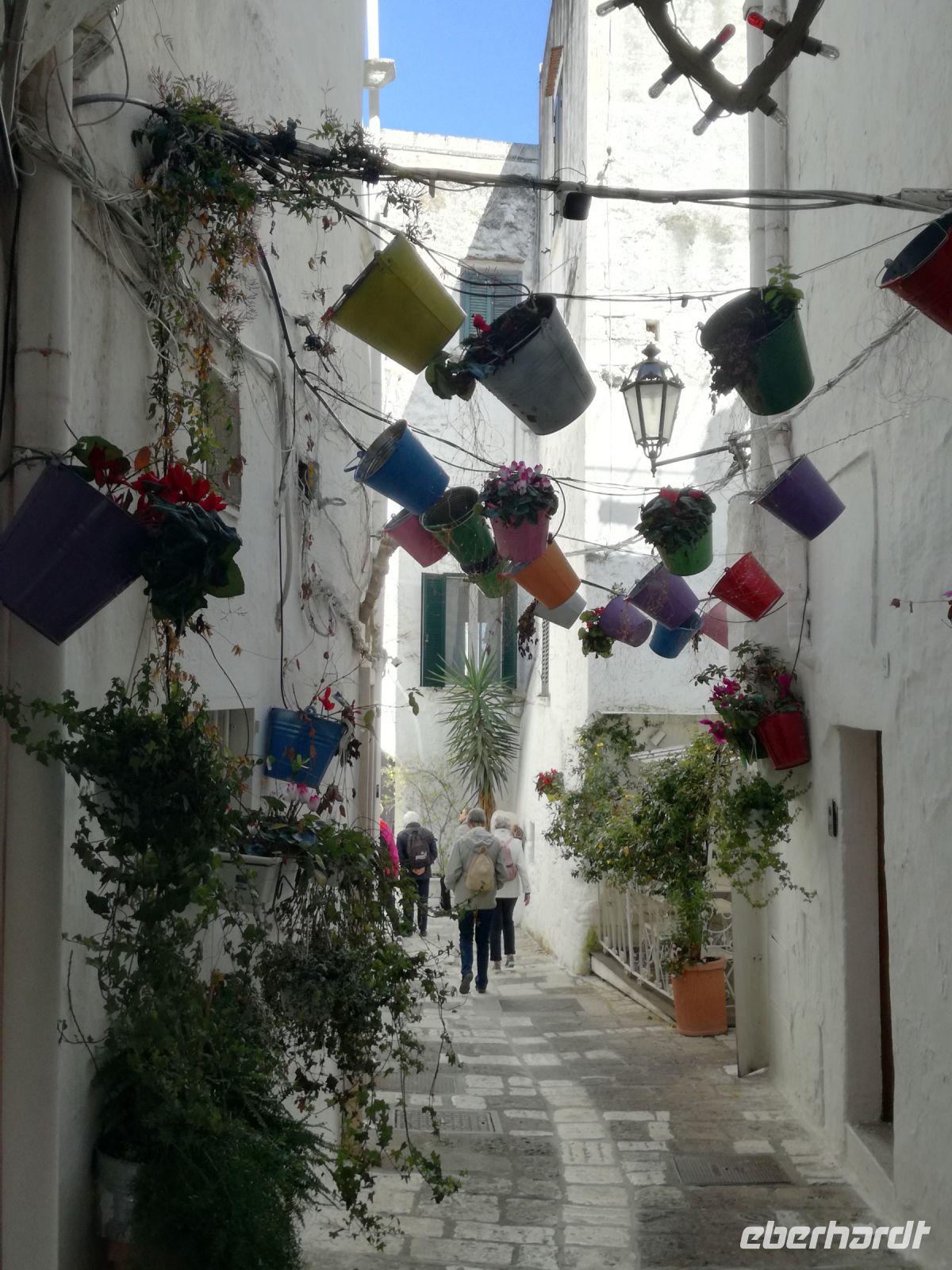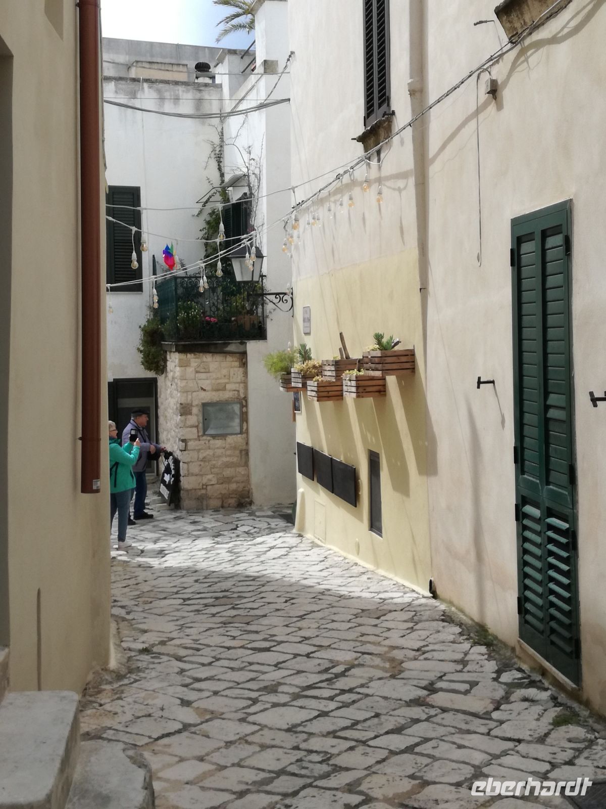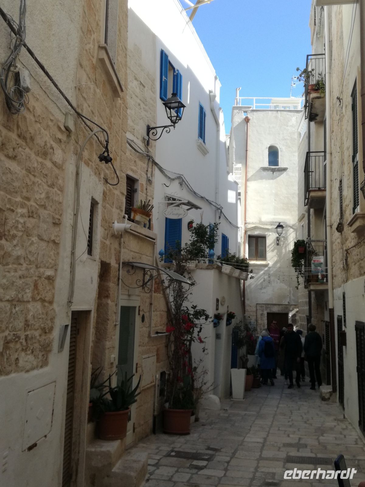 Ostuni steht am Nachmittag auf dem Programm, die weiße Stadt, die auf einem Hügel thront und auch „Stadt der Liebe“ genannt wird. Sie ist tatsächlich lieblich, ganz in weiß gehalten (was Vorschrift ist). Auffällig sind die vielen Torbögen, die die Häuser stützen. Man biegt um die Ecke und wird mit lauschigen Plätzen und traumhaften Fotomotiven belohnt. Abends kehren wir in einem Restaurant in Ostuni ein. Naja, mit der Masseria vor einigen Tagen hält der Vergleich nicht stand. Dennoch geht wieder ein ereignisreicher Tag und auch sonniger Tag für uns zu Ende.
