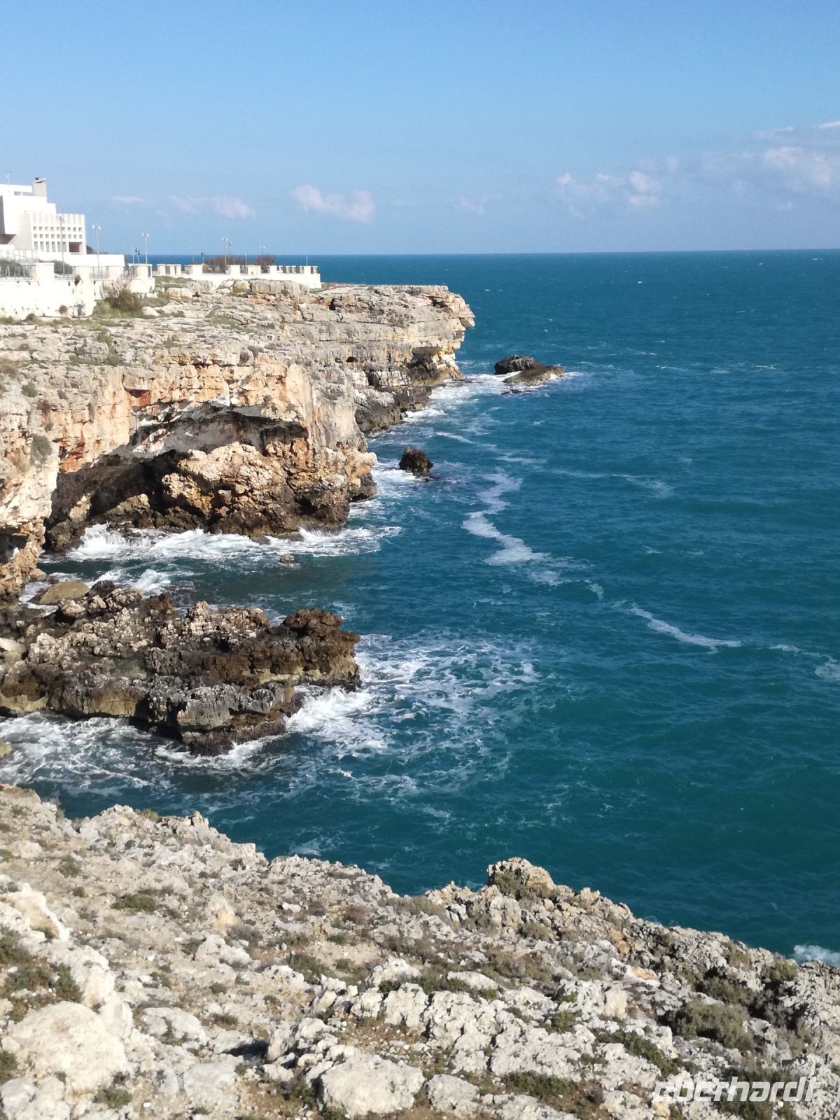 Nach einem guten Frühstück starten wir 9 Uhr zu einem weiteren aufregenden Tag. Es scheint unser Tag zu werden, denn in Polignano a Mare spazieren wir bei Sonnenschein am Meer entlang , hineen in den Küstenort. Das Leben erwacht in diesem hübschen Ort, eifrig werden Tische und Stühle herausgestellt. Eindrucksvoll sind die vielen Grotten an der Küste, die mit einem Boot befahren werden können. Das Meer ist blau- türkisfarben und der Glaube an den Frühling verstärkt sich, auch wenn immer noch ein kalter Wind weht.