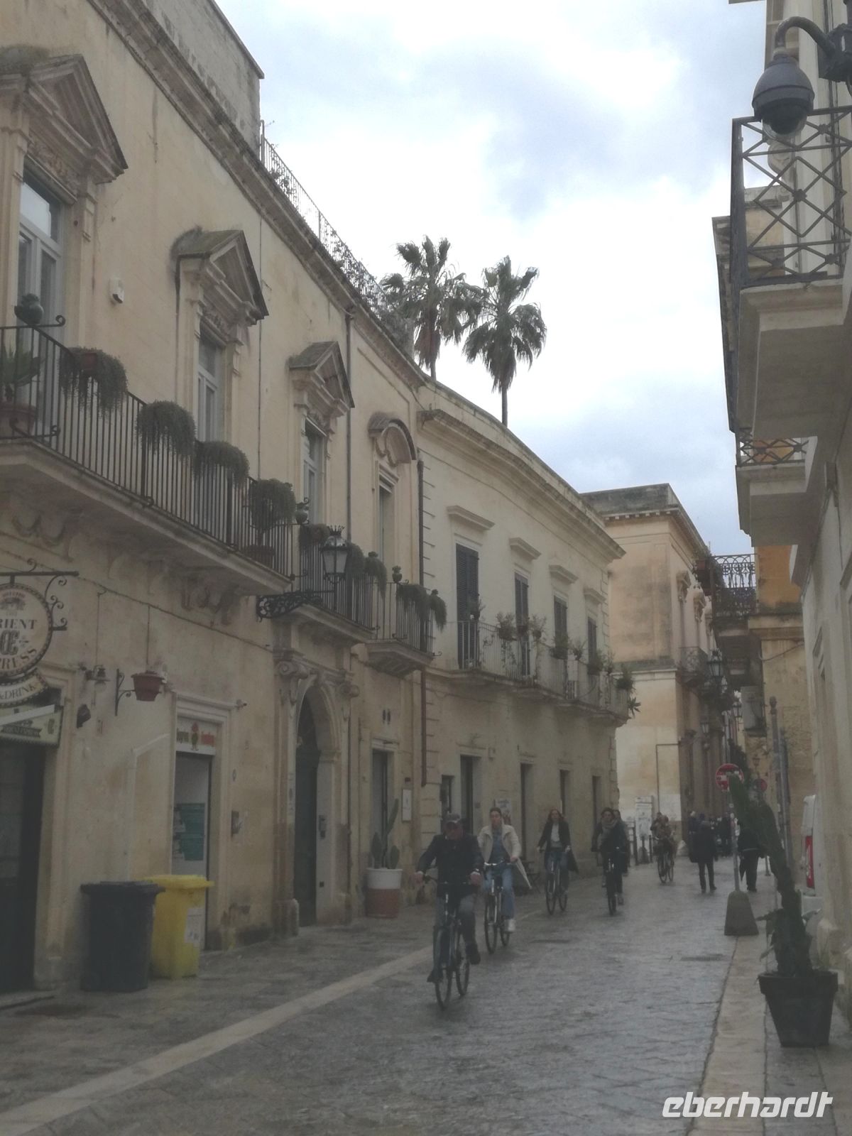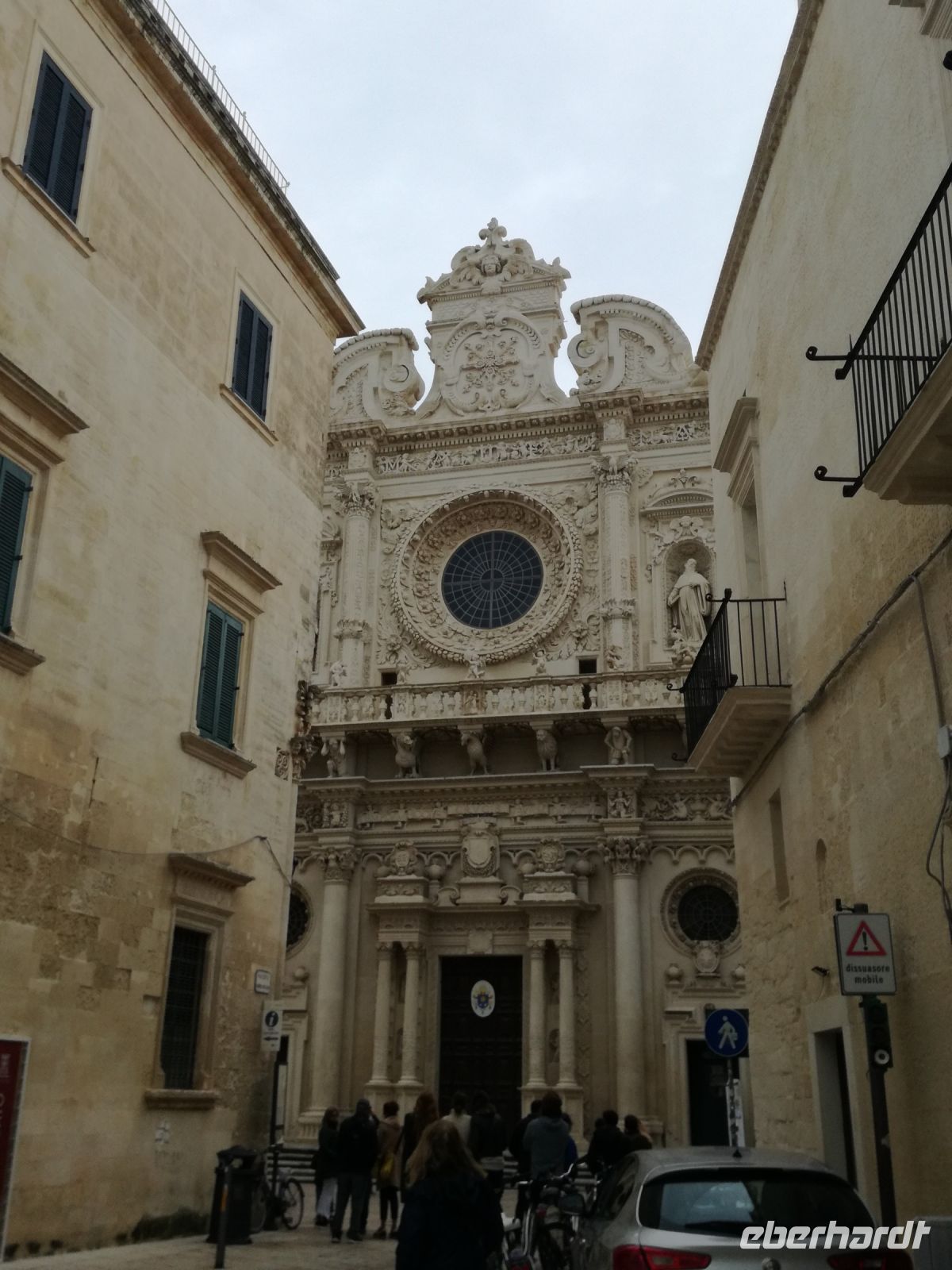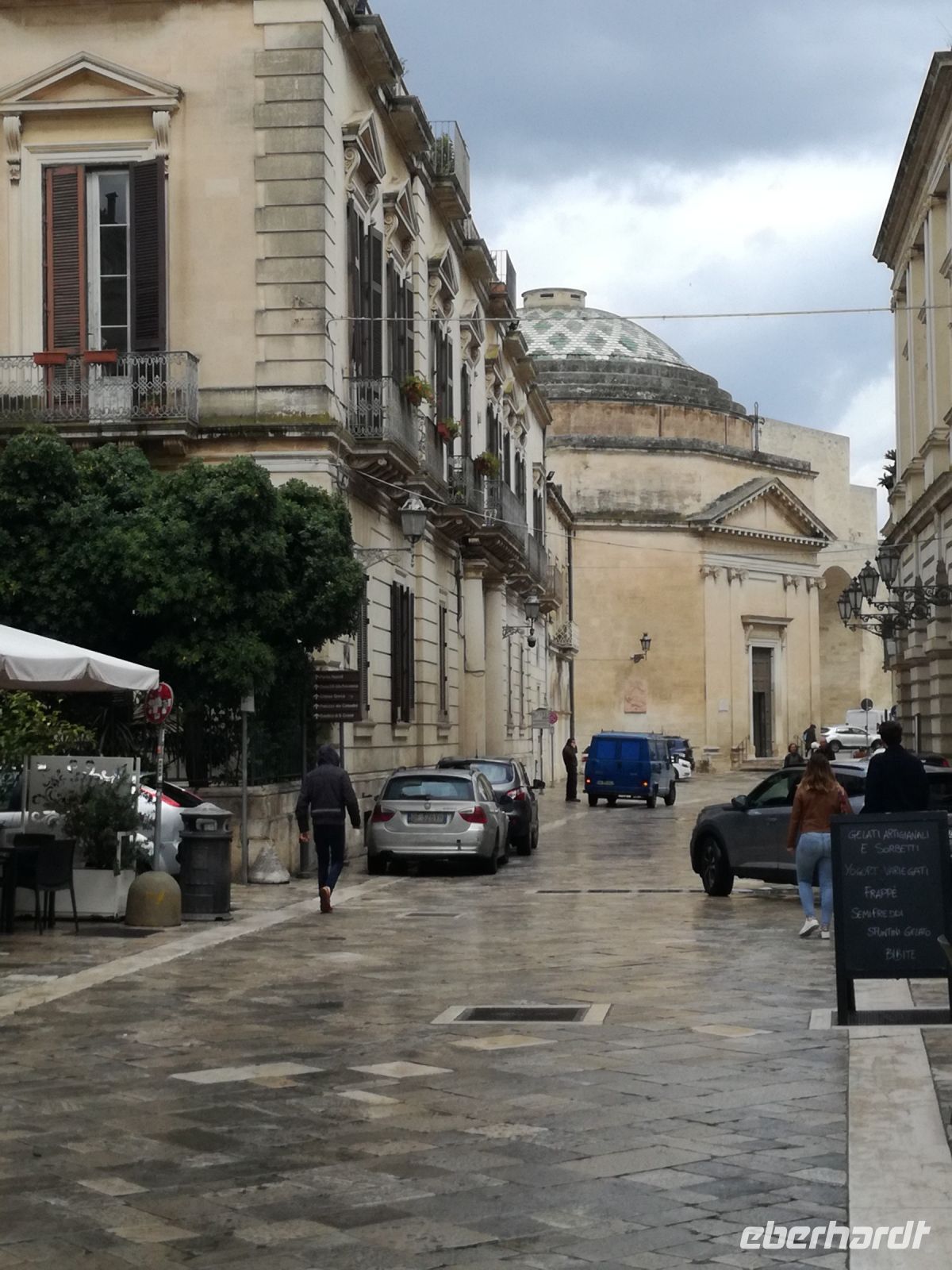 Lecce ist mit 100.000 Einwohnern die 2. grösste Stadt Apuliens. Lecce, eine Stadt mit vielen barocken Gebäuden bricht aus dem Image der italienischen kleinen Städte Apuliens heraus. Man nennt Lecce auch das „Florenz des Südens“. Gleich am Rande der Stadt empfangt uns ein Gebäude im Stil des Forum Romanum. Der Bischoff hat viele Gebäude im Barockstil nach Vorbild Roms übernommen. Ein Meisterwerk der Lecceser Baukunst ist die „Basilika Santa Grocce“, gebaut aus weichem Tuffstein, der eine goldene Farbe annimmt. Sehenswert, wenn auch in der Restaurierung, ist das antike römische Amphitheater, mitten im Zentrum Lecces. Nach unserem geführten Rundgang gönnen wir uns eine Pause. Wir finden ein kleines Cafe, in welchem wir einen Kaffee Lecces probieren und ein vorzügliches Bruscetta serviert bekommen.
