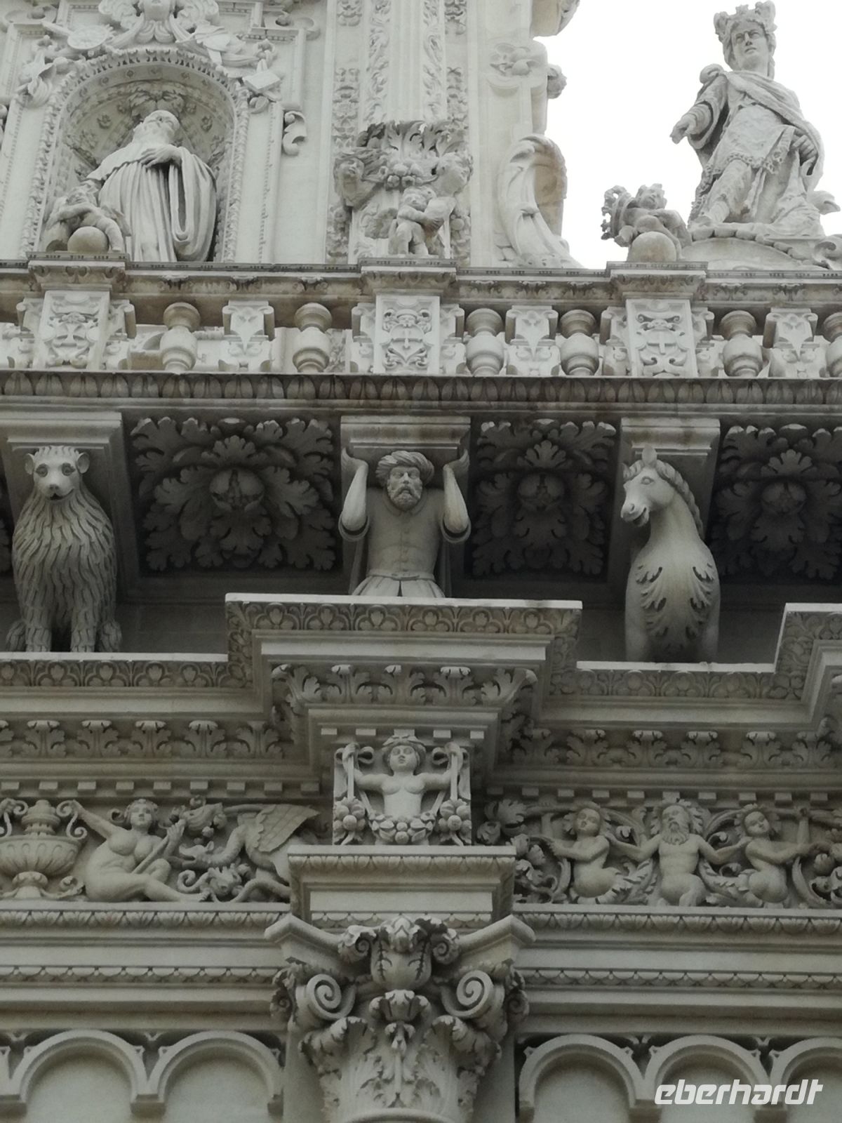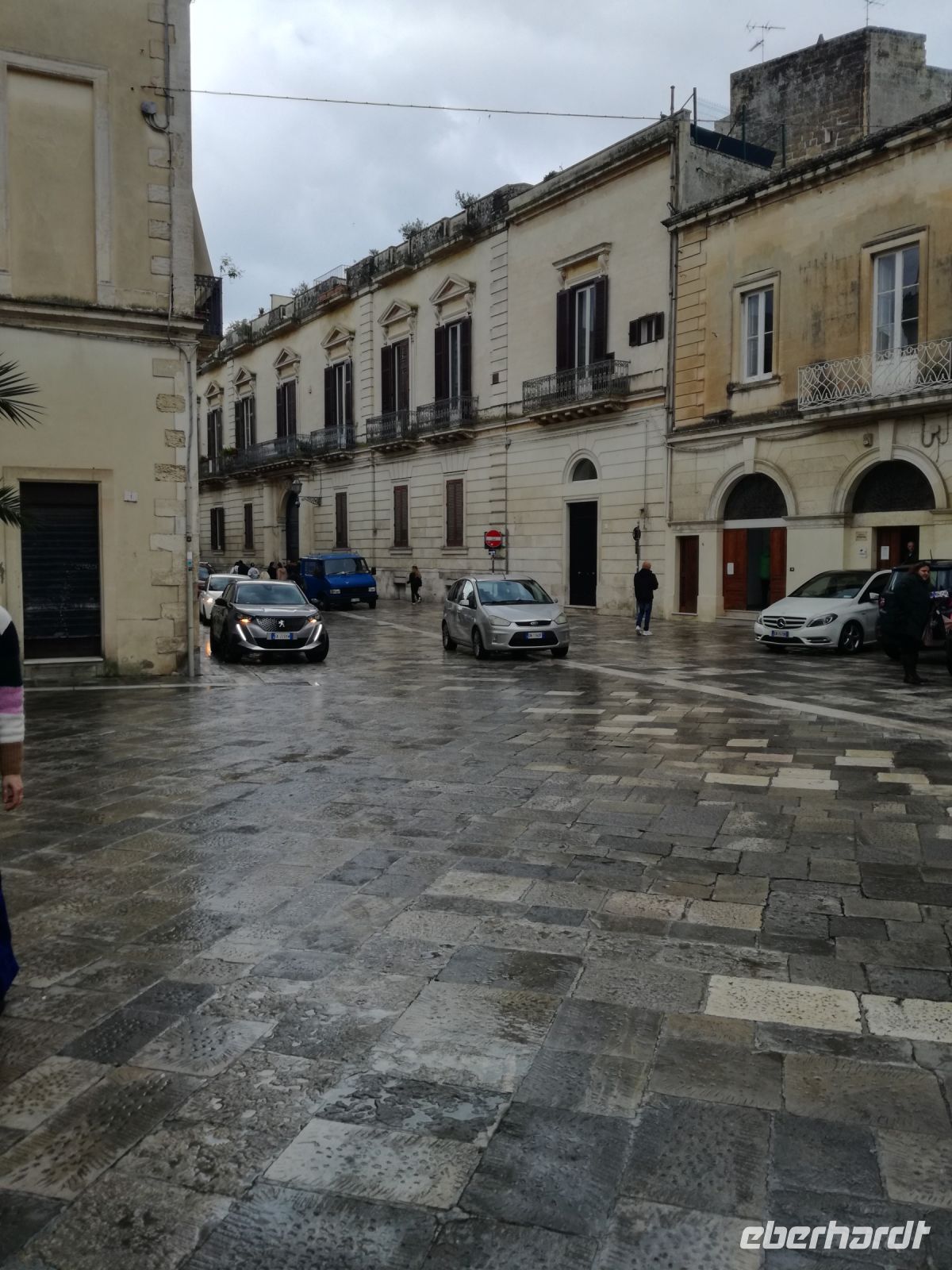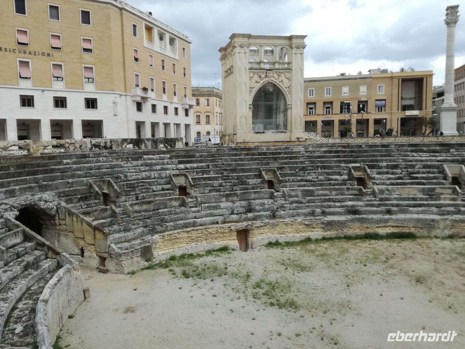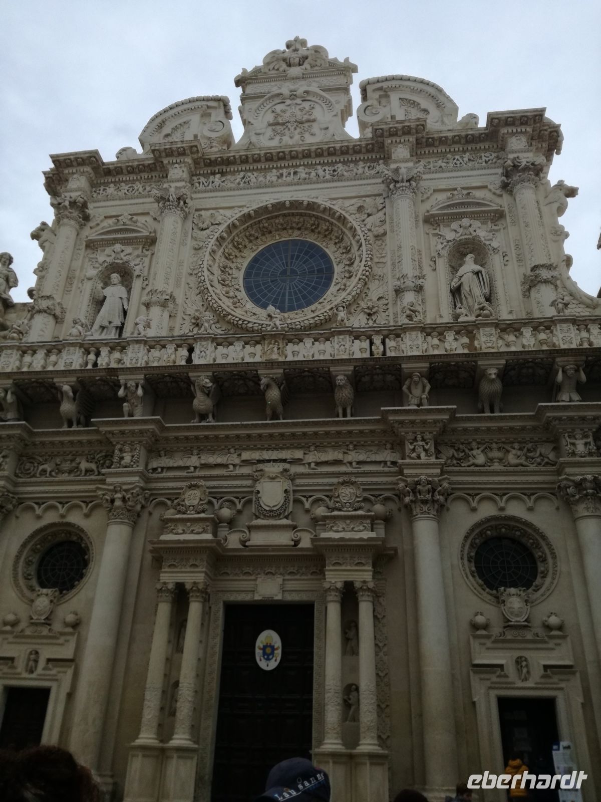 Lecce ist mit 100.000 Einwohnern die 2. grösste Stadt Apuliens. Lecce, eine Stadt mit vielen barocken Gebäuden bricht aus dem Image der italienischen kleinen Städte Apuliens heraus. Man nennt Lecce auch das „Florenz des Südens“. Gleich am Rande der Stadt empfangt uns ein Gebäude im Stil des Forum Romanum. Der Bischoff hat viele Gebäude im Barockstil nach Vorbild Roms übernommen. Ein Meisterwerk der Lecceser Baukunst ist die „Basilika Santa Grocce“, gebaut aus weichem Tuffstein, der eine goldene Farbe annimmt. Sehenswert, wenn auch in der Restaurierung, ist das antike römische Amphitheater, mitten im Zentrum Lecces. Nach unserem geführten Rundgang gönnen wir uns eine Pause. Wir finden ein kleines Cafe, in welchem wir einen Kaffee Lecces probieren und ein vorzügliches Bruscetta serviert bekommen.