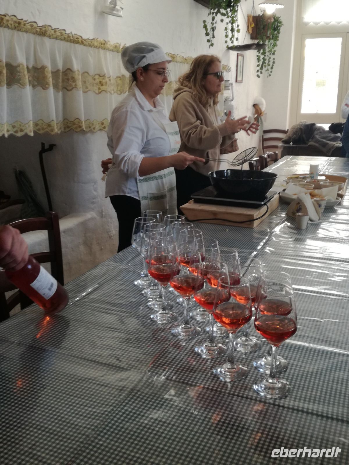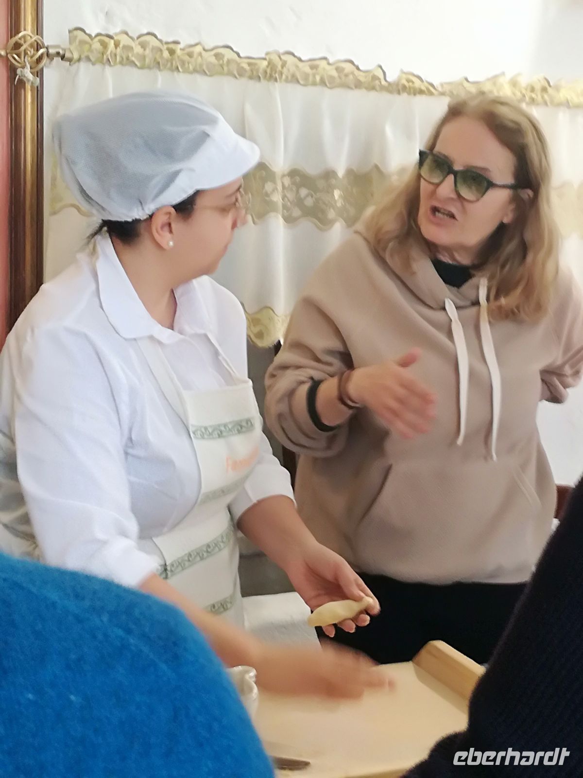 In der Masseria angekommen, wartet auch schon Arbeit auf uns. Unter Anleitung sollen wir die berühmten Öhrchennudeln (Orecchiette) in einem Kochkurs herstellen. Liebevoll ausgestattet mit Brettchen und Schürzchen machen wir uns ans Werk. Es gibt Talente, die die Herstellung beherrschen, Andere wiederum….ach, wir müssen sie ja nicht selbst verzehren.:) Die anschließende Vorführung der Mozzarellaherstellung ist hochinteressant, einzelne Teile wie die Mozzarella Zöpfe werden nach wie vor ausschließlich von Hand hergestellt. Fix, den warmen Mozzarella gekostet – ein Traum !