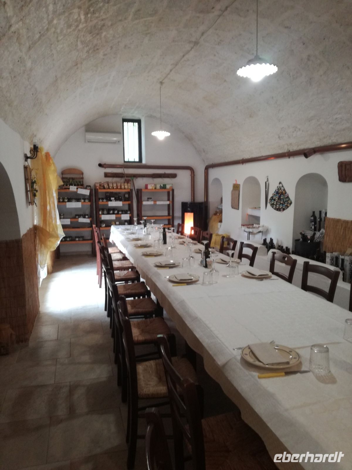 Anschließend fahren wir zu einer Ölmühle, seit 1917 in 4. Generation im Familienbesitz. Wir bekommen die Ölherstellung ausgiebig erläutert und haben endlose Fragen zur Olivenernte. Die Oliven sind und bleiben nun mal das Aushängeschild Apuliens. Nach Kostprobe verschiedenster Öle schlagen wir im Verkauf zu für ein schönes Mitbringsel.
